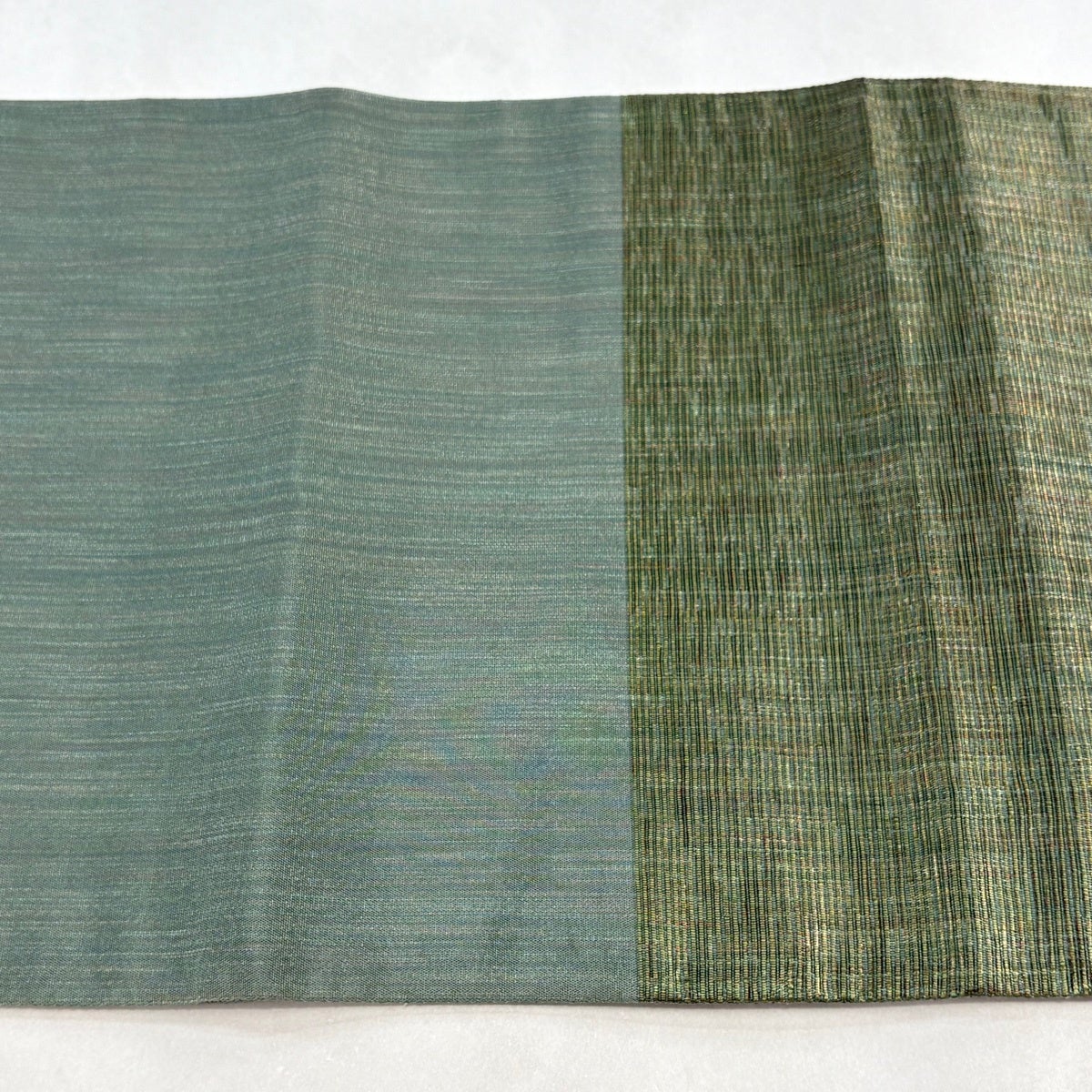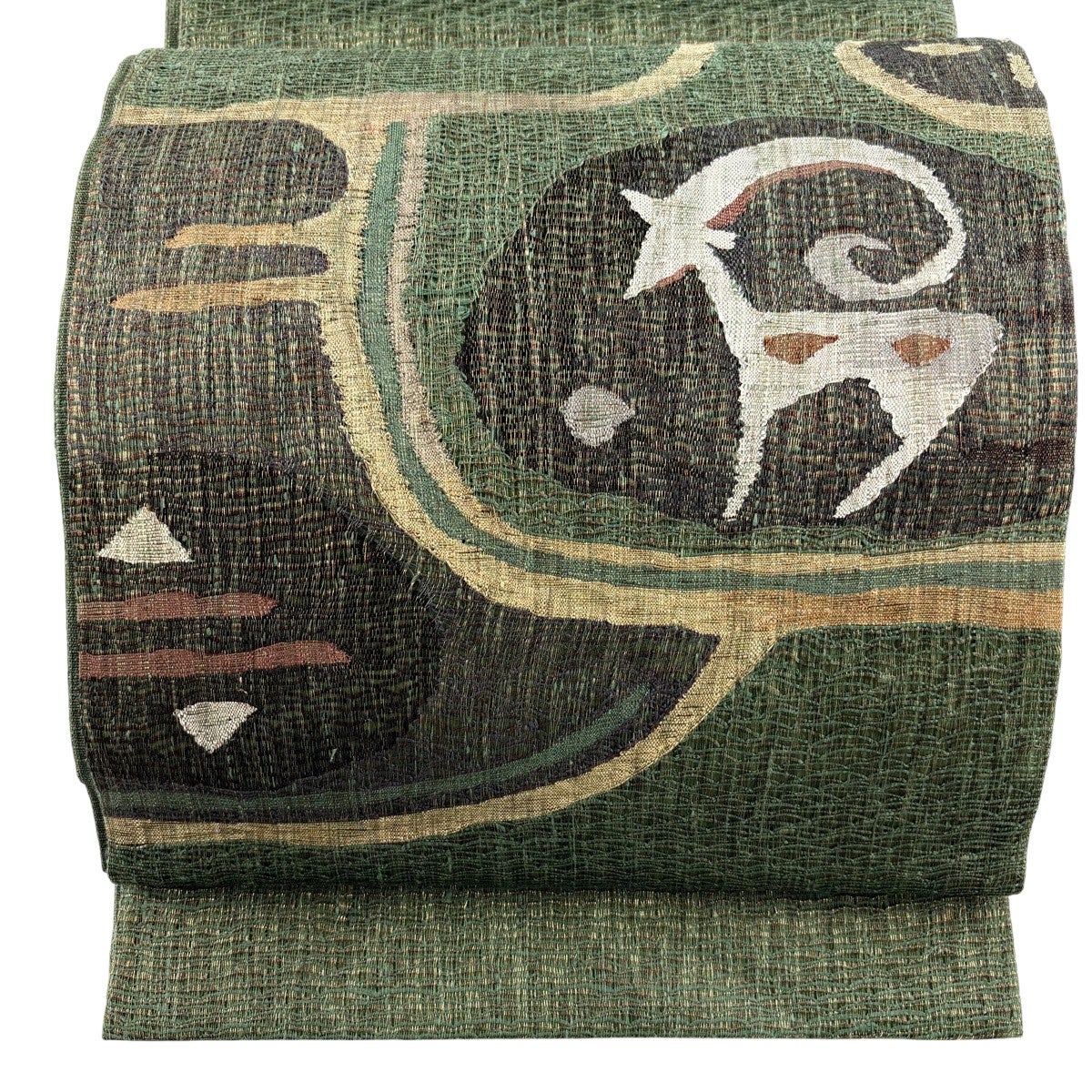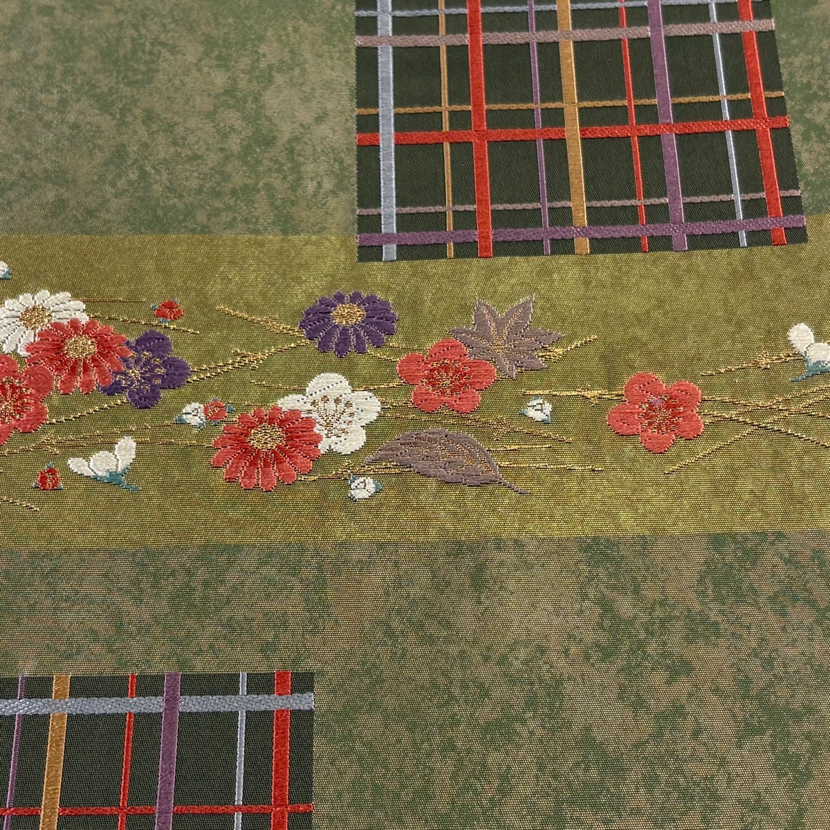 50%OFF 【美品】 名古屋帯 逸品 夏帯 河童 格子 刺繍 よもぎ色 正絹 K50