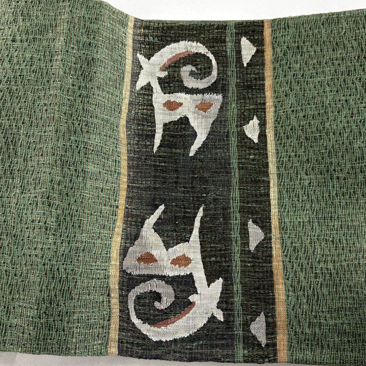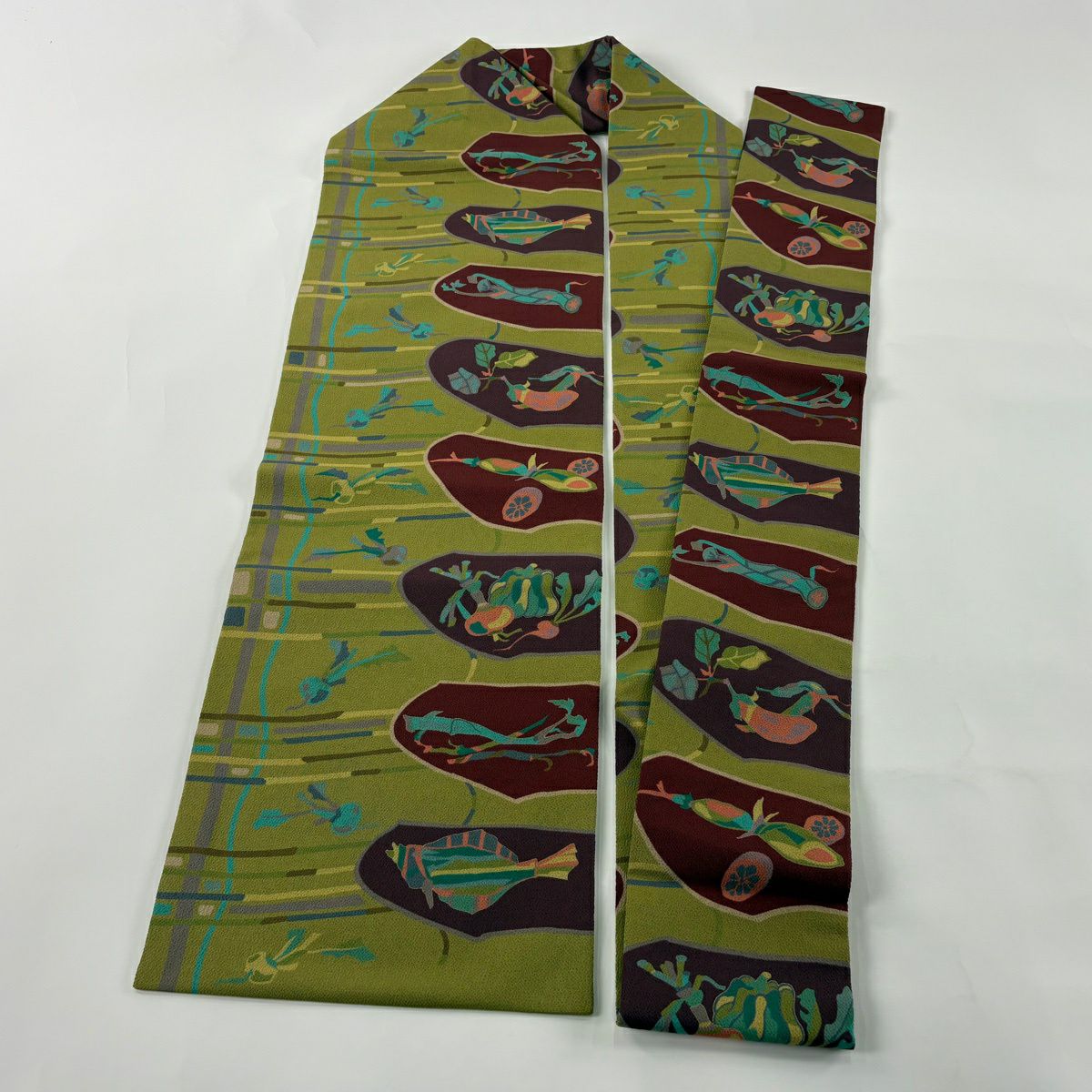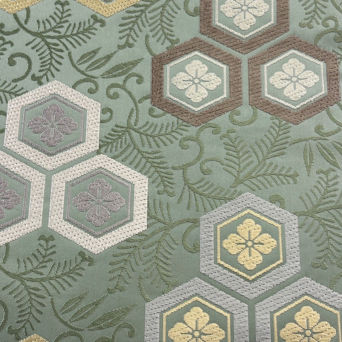 50%OFF 【美品】 名古屋帯 逸品 夏帯 河童 格子 刺繍 よもぎ色 正絹 K50