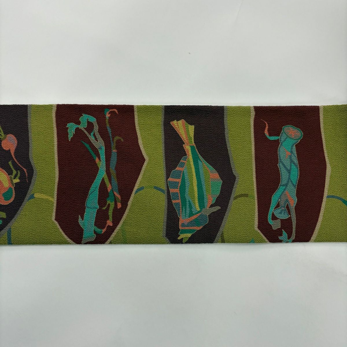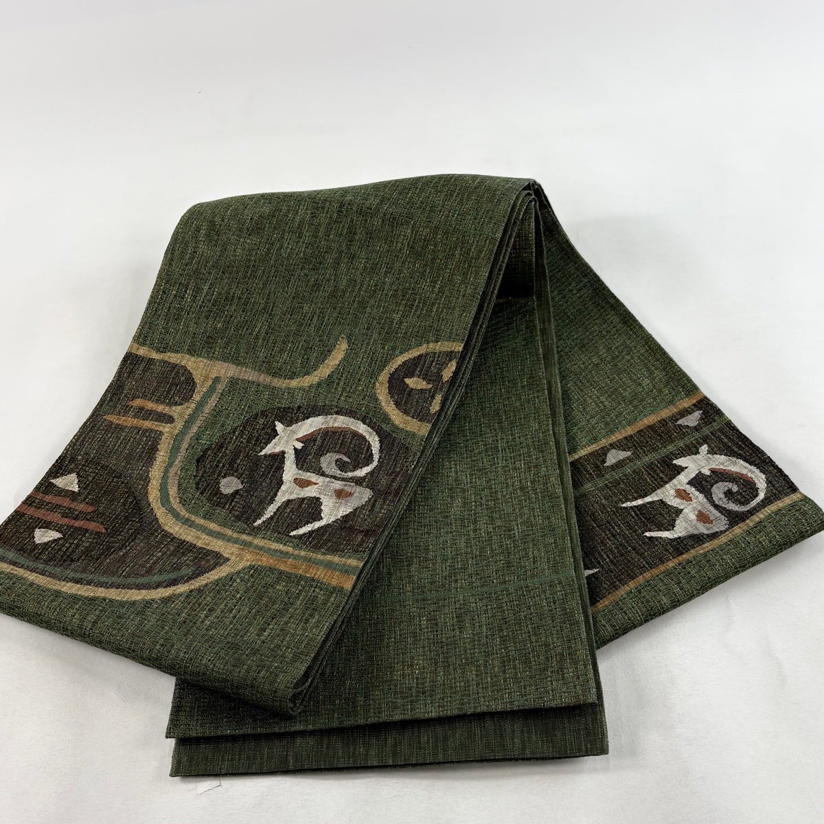 30%OFF 【美品】 名古屋帯 優品 関西仕立て 紬地 草花 よもぎ色 正絹 K30