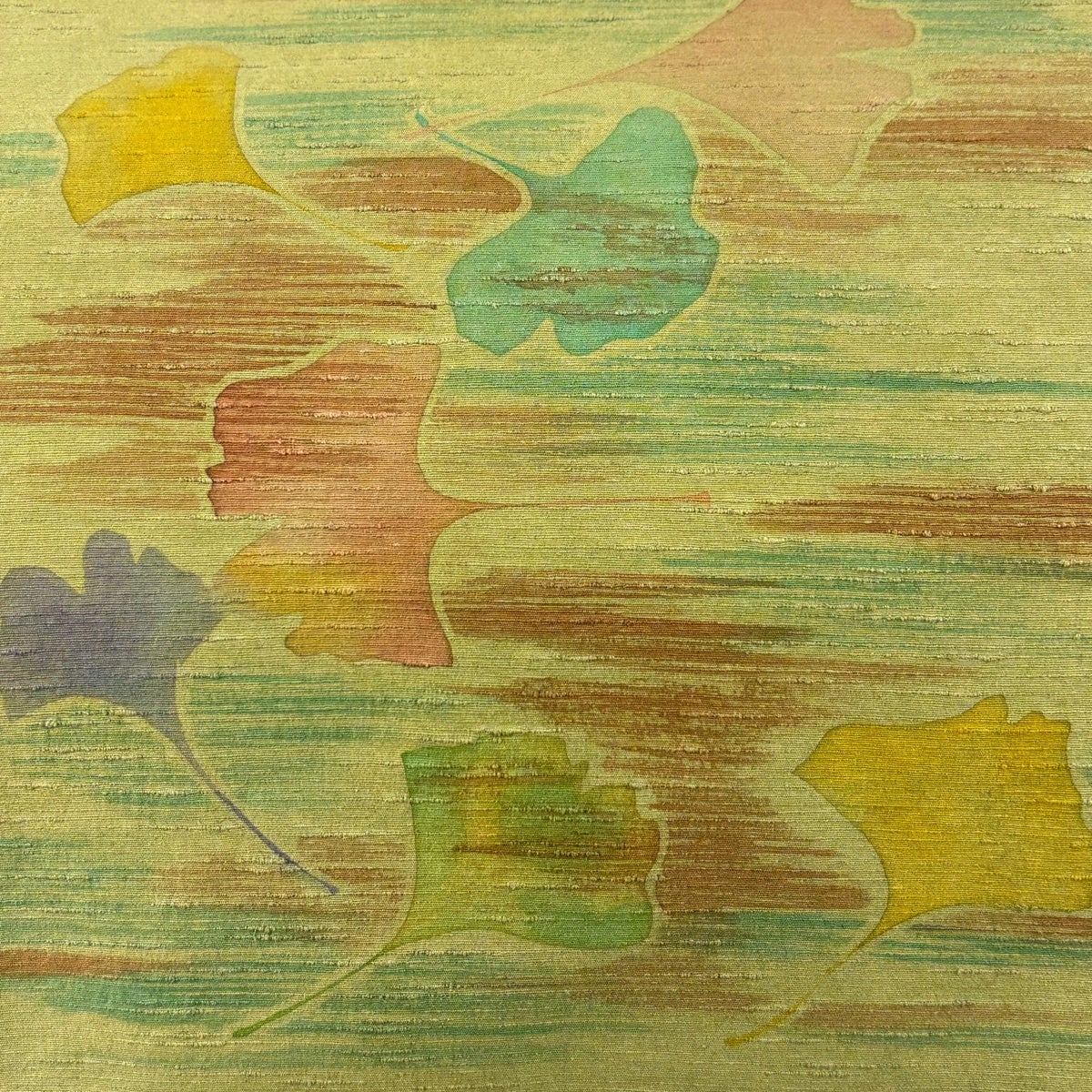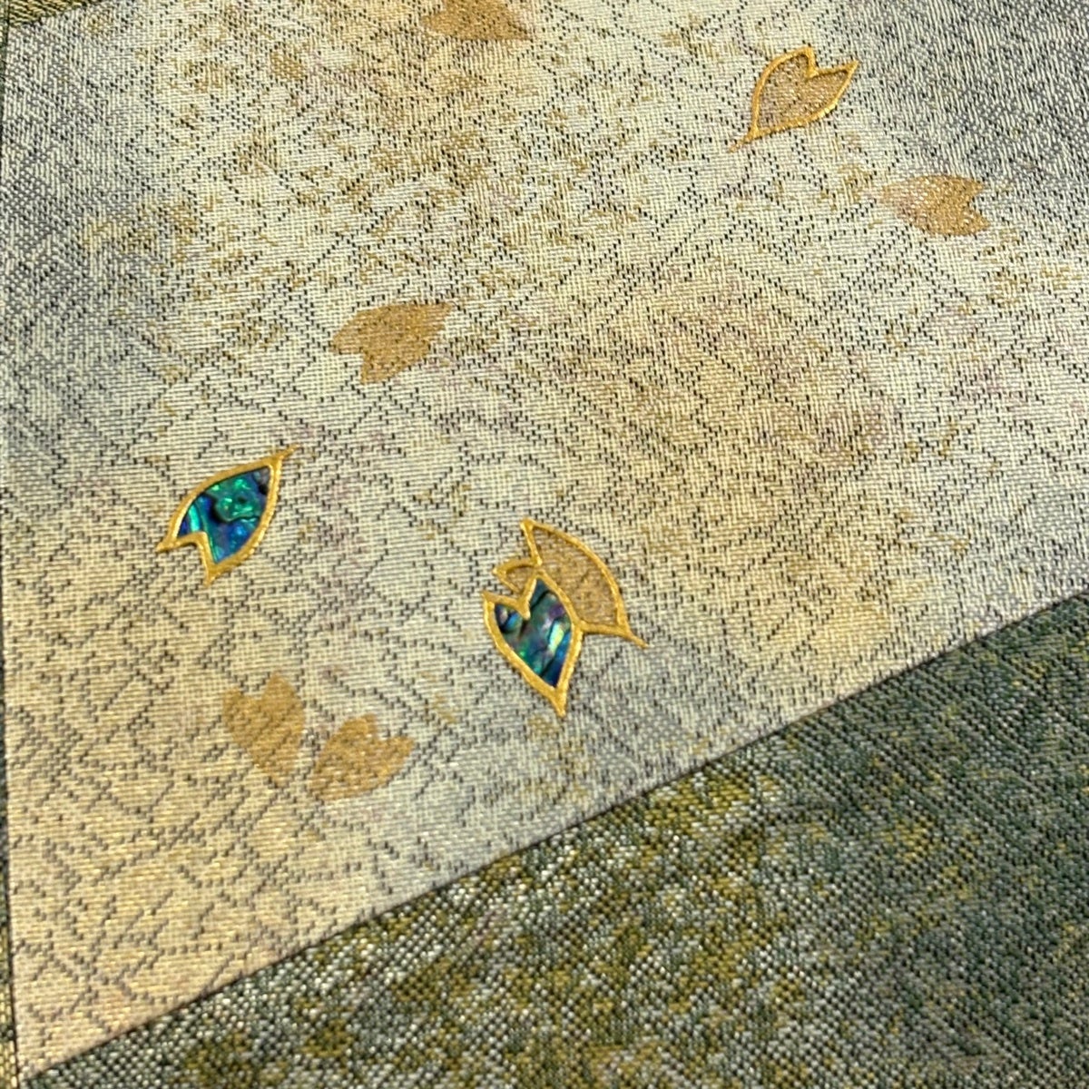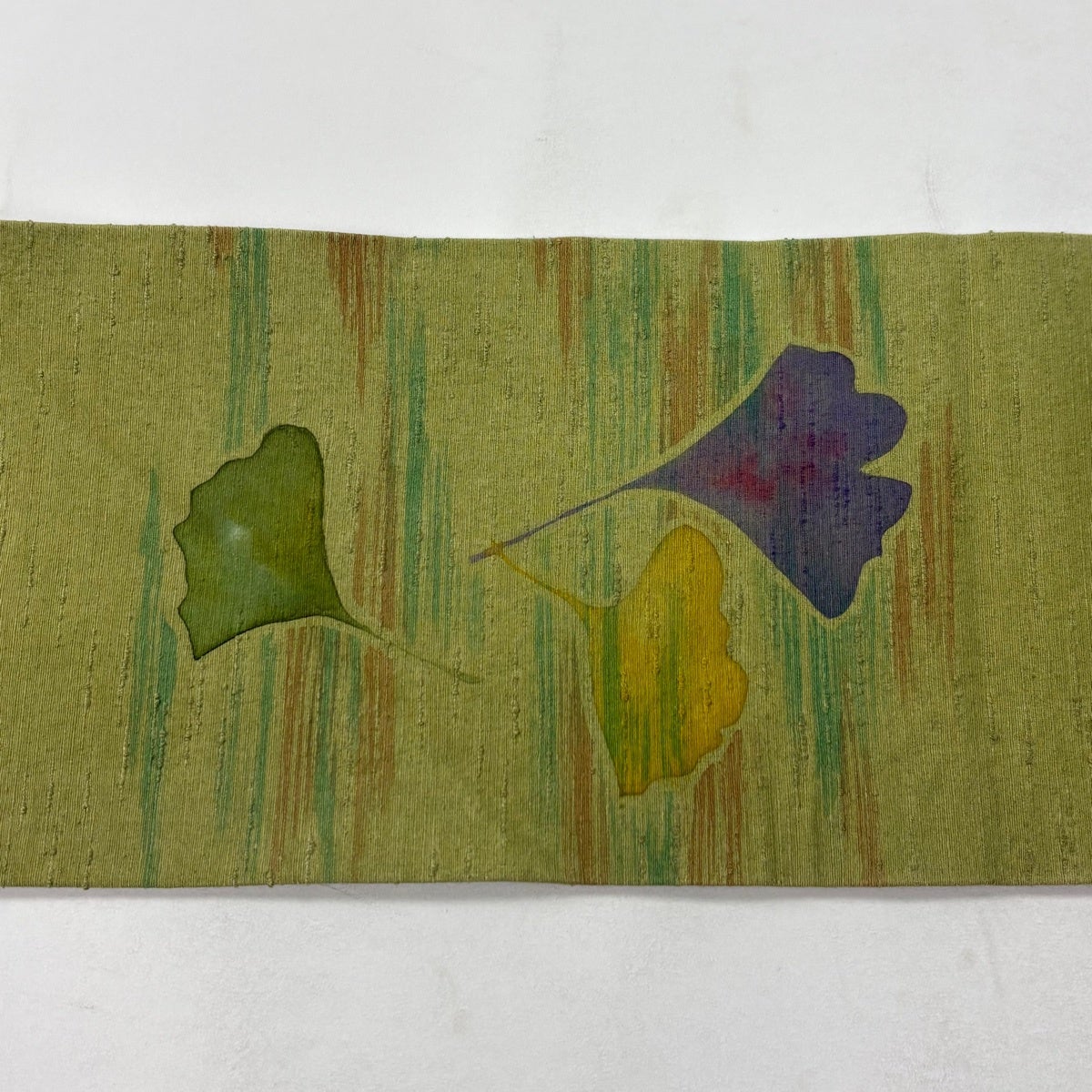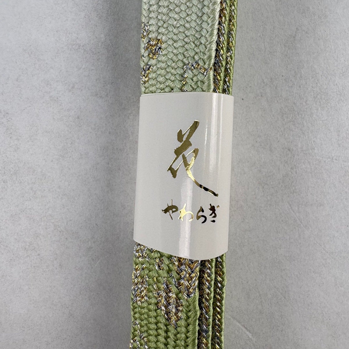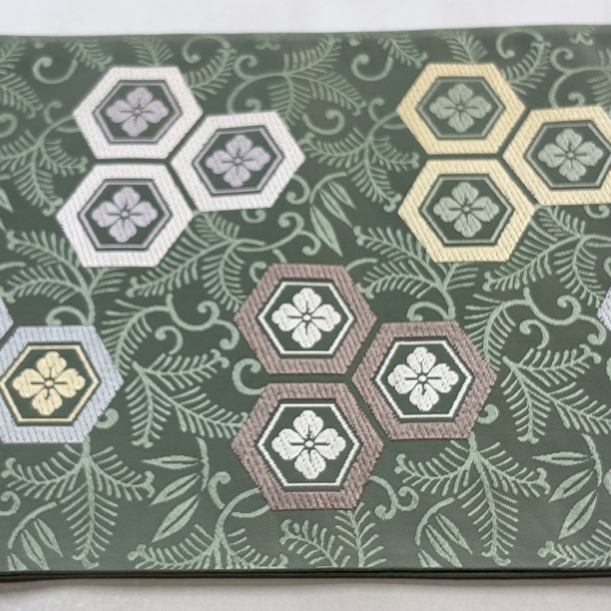 30%OFF 【美品】 袋帯 秀品 冊子 草花 金糸 箔 よもぎ色 六通 正絹 K30