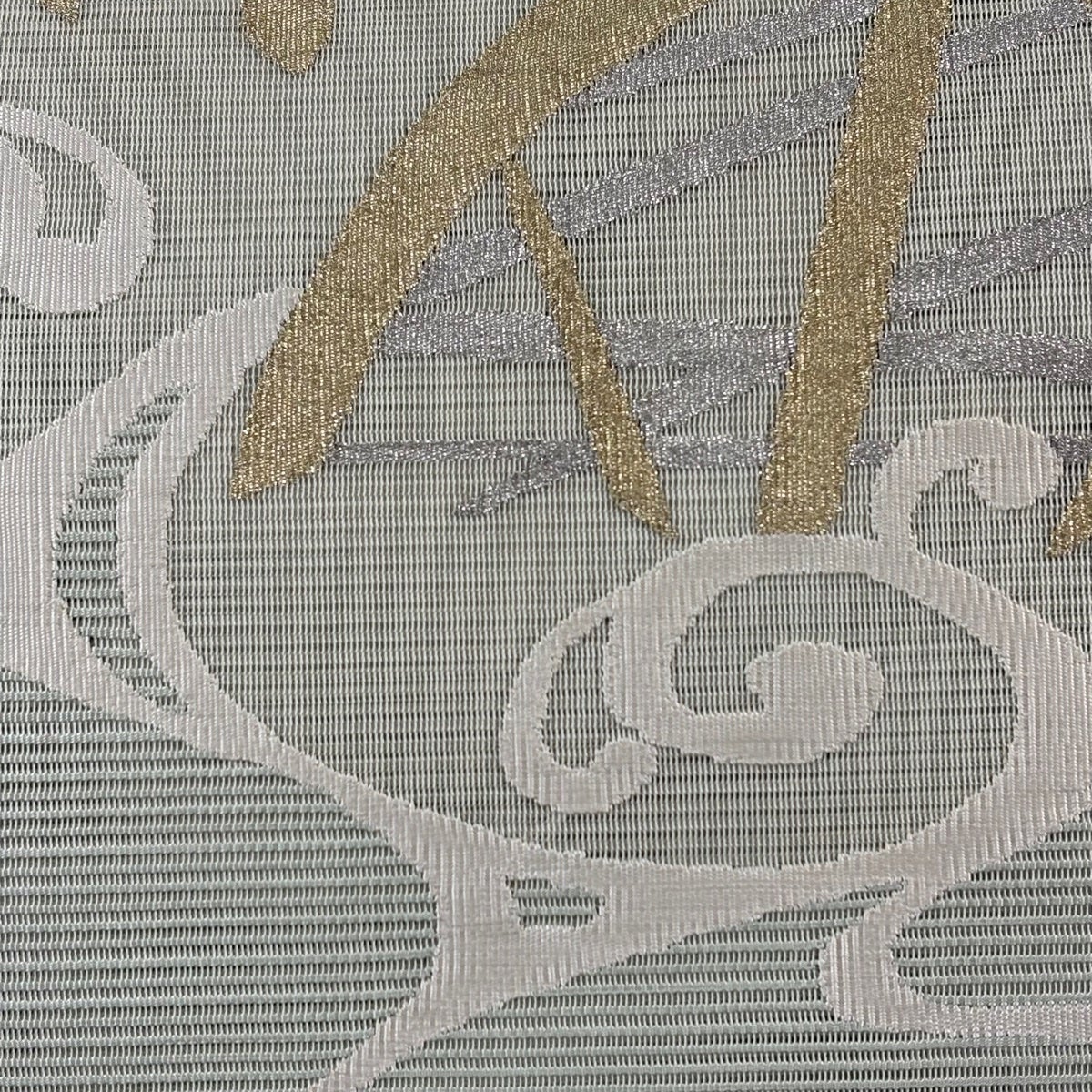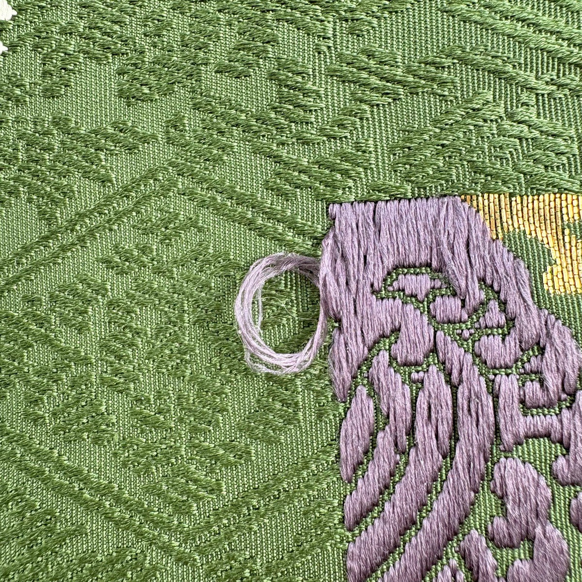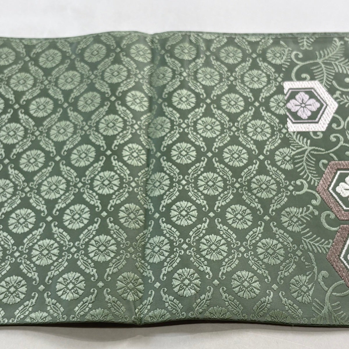 20%OFF 【美品】 袋帯 逸品 華文 草花 刺繍 金糸 よもぎ色 六通 正絹 K30