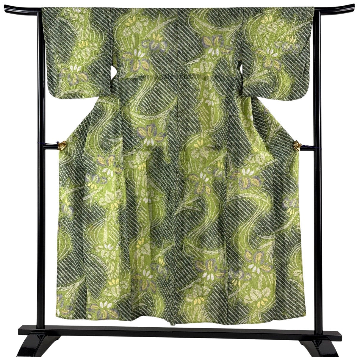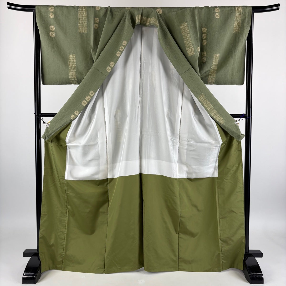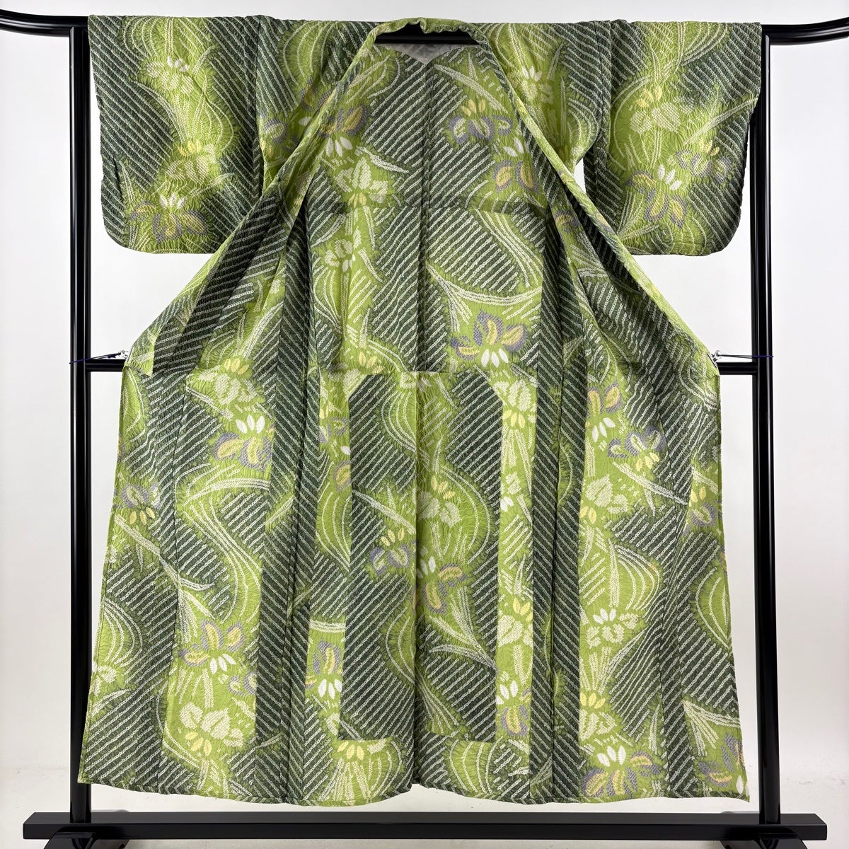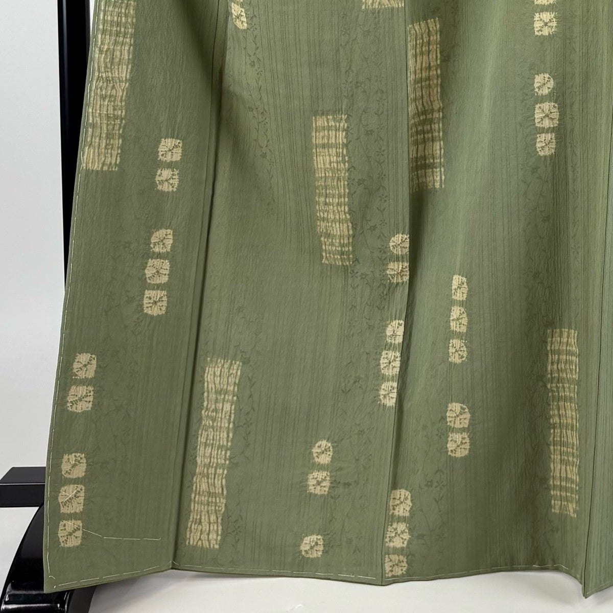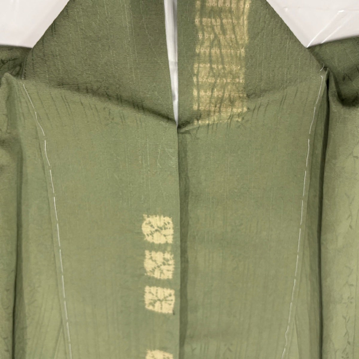 30%OFF 浴衣 身丈154.5cm 裄丈68cm L 絞り浴衣 草花 よもぎ色 綿 名品 K30
