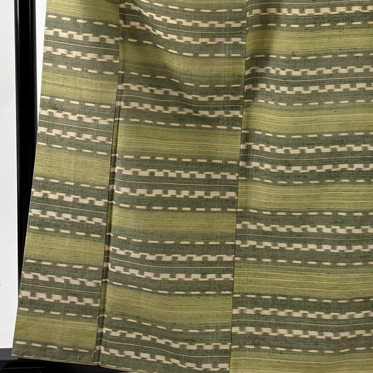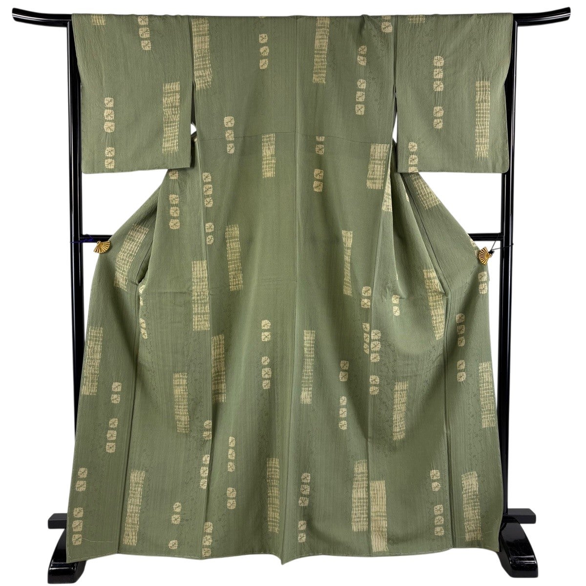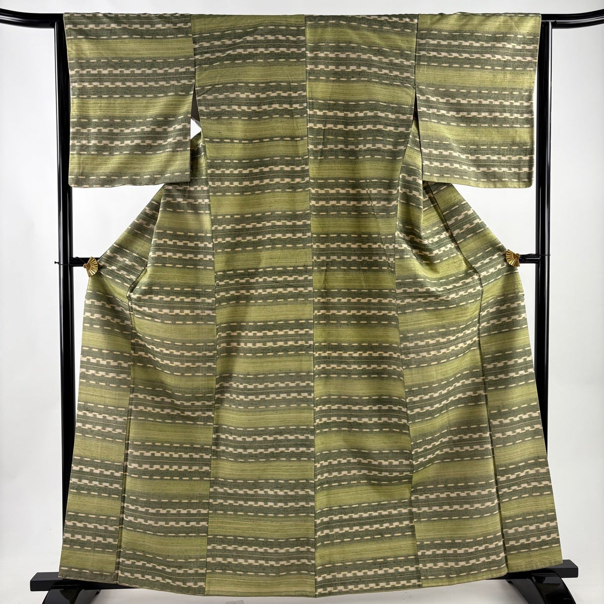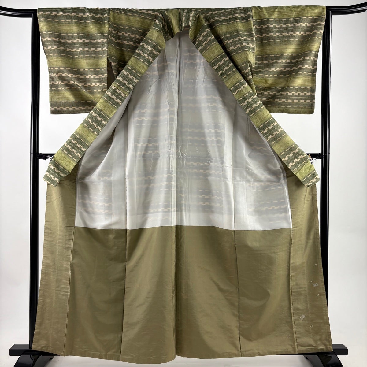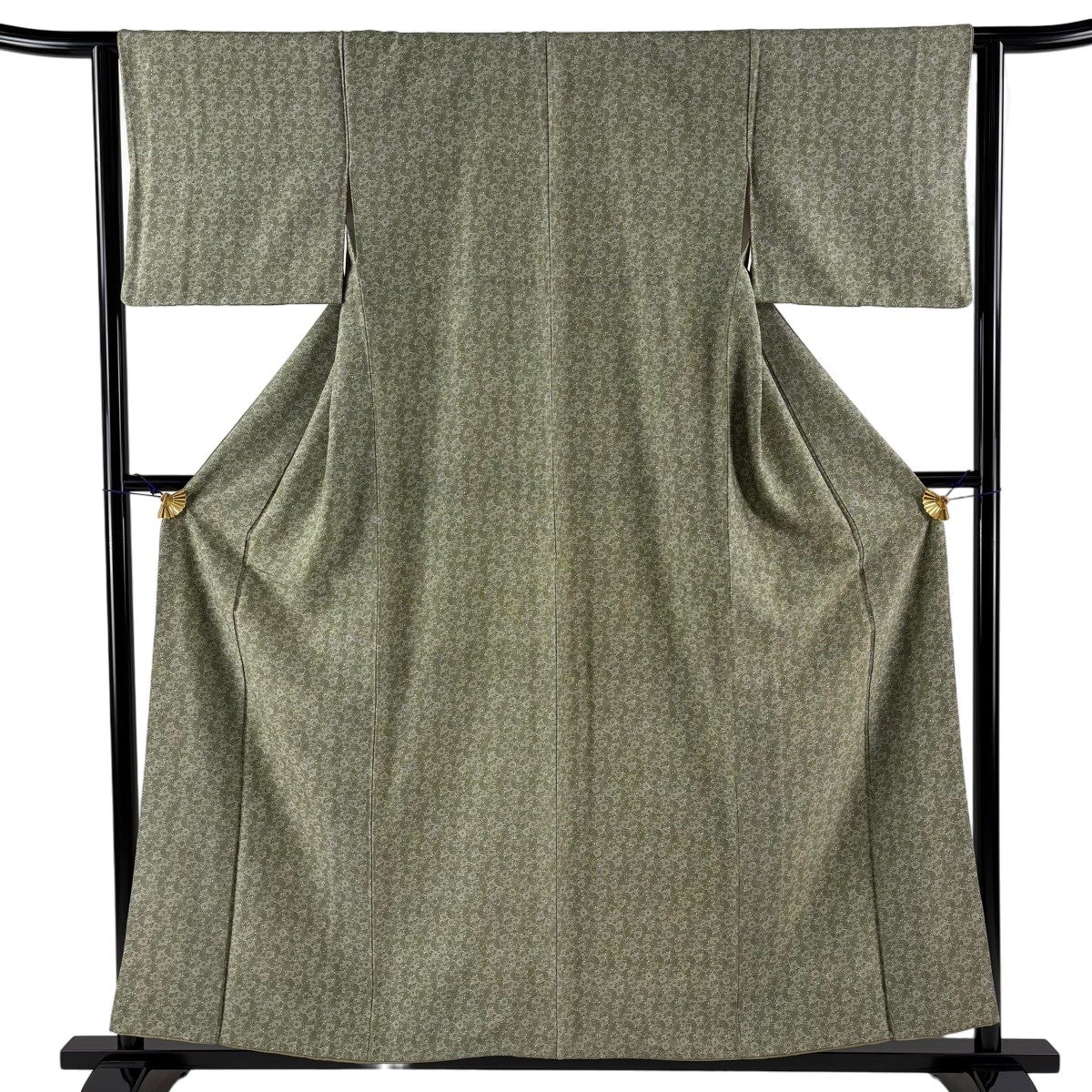 【美品】 小紋 身丈167.5cm 裄丈68cm L 袷 幾何学模様 よもぎ色 正絹 名品