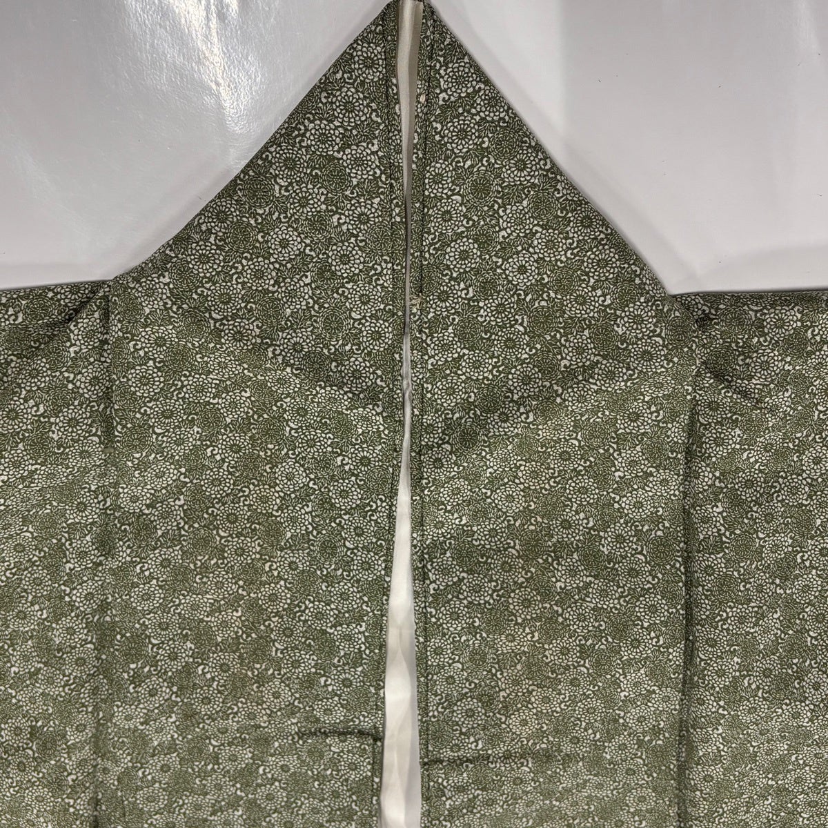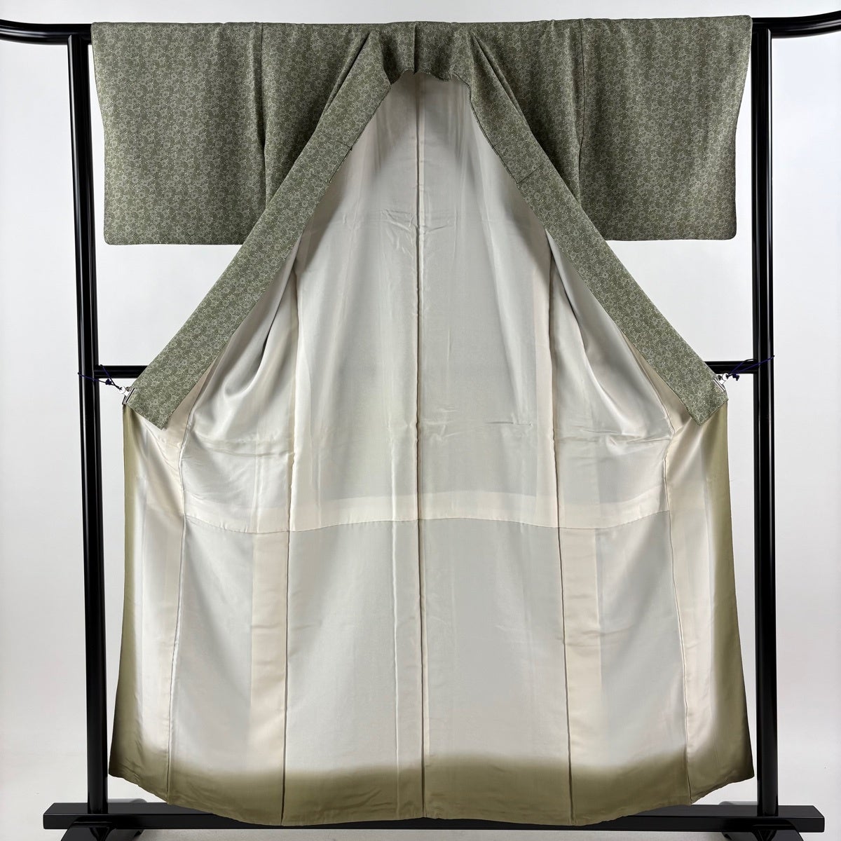 70%OFF 小紋 身丈167cm 裄丈66cm M 袷 花 よもぎ色 正絹 秀品 K70