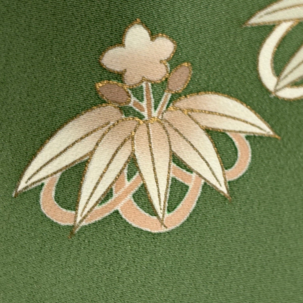 付下げ 身丈152cm 裄丈62cm S 袷 笹 花 金糸 金彩 よもぎ色 正絹 秀品 一つ紋