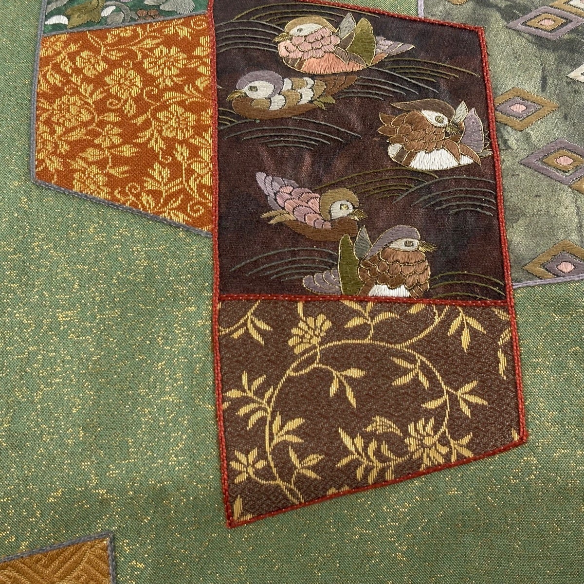 50%OFF 【美品】 袋帯 秀品 華文 向かい鳥 金糸 唐織 よもぎ色 六通 正絹 K50