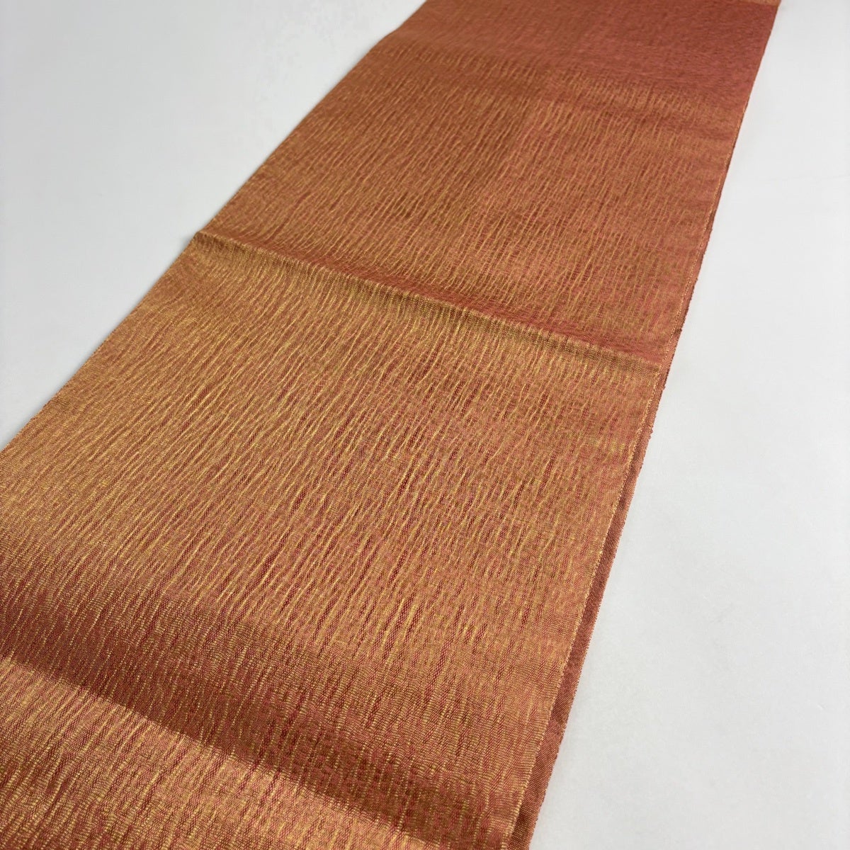名古屋帯 秀品 生り物 幾何学模様 金彩 縮緬 オレンジ 正絹