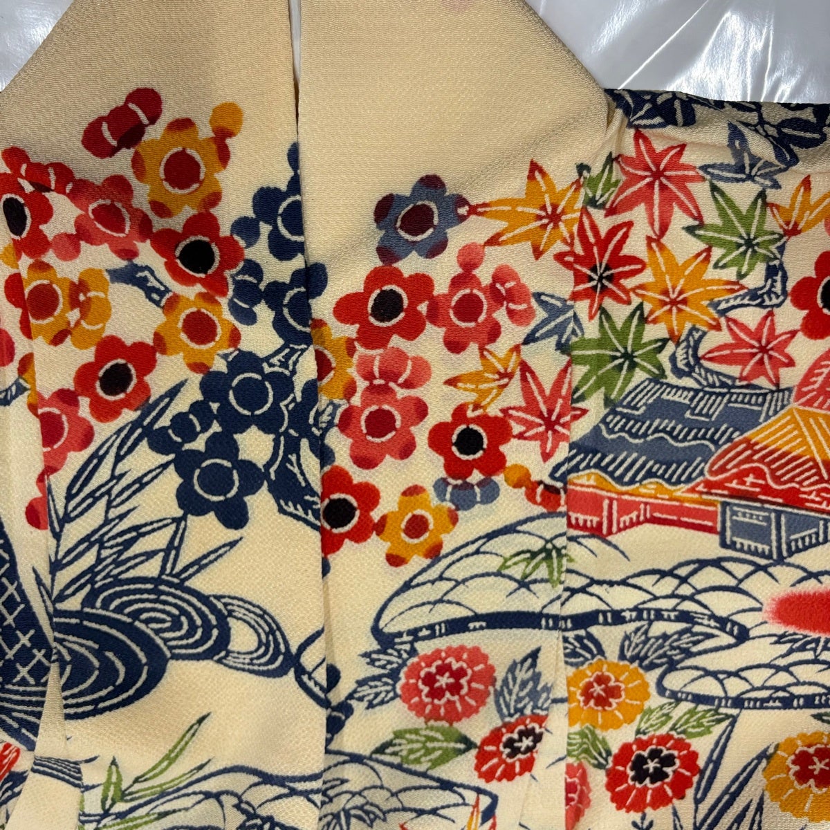 反物 優品 羽尺 羽織 和装コート 地紋 斜め格子 ぼかし オレンジ 正絹