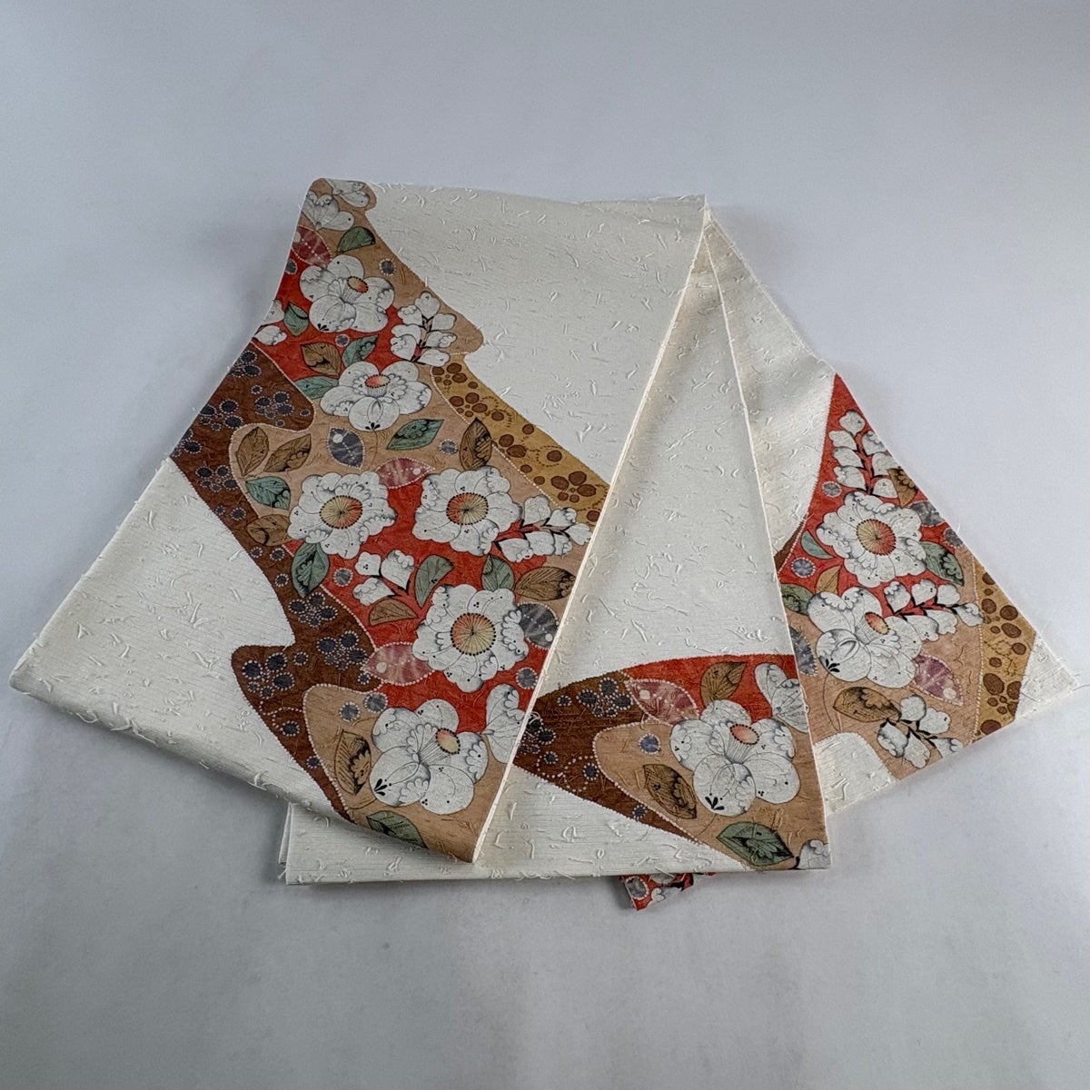 【美品】 名古屋帯 秀品 夏帯 八寸名古屋帯 松葉仕立て 花 クリーム 正絹