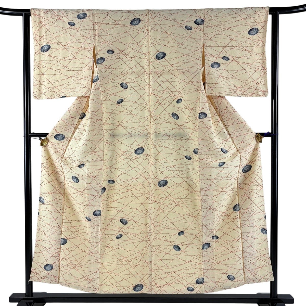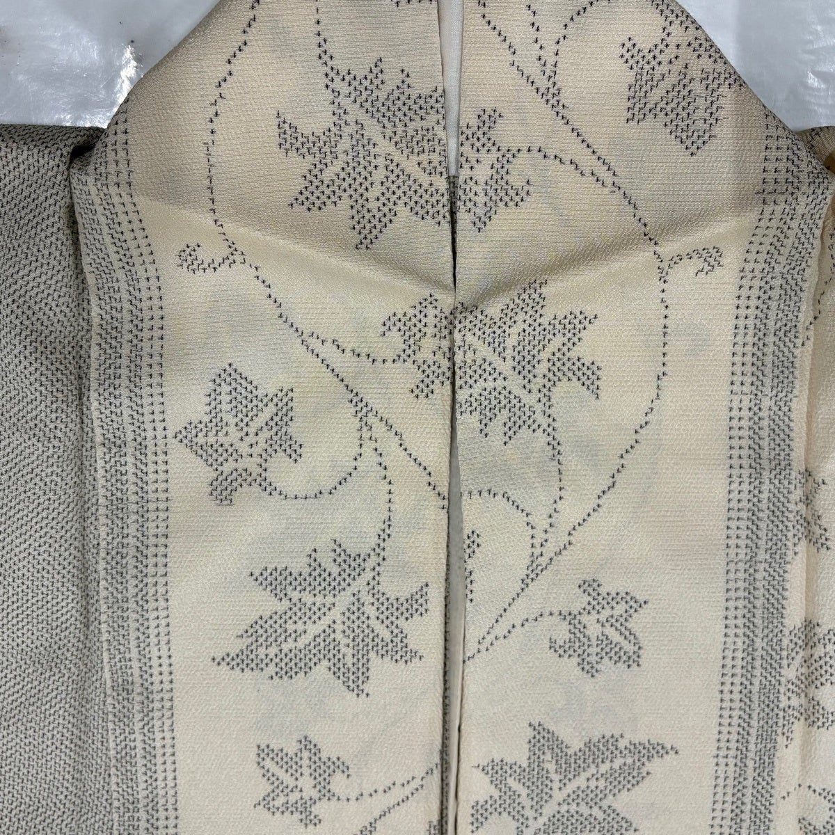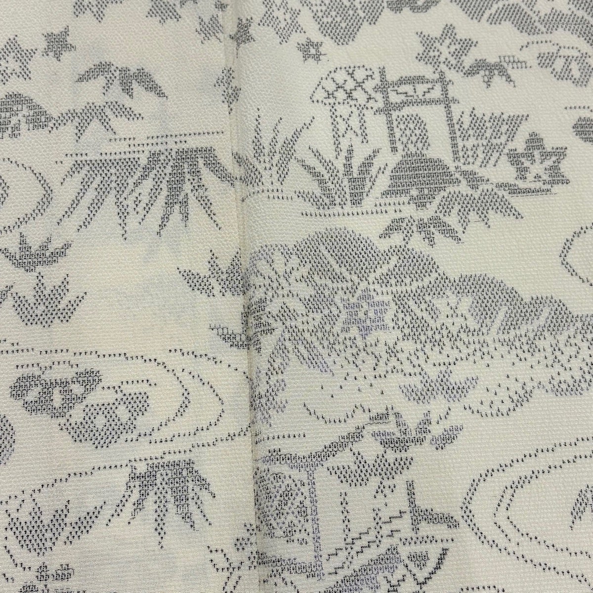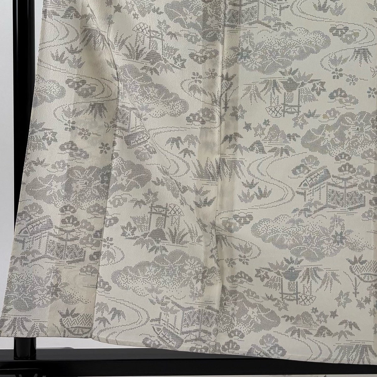 付下げ 身丈154.5cm 裄丈64cm M 薄物 幾何学 クリーム 化繊 秀品
