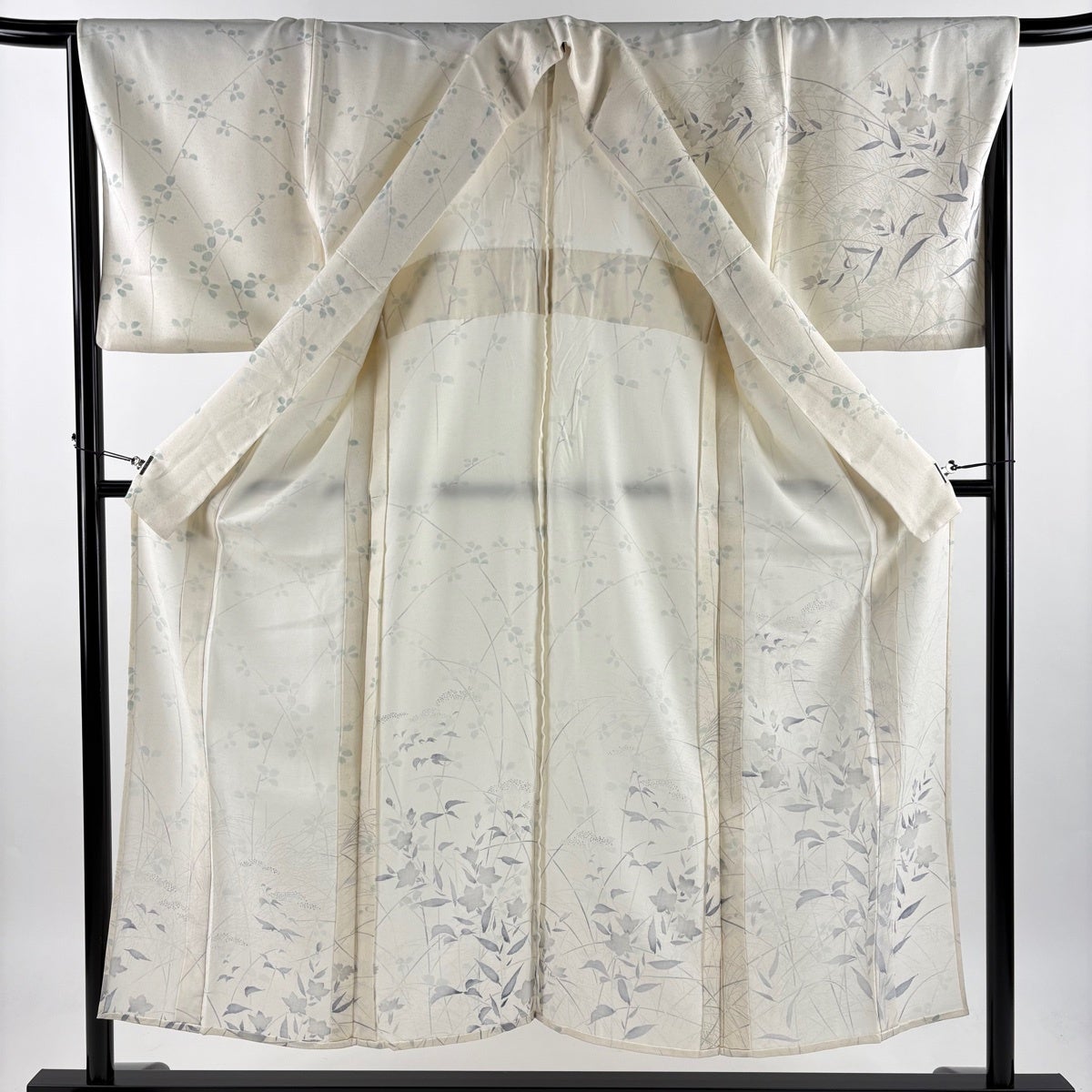 小紋 身丈165cm 裄丈66cm M 薄物 絽 萩 菖蒲 クリーム 正絹 秀品