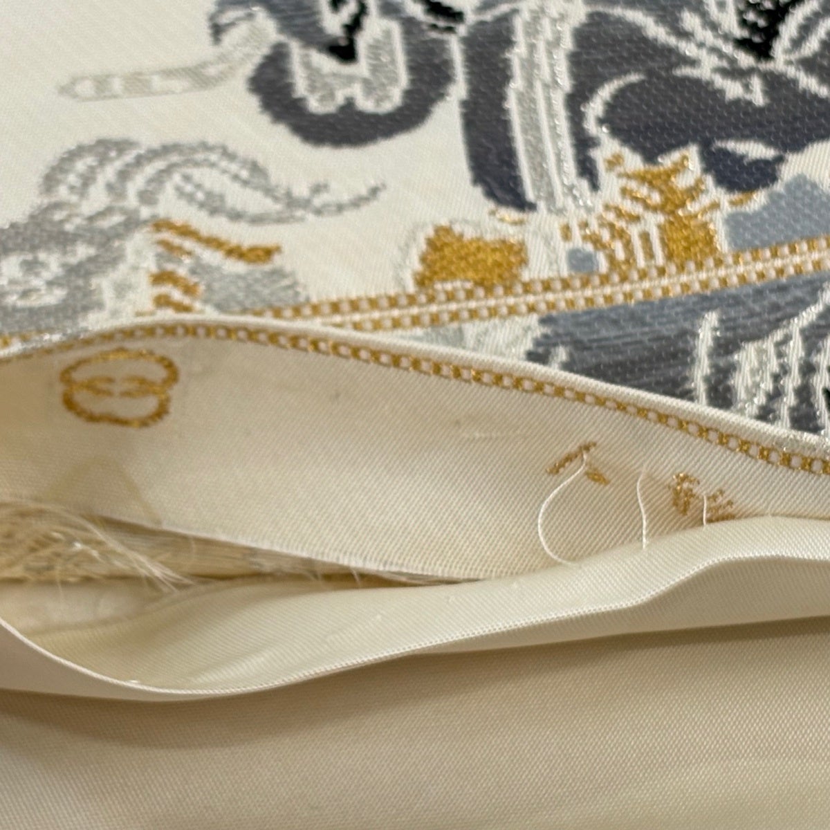 【美品】 袋帯 秀品 やまと 華文 錦繍波涛文 金糸 箔 クリーム 六通 正絹