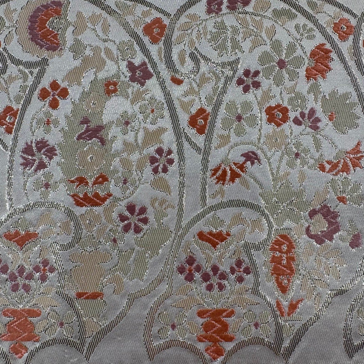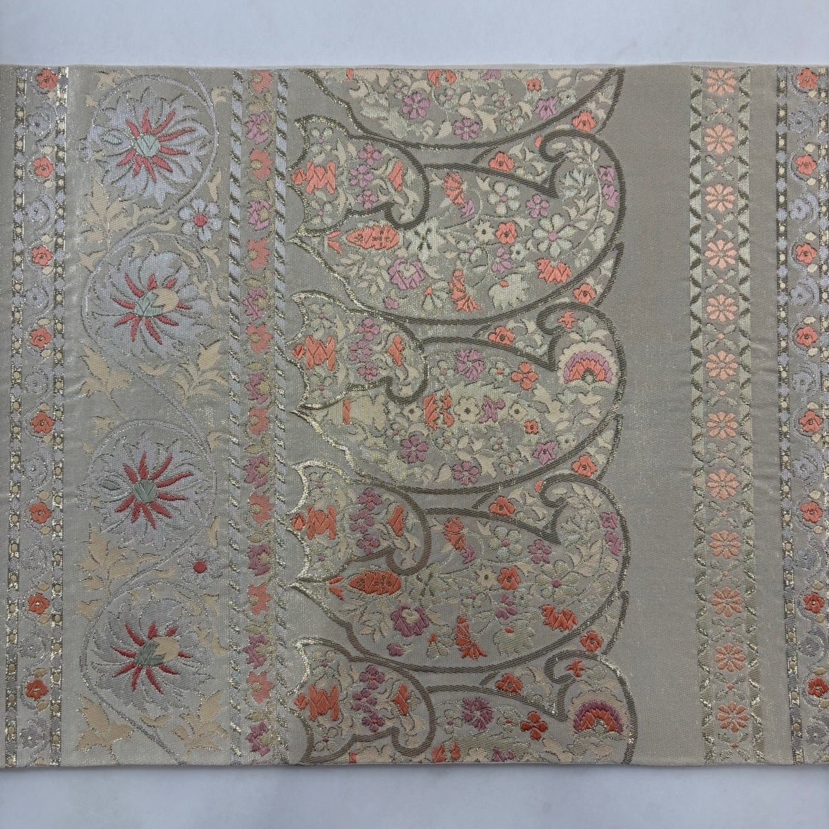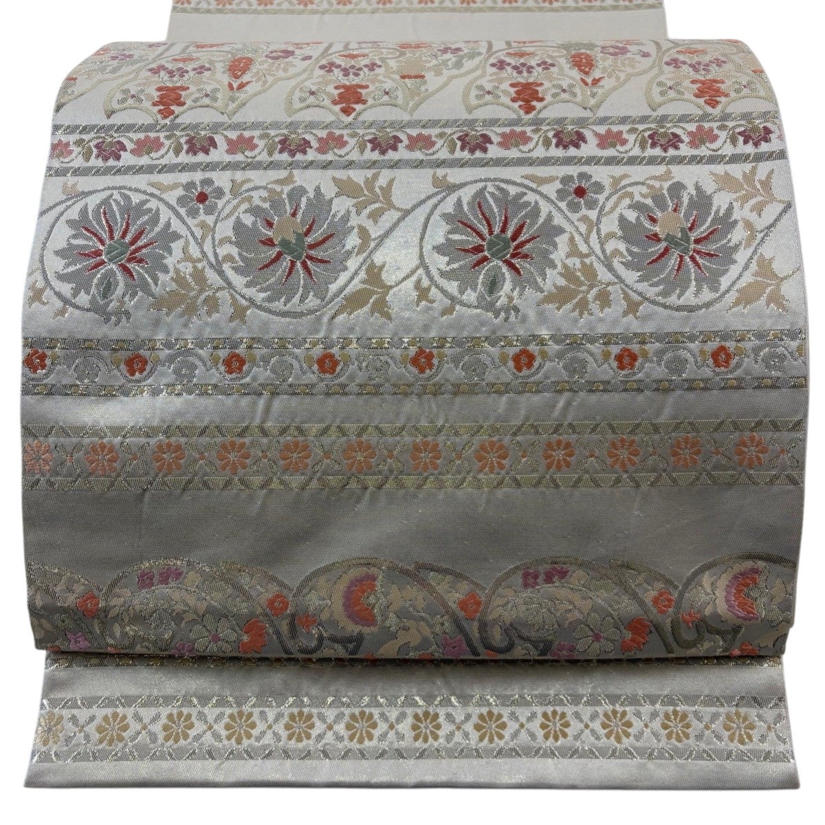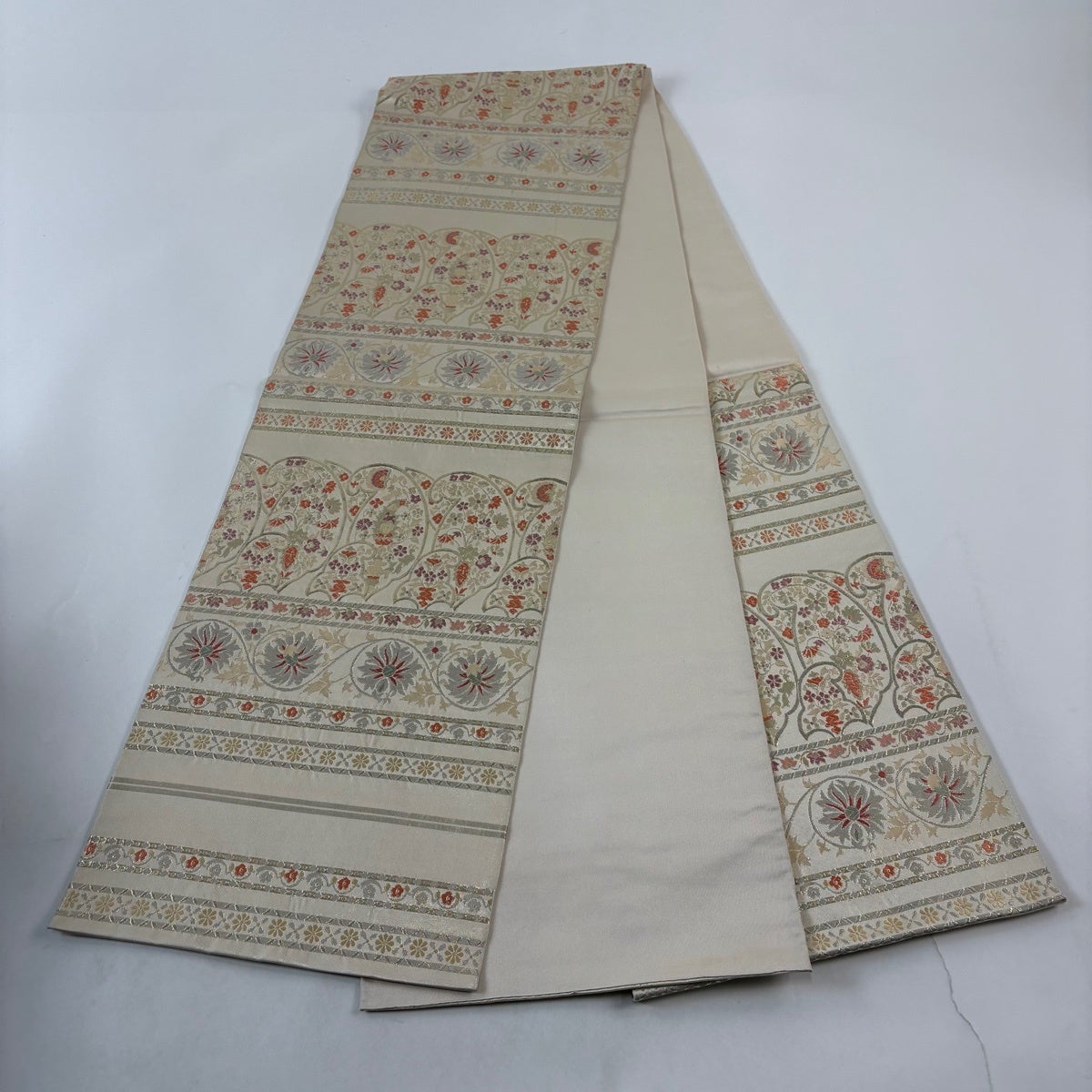 袋帯 秀品 川島織物 落款あり 花唐草 横段 箔 金銀糸 クリーム 六通 正絹