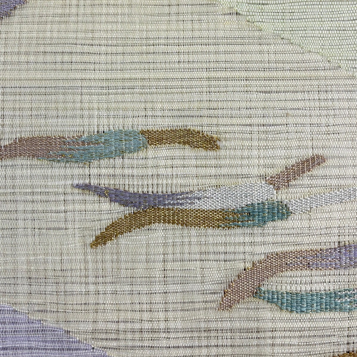 【美品】 袋帯 名品 夏帯 やまと 草花 霞 金銀糸 クリーム お太鼓柄 正絹