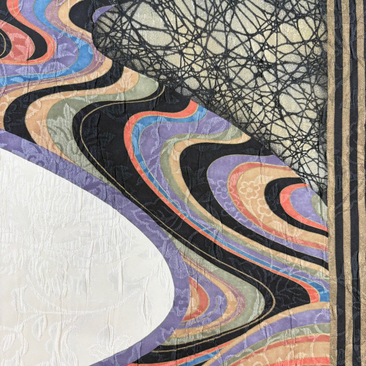 【美品】 名古屋帯 秀品 夏帯 絽 八寸名古屋帯 幾何学模様 金銀糸 クリーム 正絹
