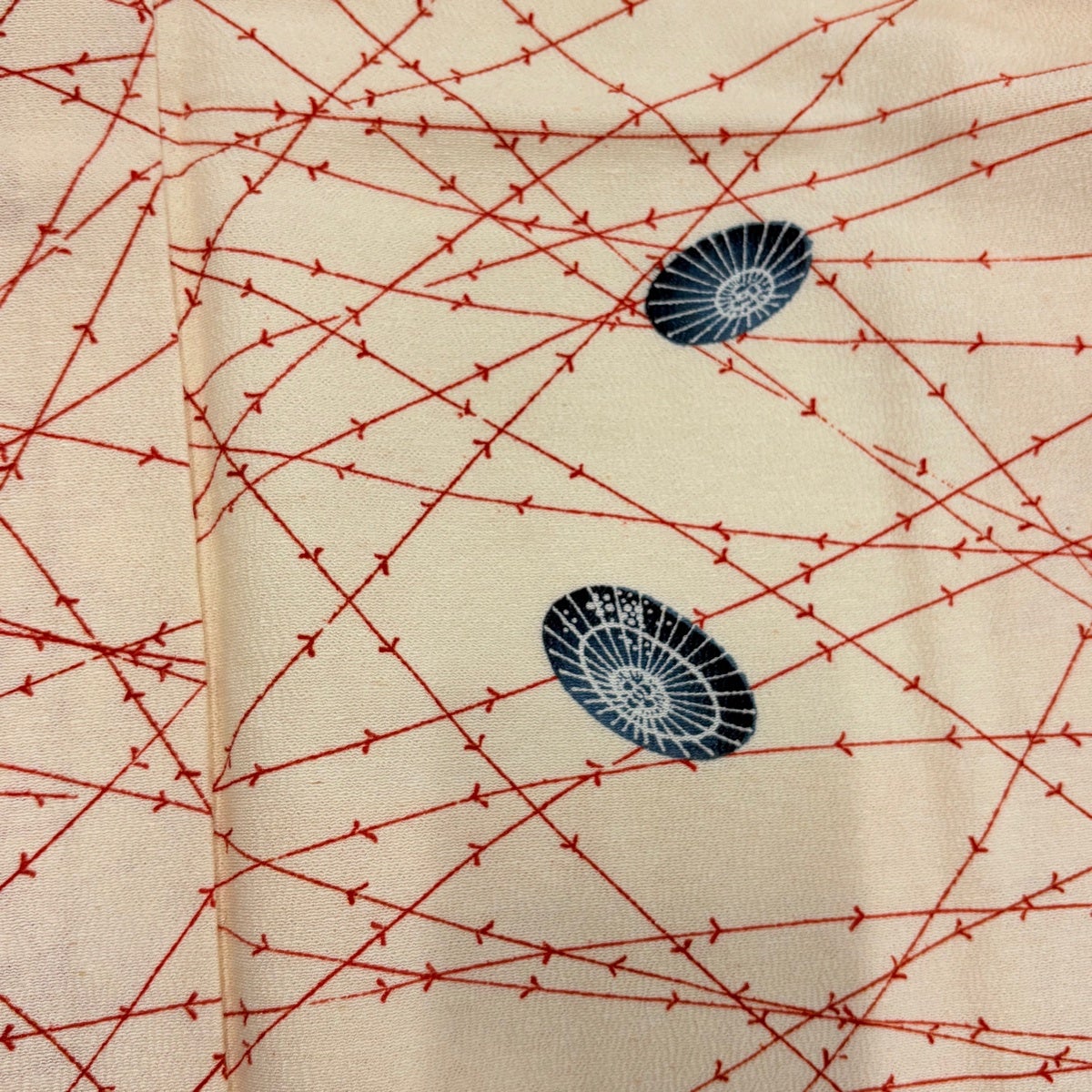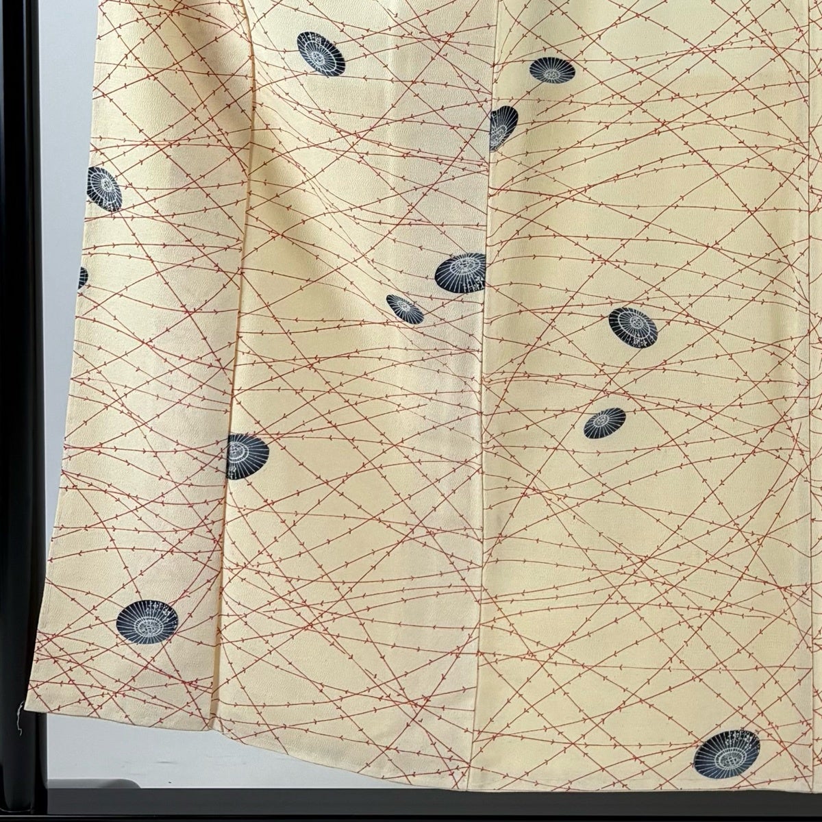 小紋 身丈155.5cm 裄丈63.5cm S 薄物 流水 魚 クリーム 正絹 秀品