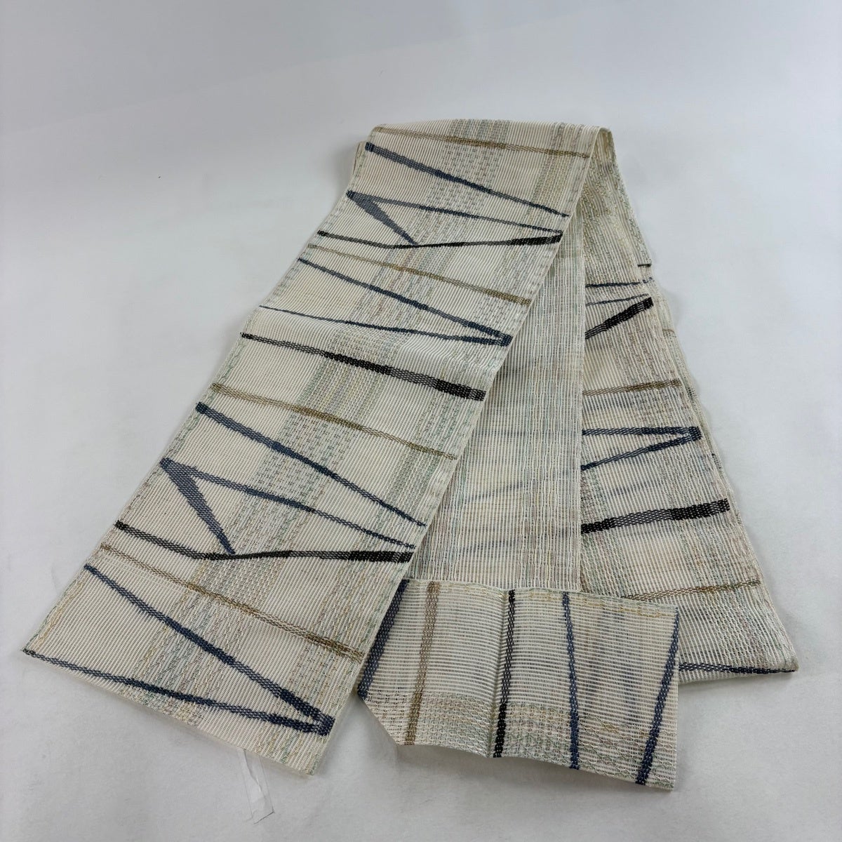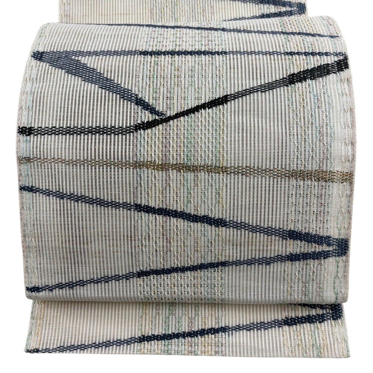 【美品】 名古屋帯 秀品 夏帯 絽 八寸名古屋帯 幾何学 縞 金銀糸 クリーム 正絹