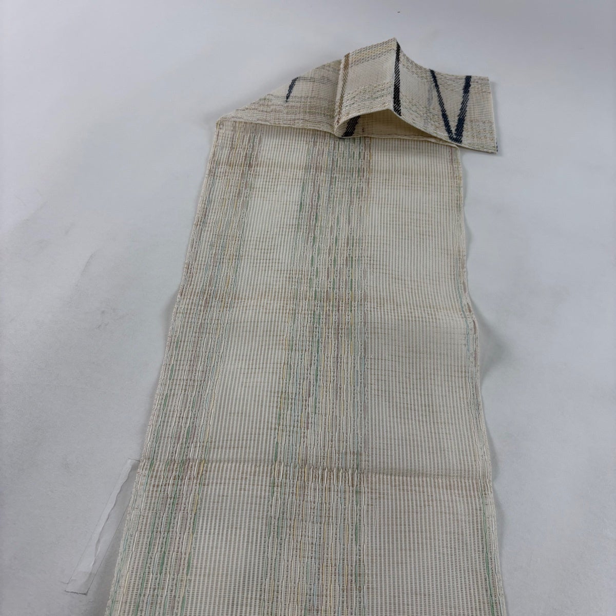 【美品】 名古屋帯 秀品 夏帯 八寸名古屋帯 松葉仕立て 縞 金銀糸 クリーム 正絹