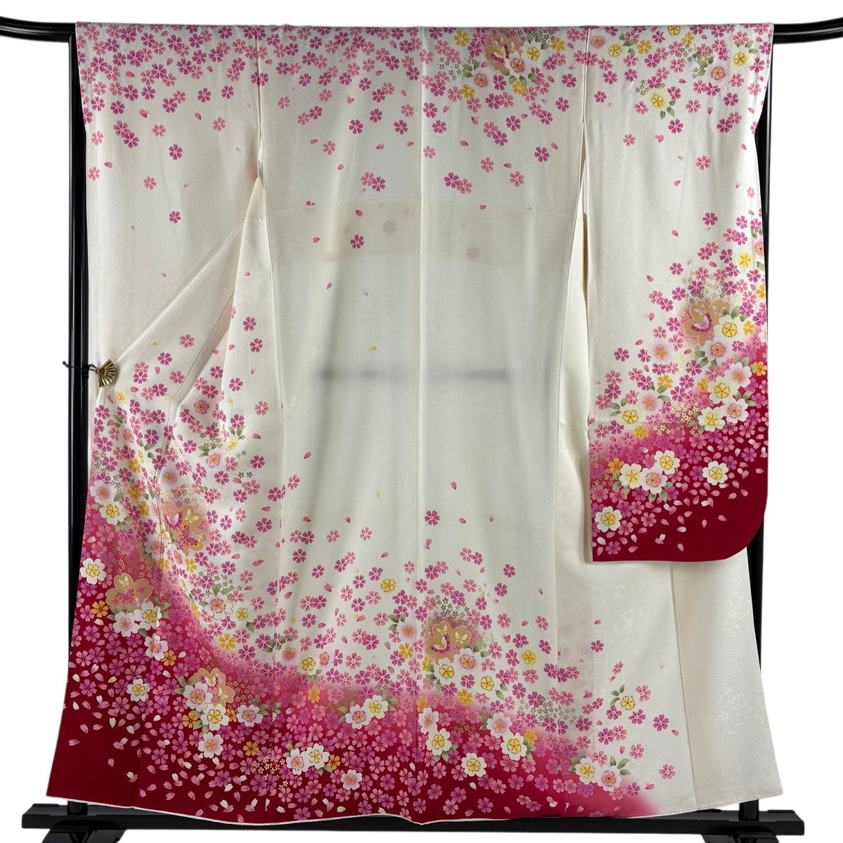 30%OFF 振袖 身丈164.5cm 裄丈64cm M 袷 草花 雲文 金糸 金彩 クリーム 正絹 秀品 K30