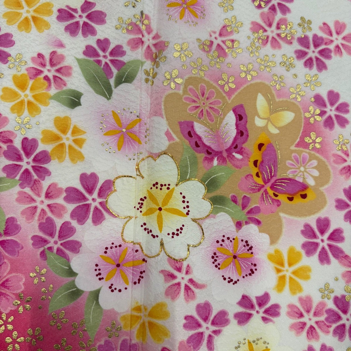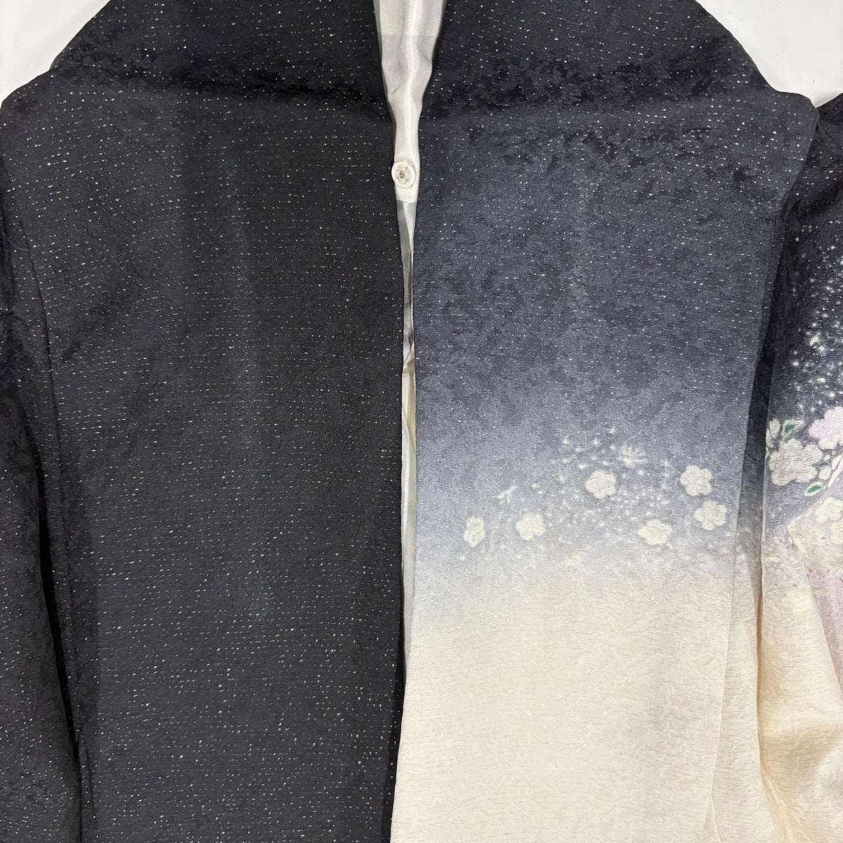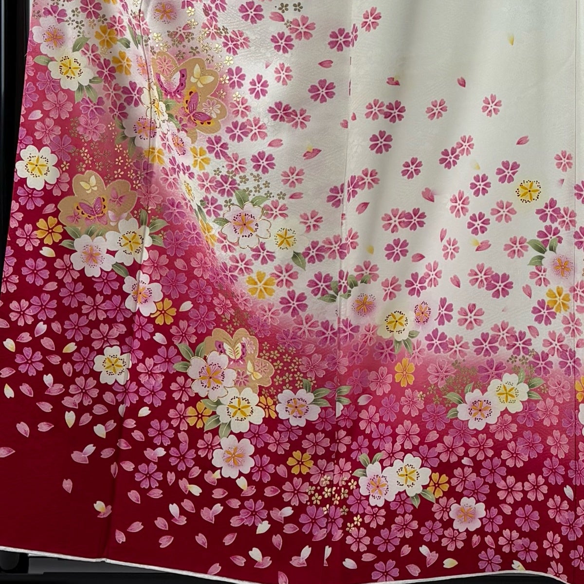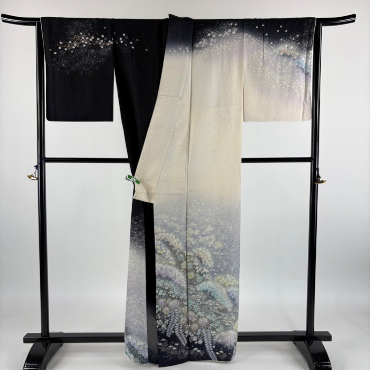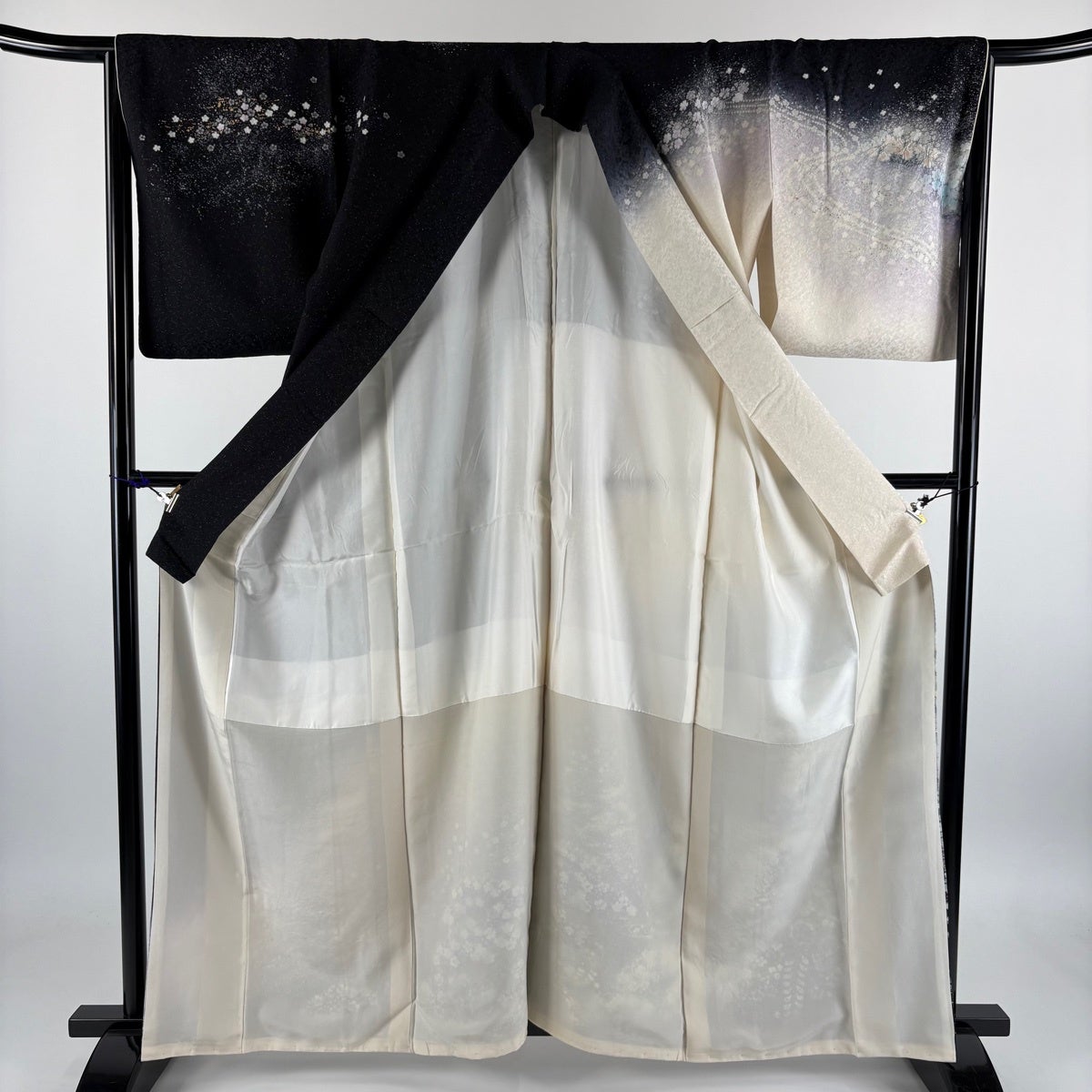 30%OFF 振袖 身丈165cm 裄丈66.5cm M 袷 鶴 菊 金彩 染め分け クリーム 正絹 秀品 K30