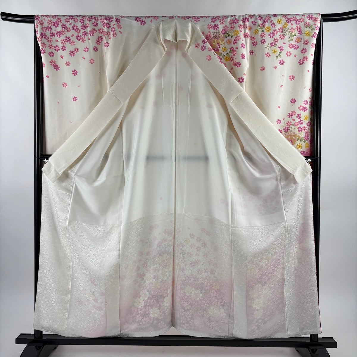 50%OFF 訪問着 身丈160.5cm 裄丈67cm M 袷 冊子 桜 金糸 金彩 クリーム 正絹 秀品 K50