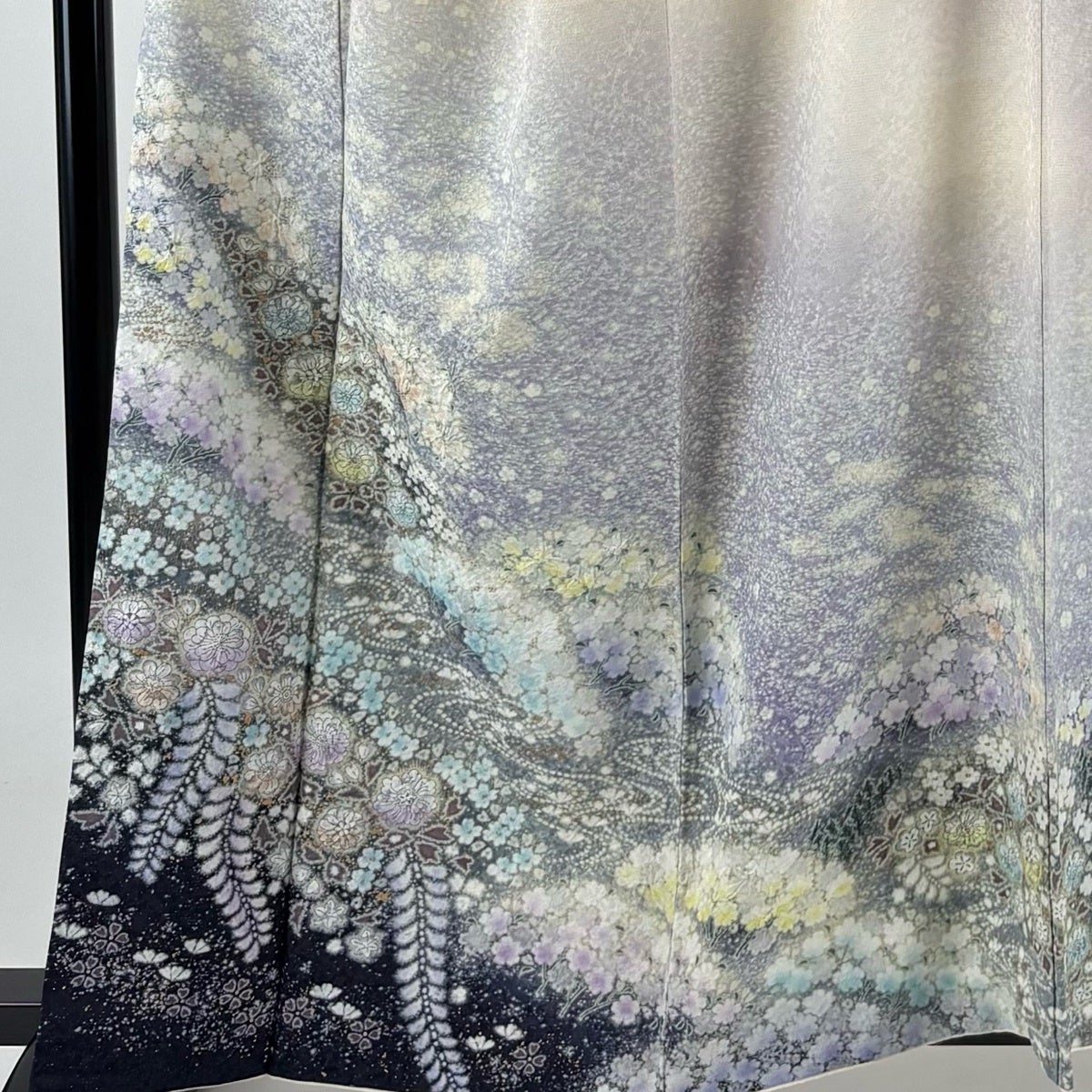 30%OFF 付下げ 身丈164.5cm 裄丈63.5cm S 薄物 絽 草花 ぼかし クリーム 正絹 秀品 K30