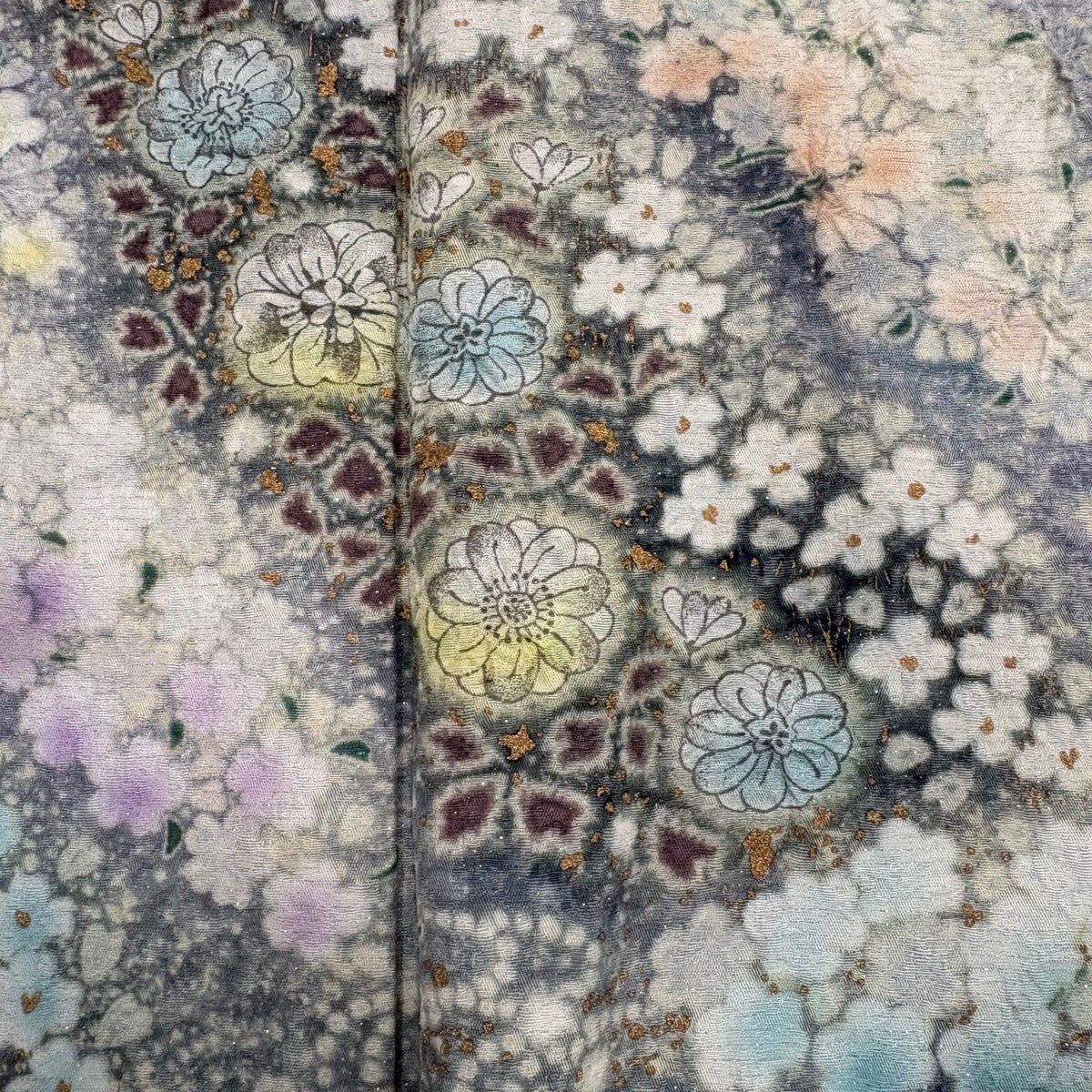 50%OFF 振袖 身丈176cm 裄丈70cm L 袷 草花 地紋 金通し 金彩 クリーム 正絹 逸品 K50