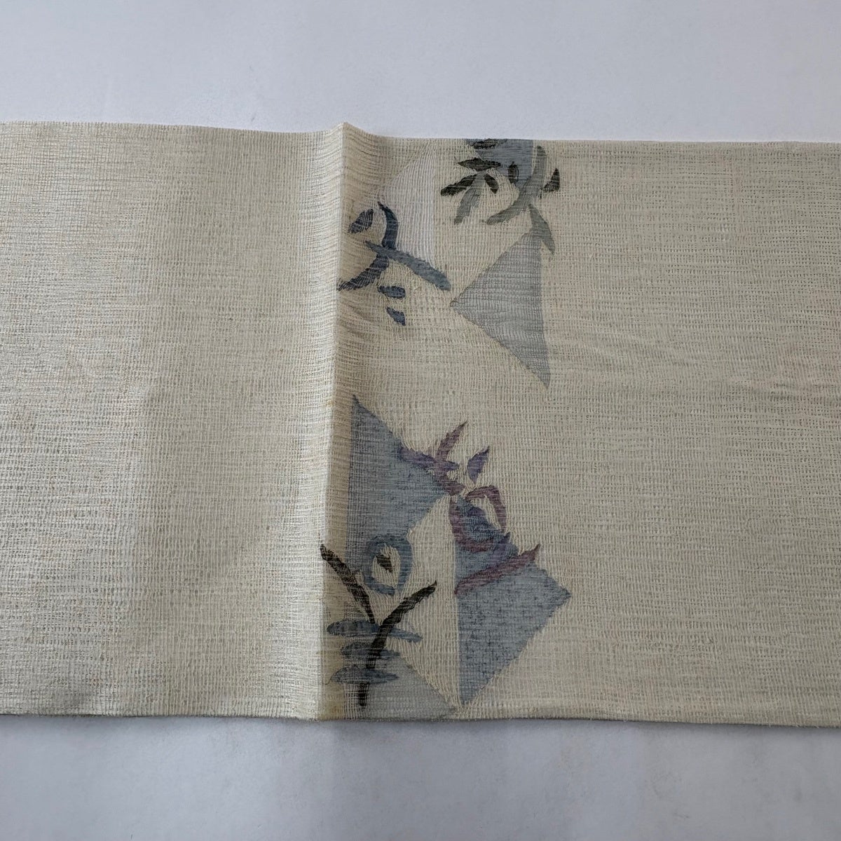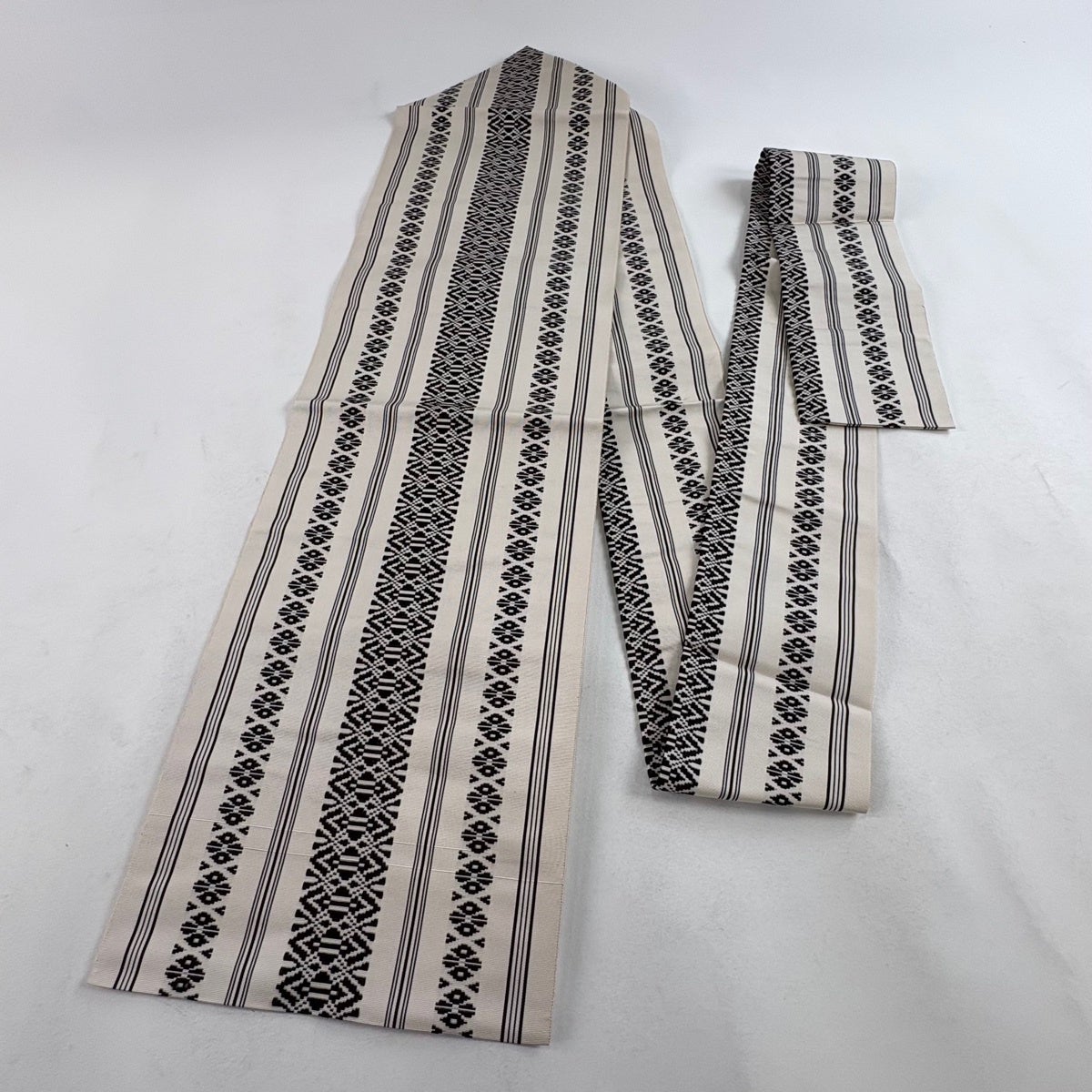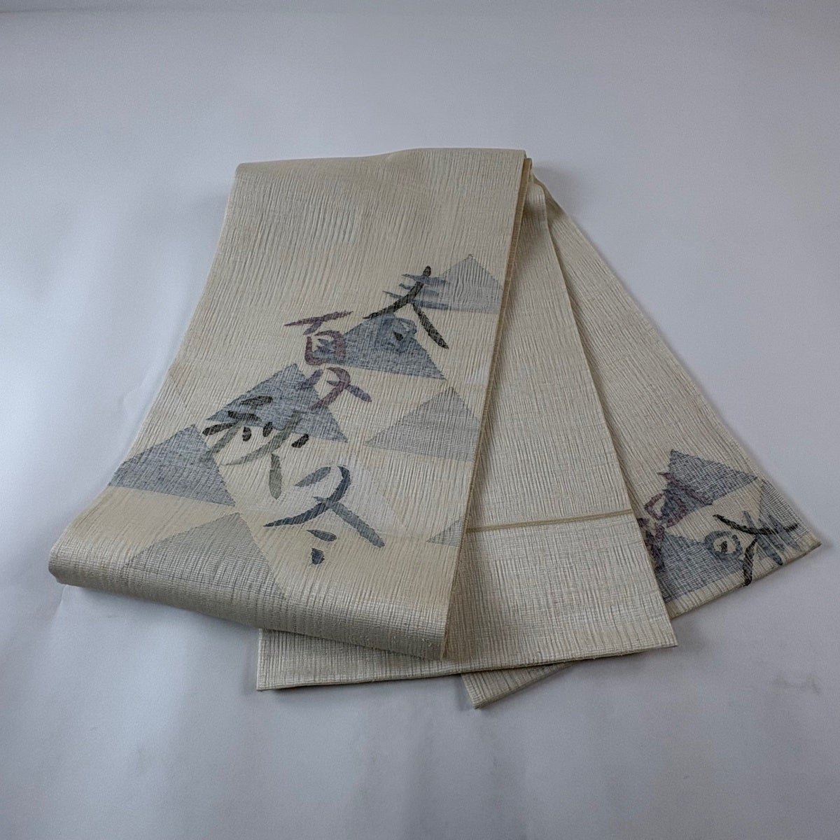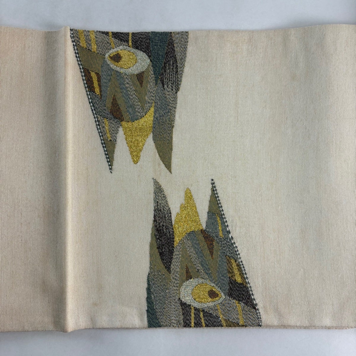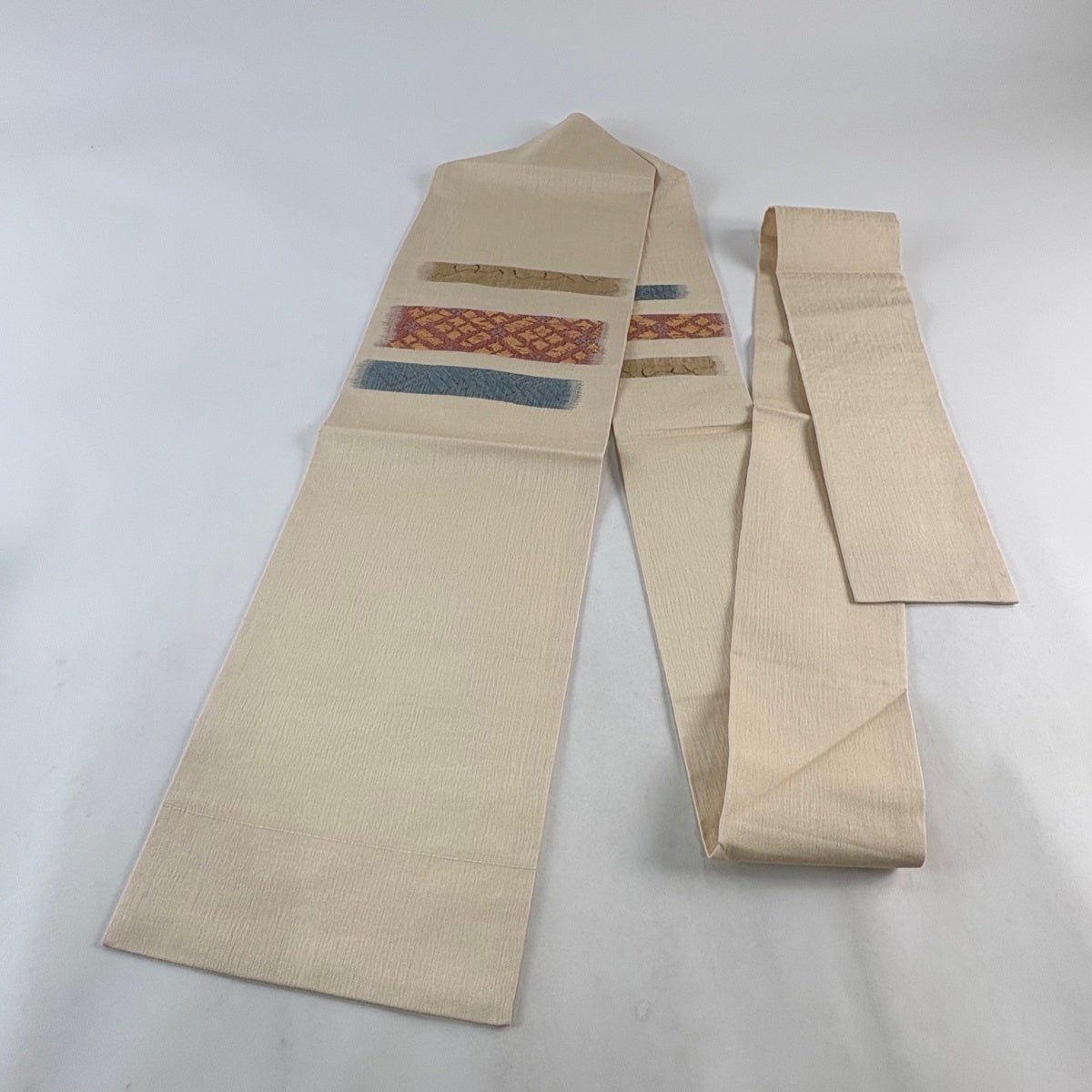 【美品】半幅帯 名品 ますいわ屋 幾何学模様 クリーム 正絹