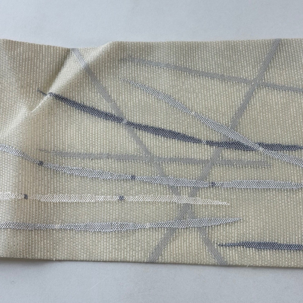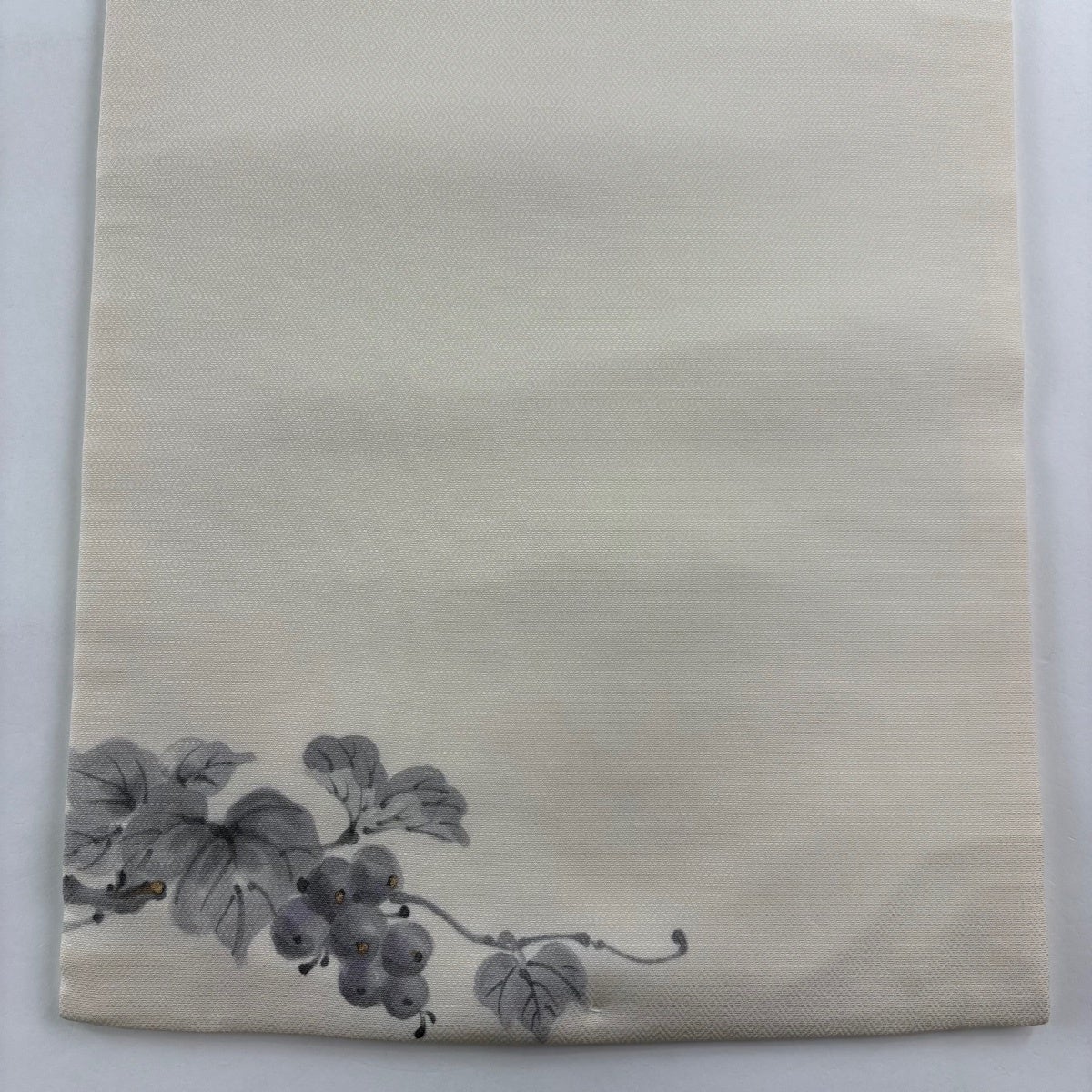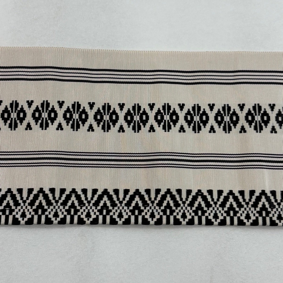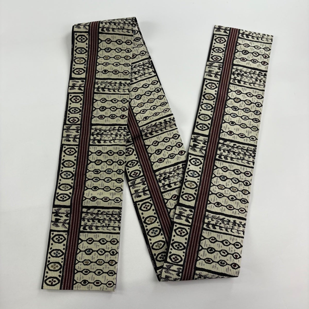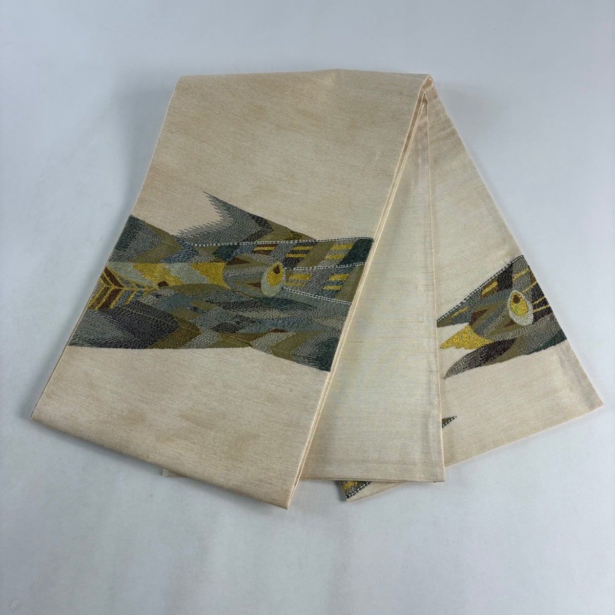 【美品】半幅帯 名品 ますいわ屋 幾何学模様 クリーム 正絹
