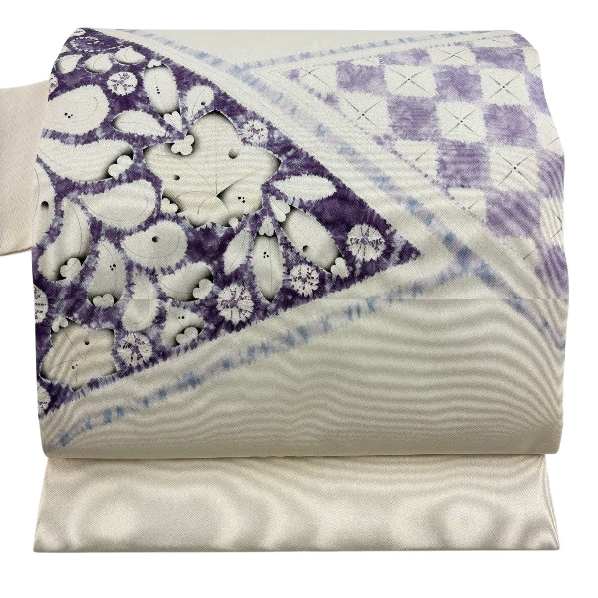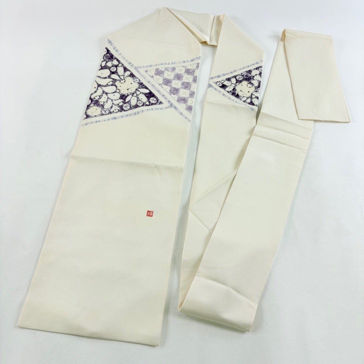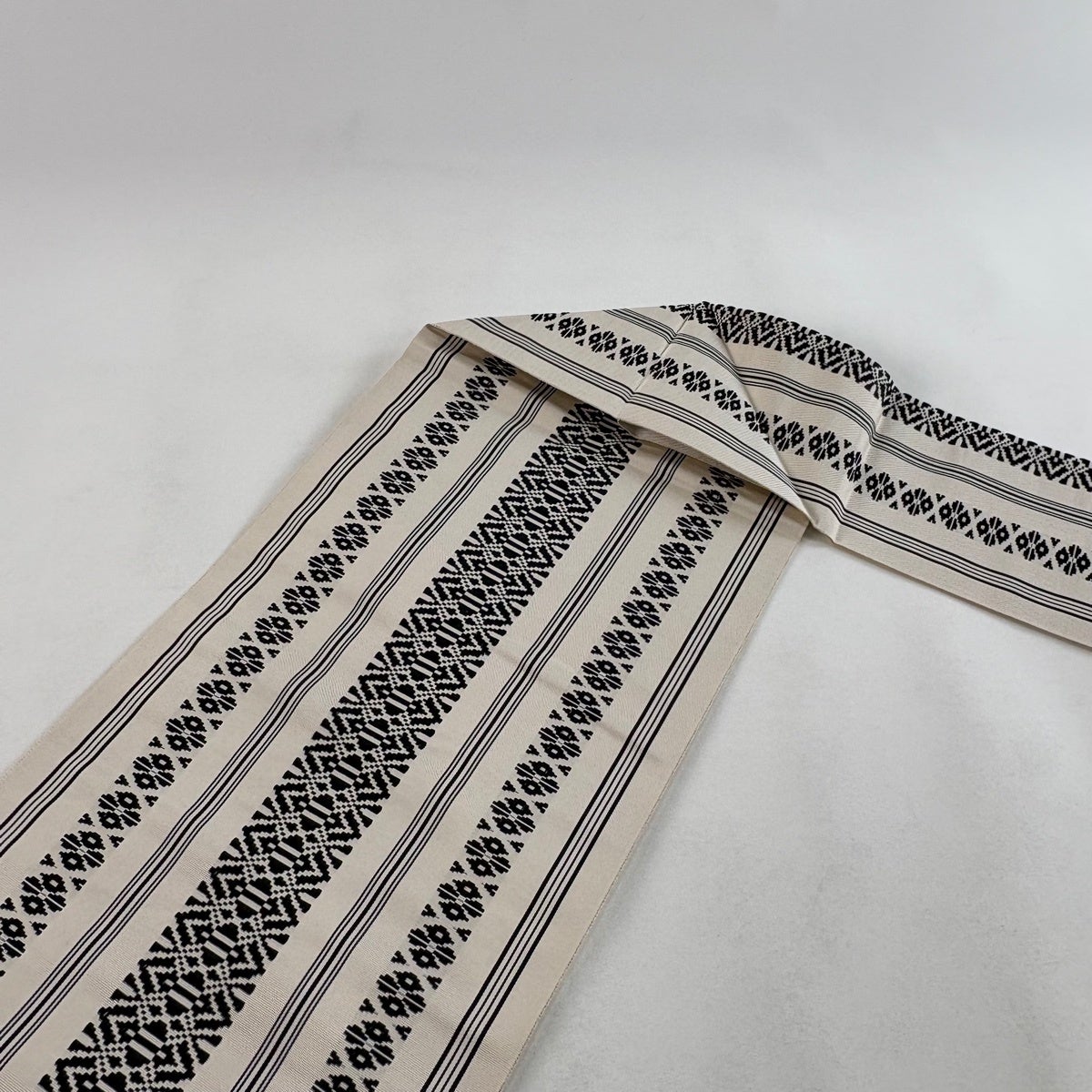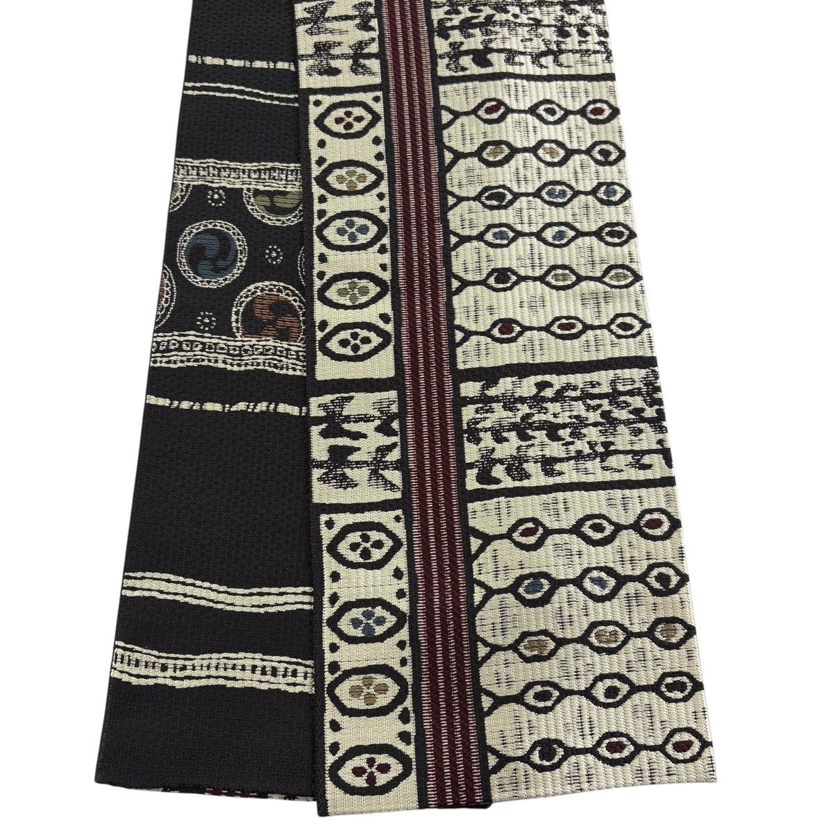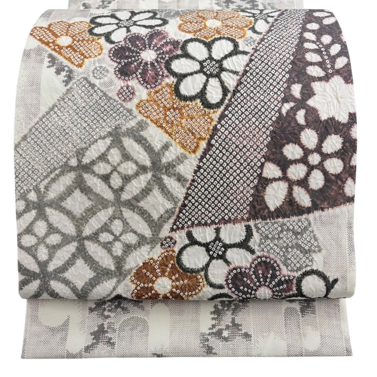 【美品】半幅帯 名品 ますいわ屋 幾何学模様 クリーム 正絹