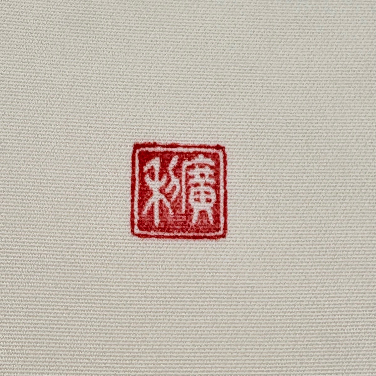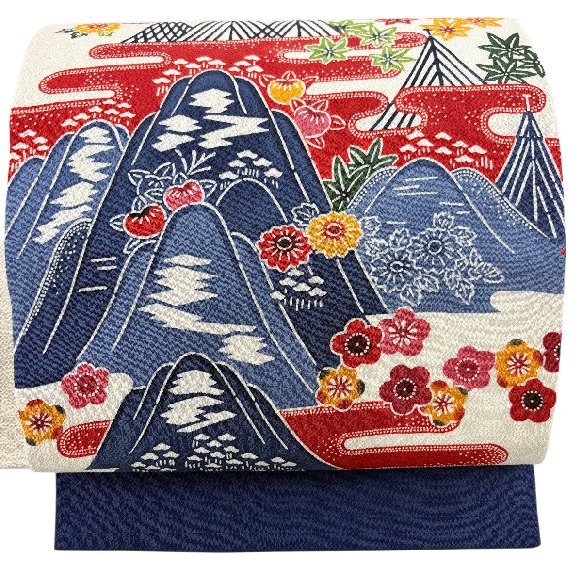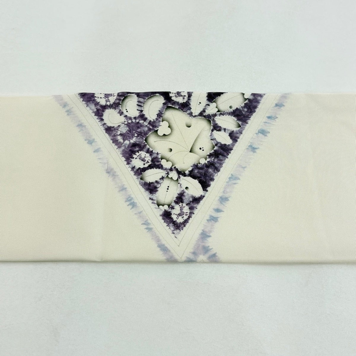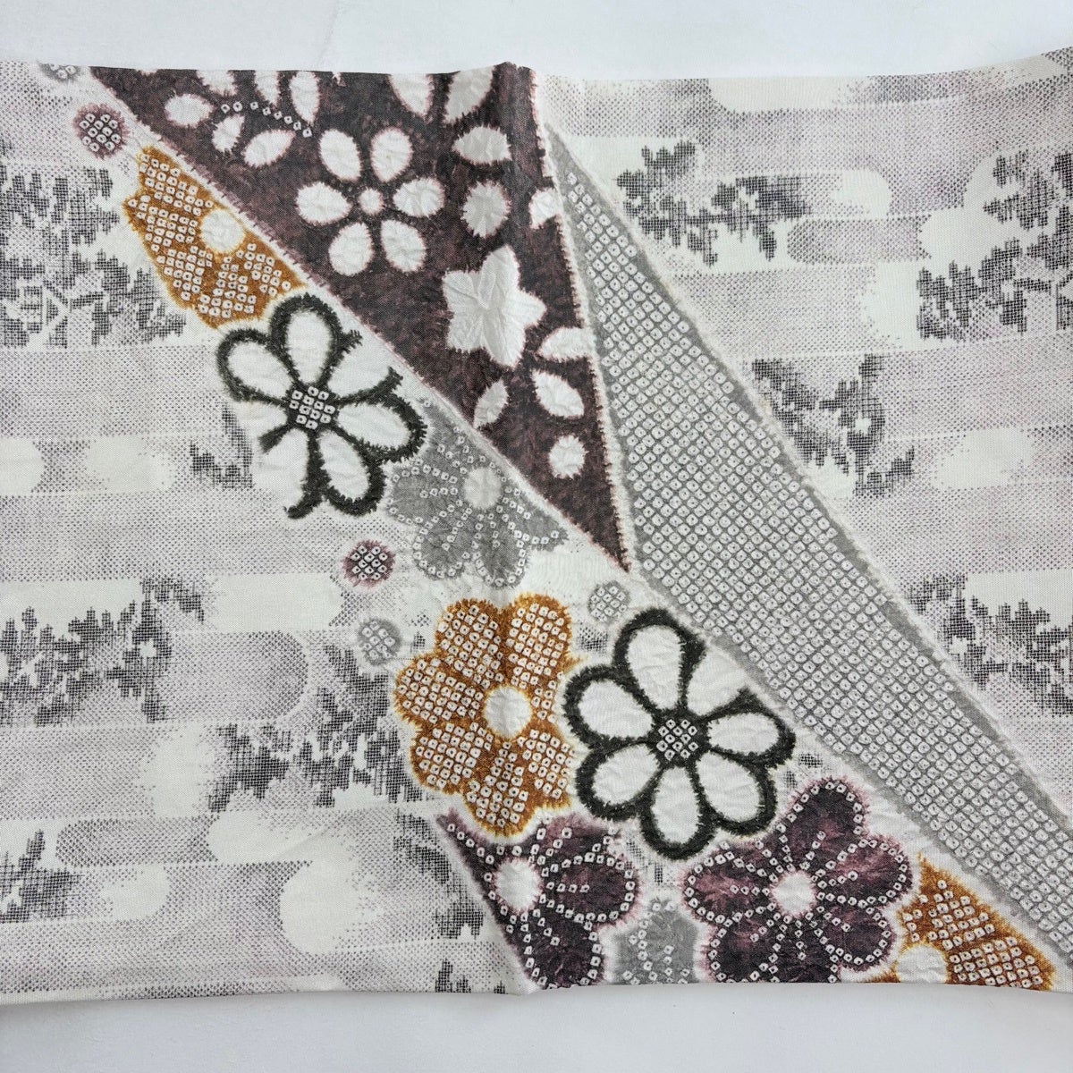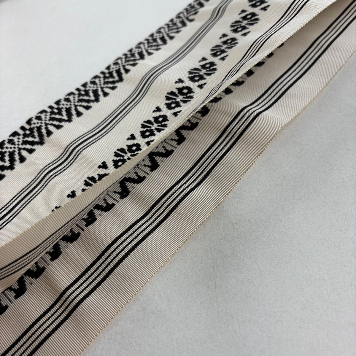 【美品】半幅帯 名品 ますいわ屋 幾何学模様 クリーム 正絹