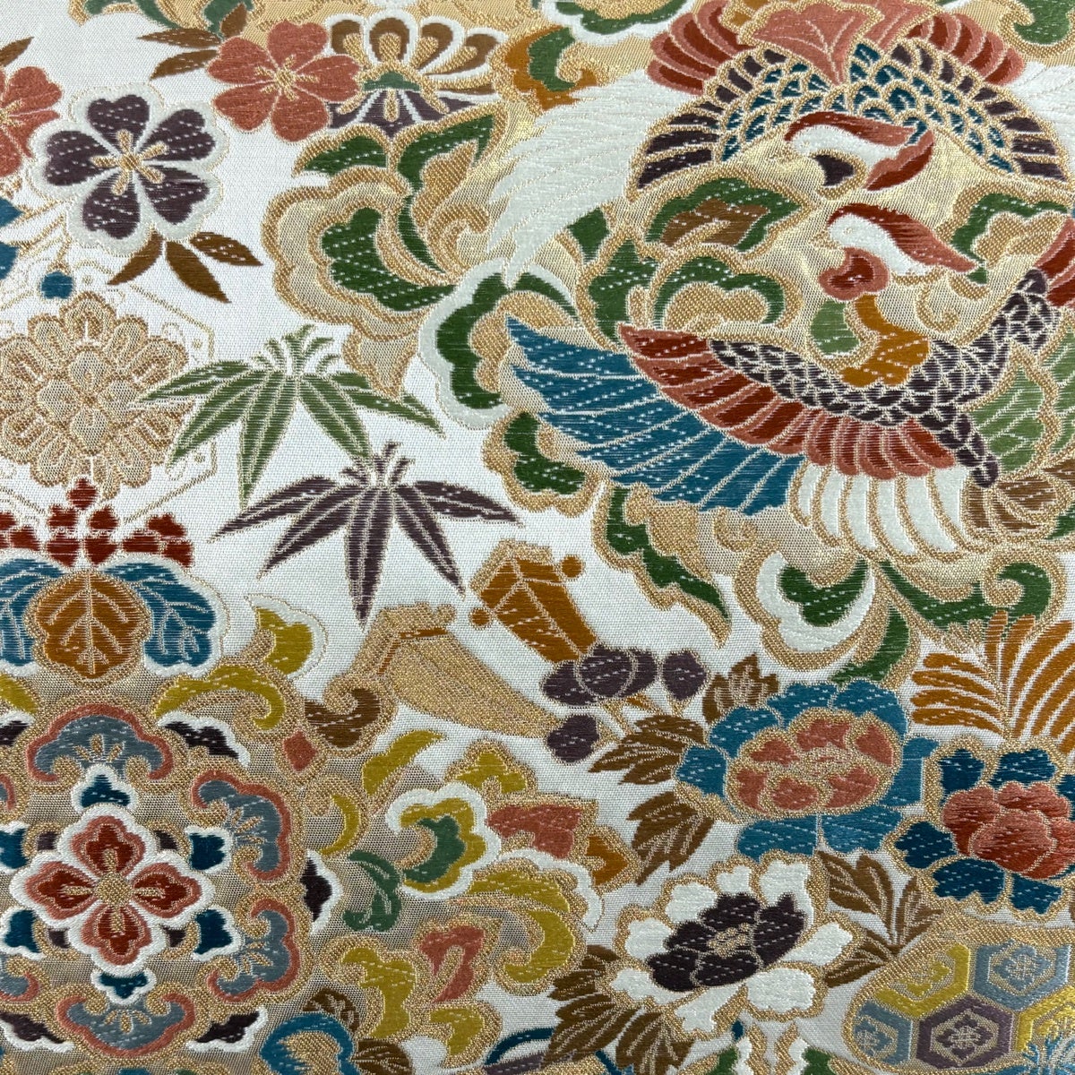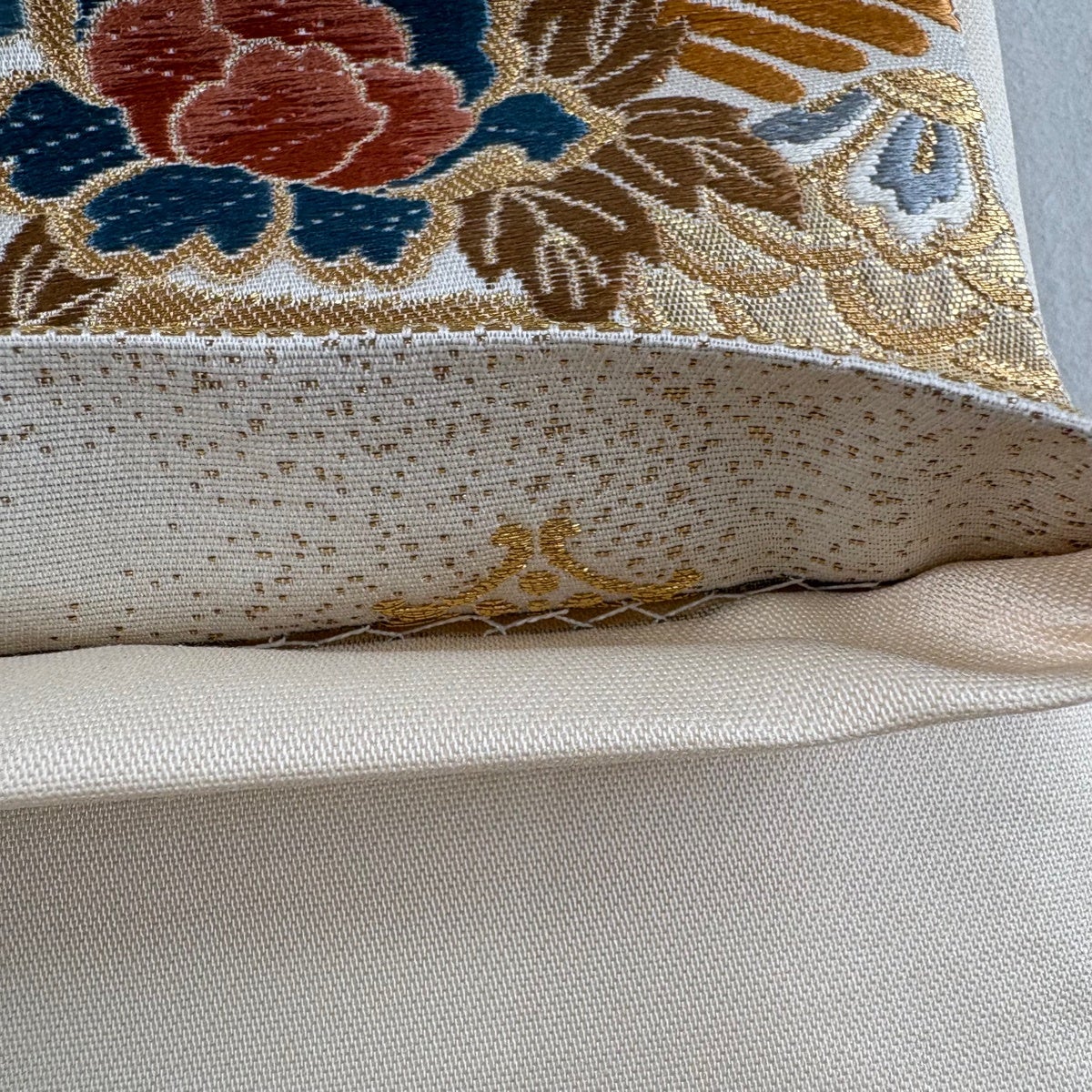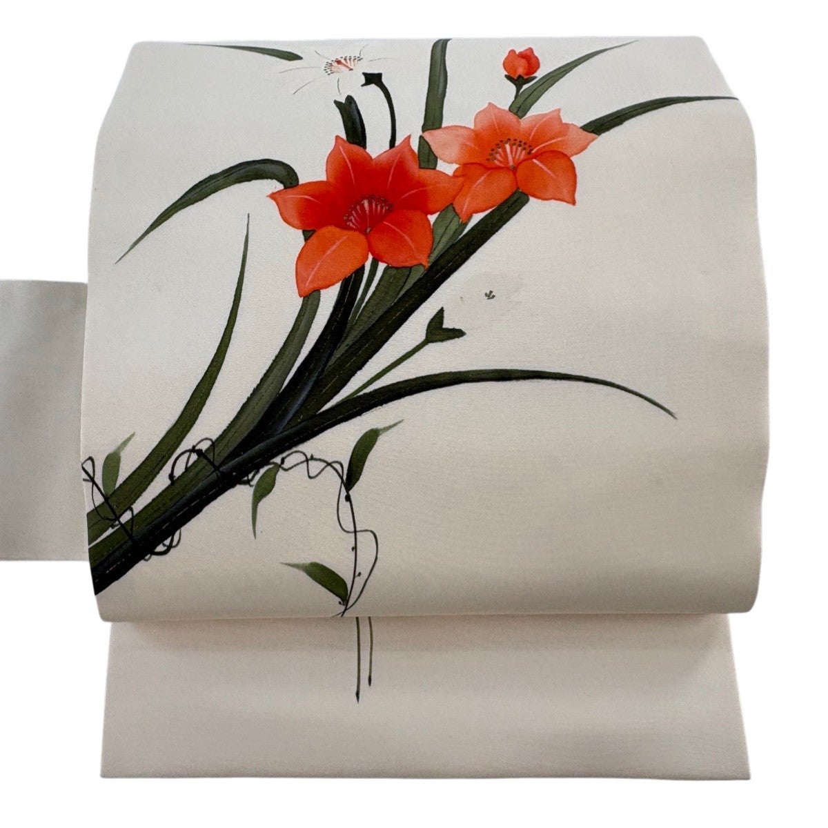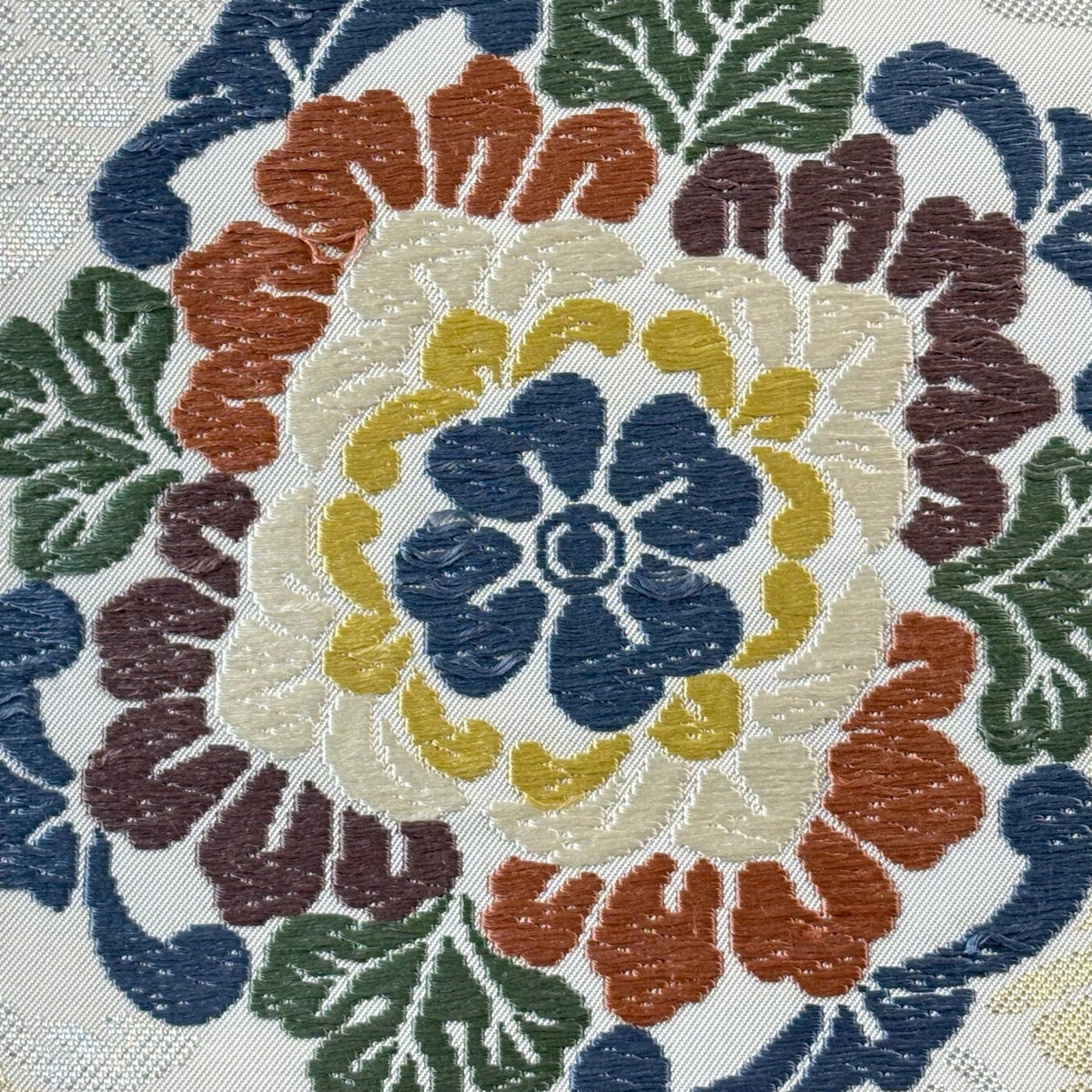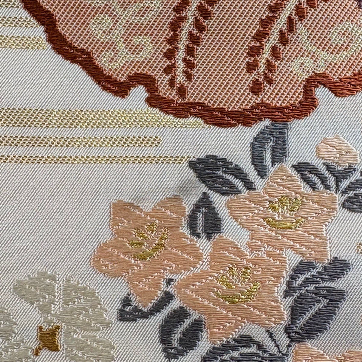【在庫一掃】 袋帯 逸品 華文 草花 クリーム 全通 正絹