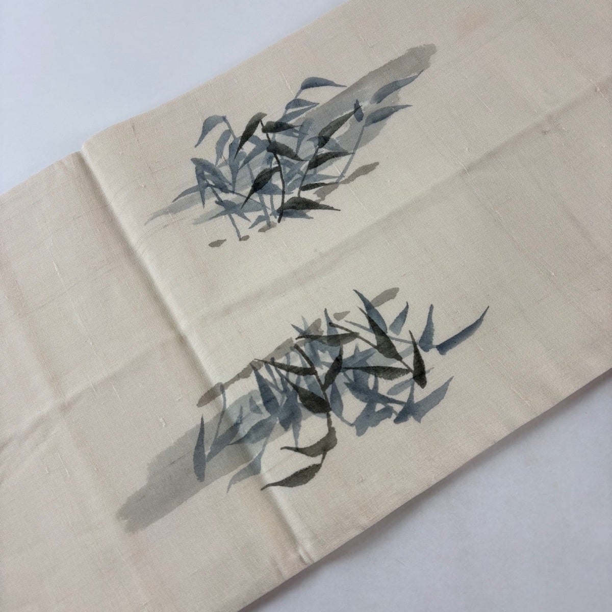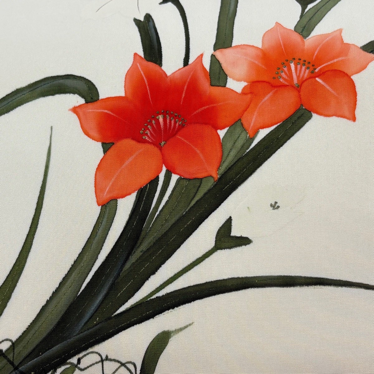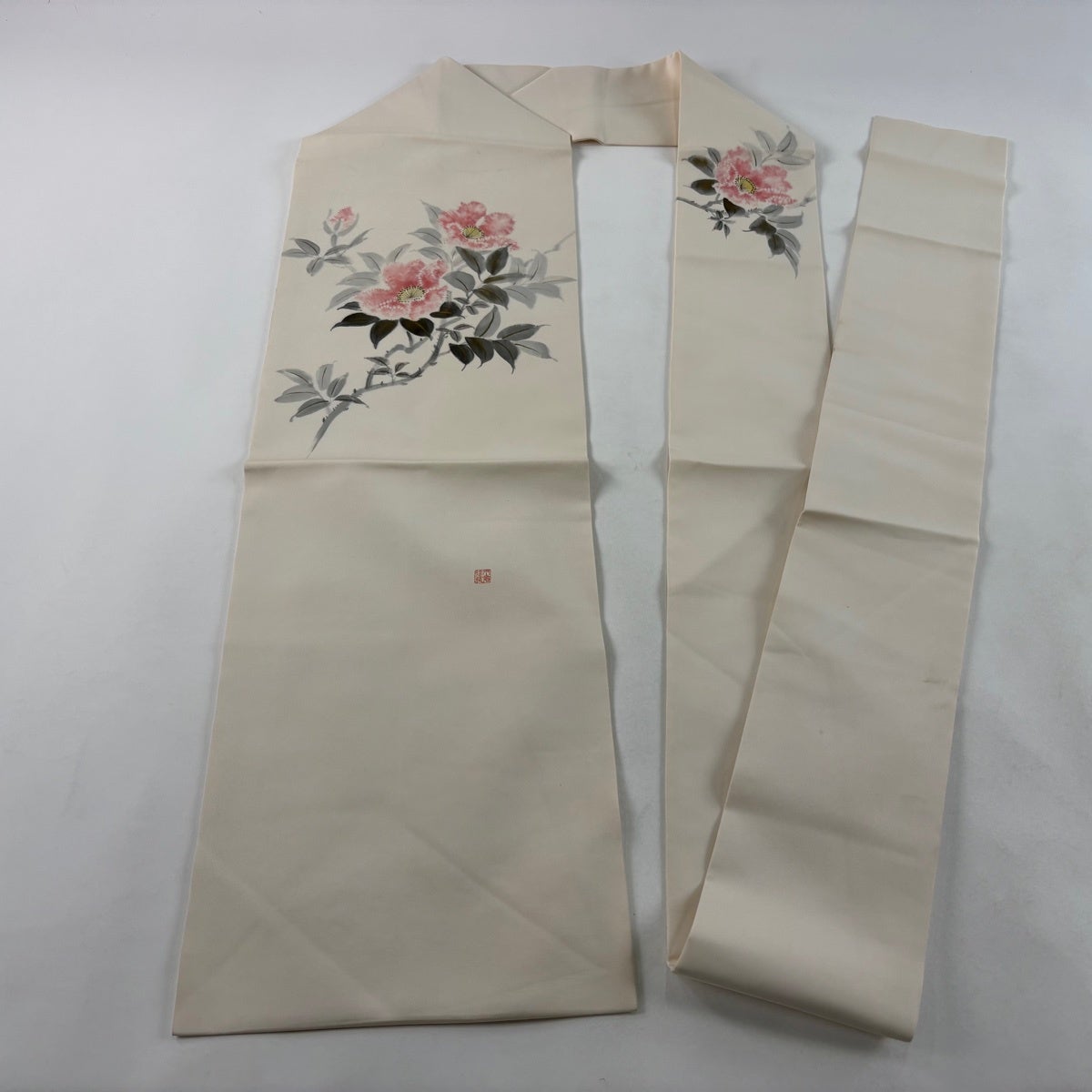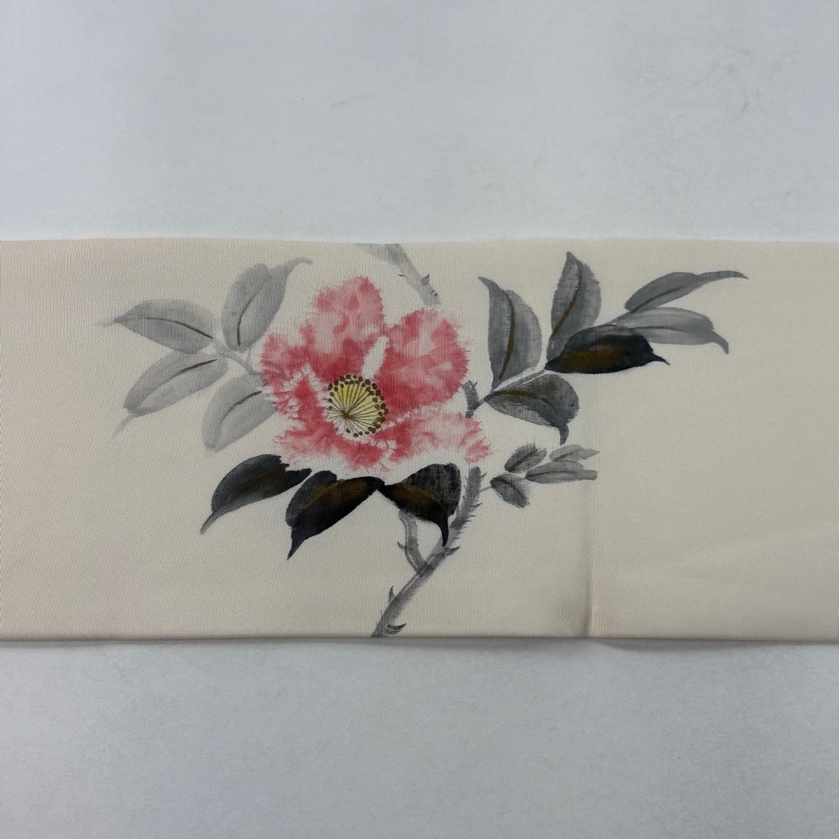 袋帯 秀品 落款あり 辻が花柄 椿 クリーム お太鼓柄 正絹
