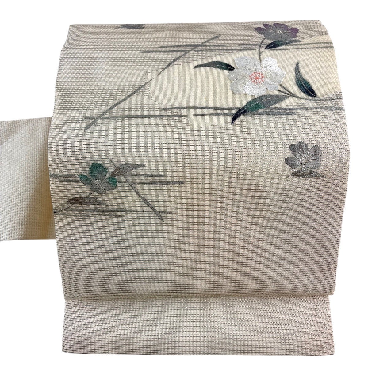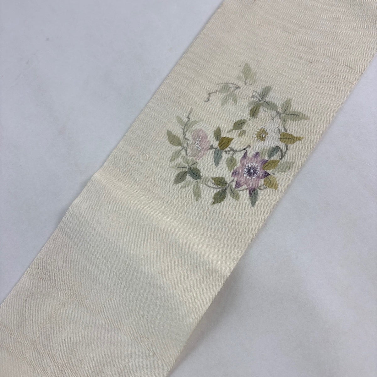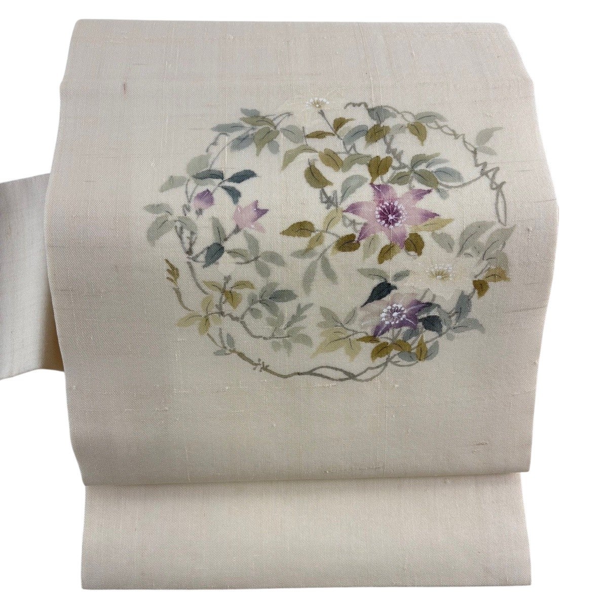 30%OFF 名古屋帯 秀品 草花 クリーム 正絹 K30