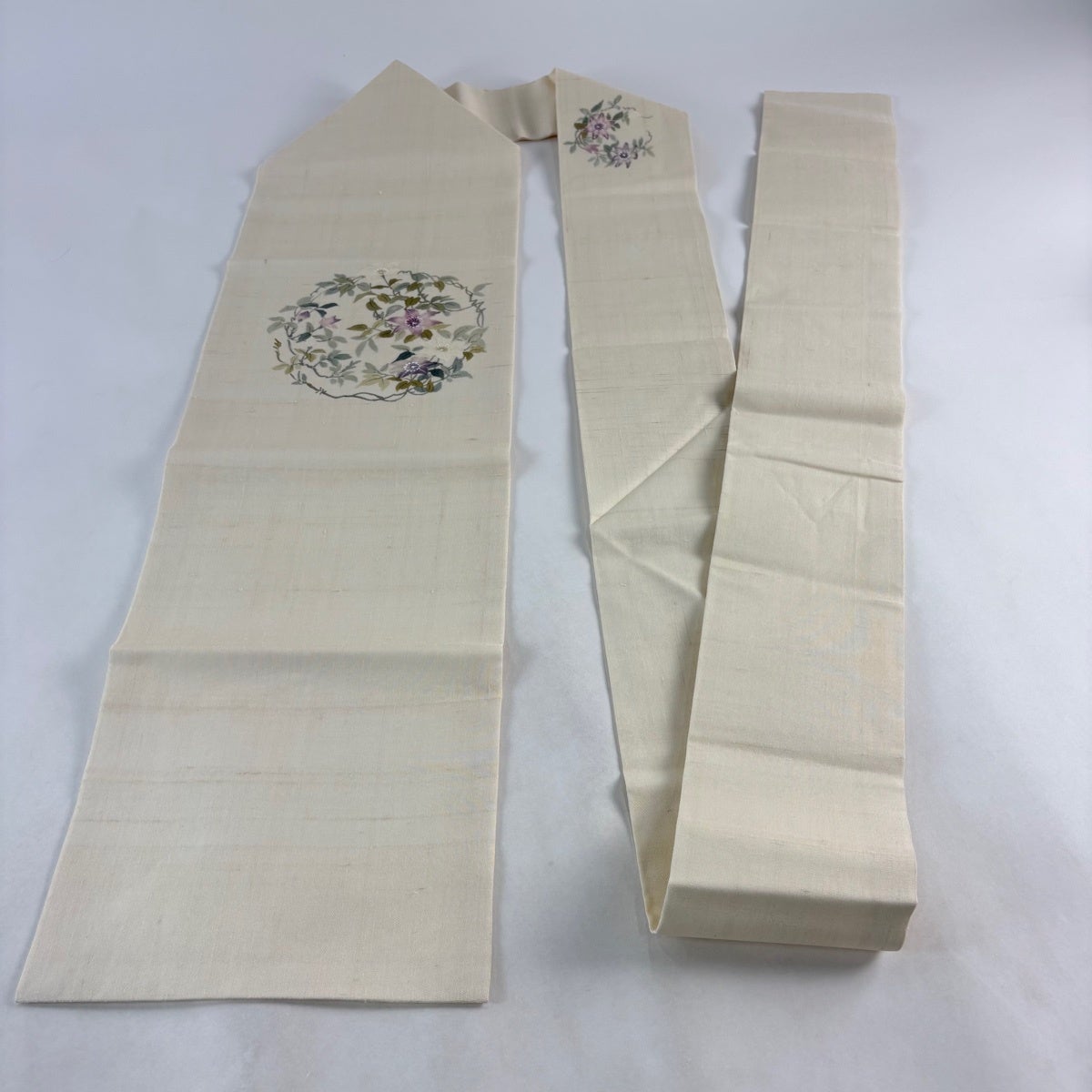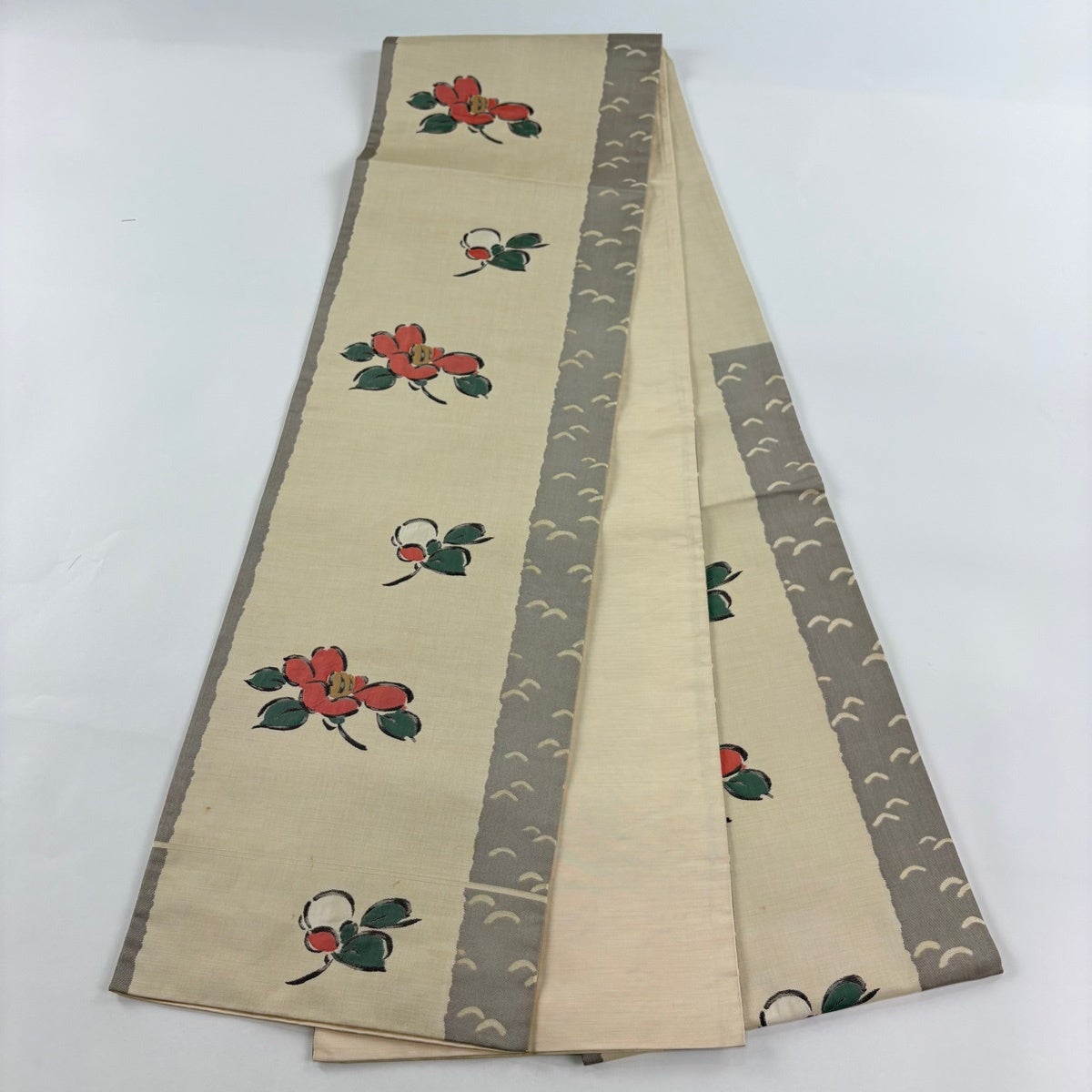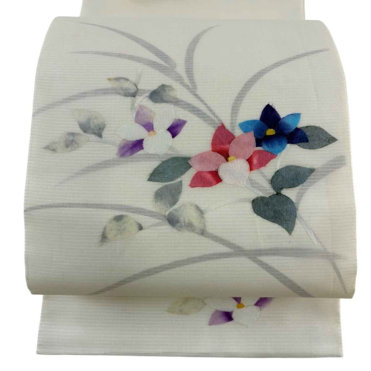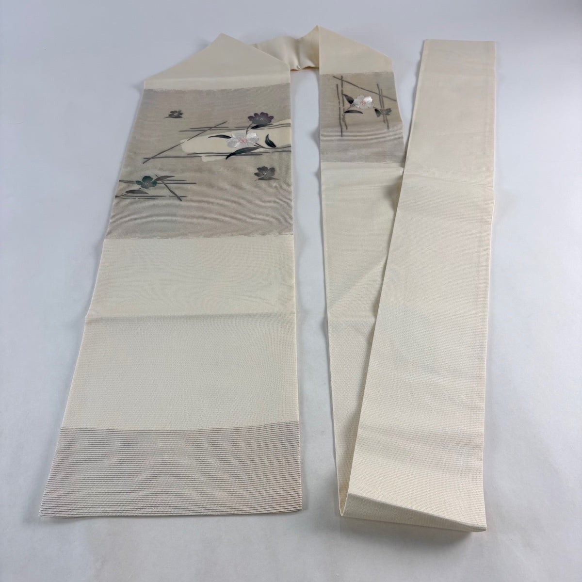 30%OFF 名古屋帯 秀品 草花 クリーム 正絹 K30