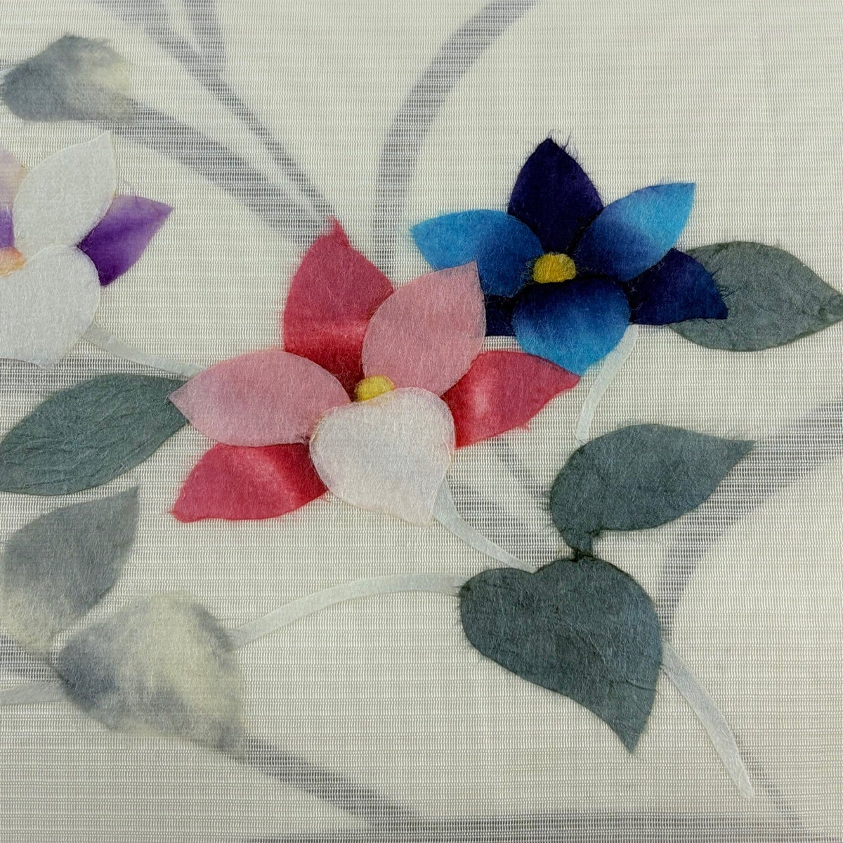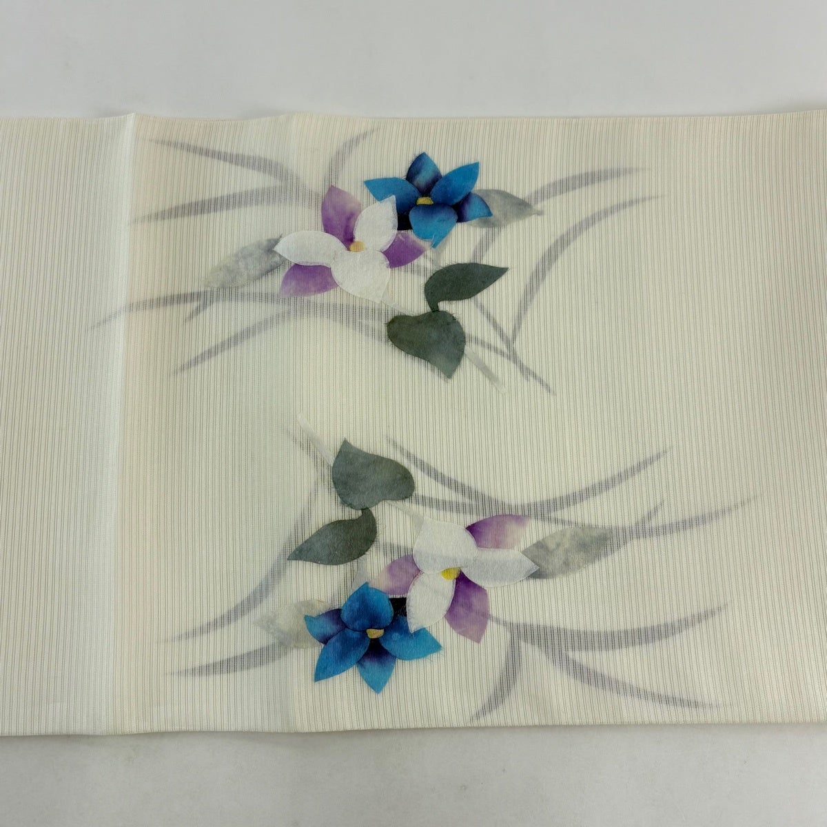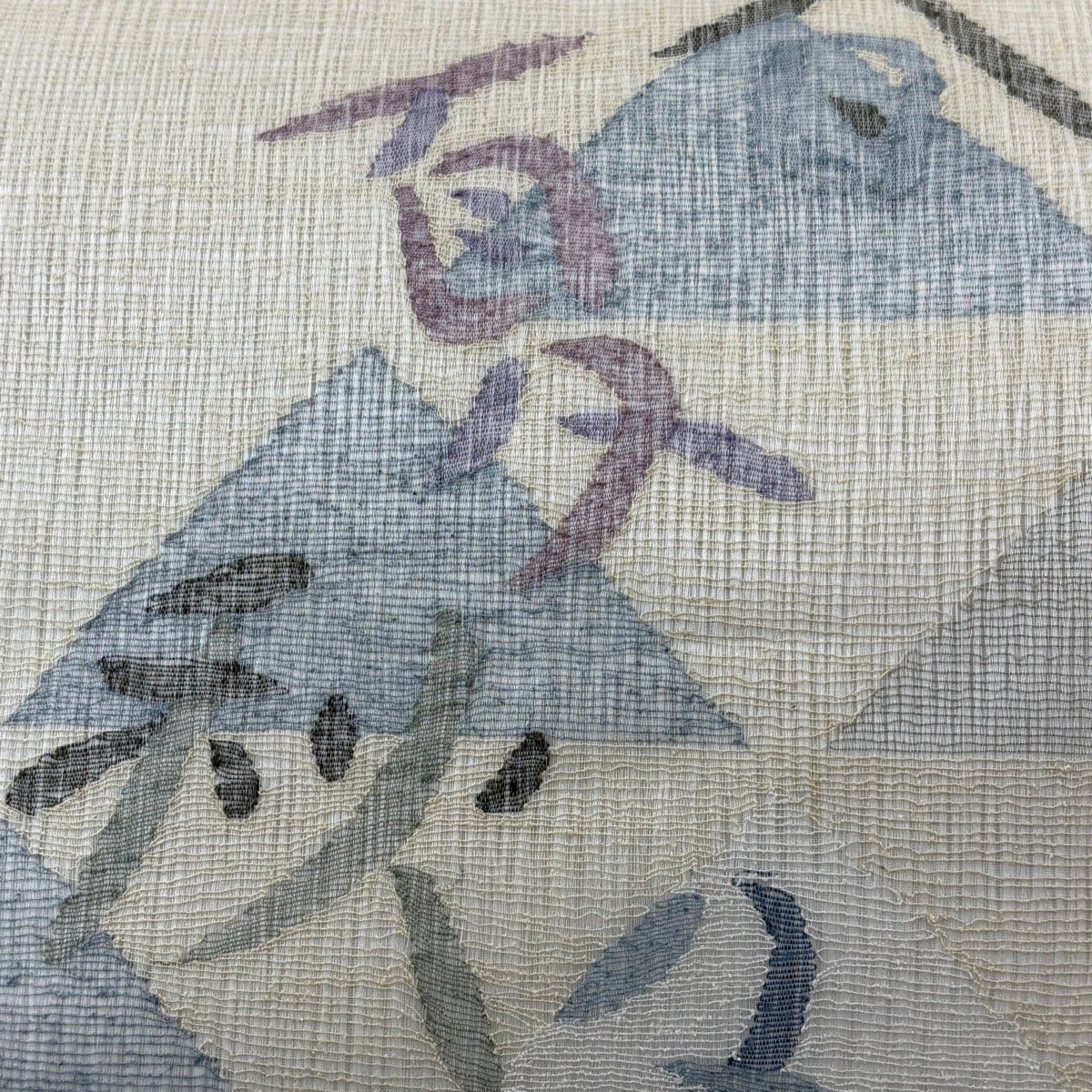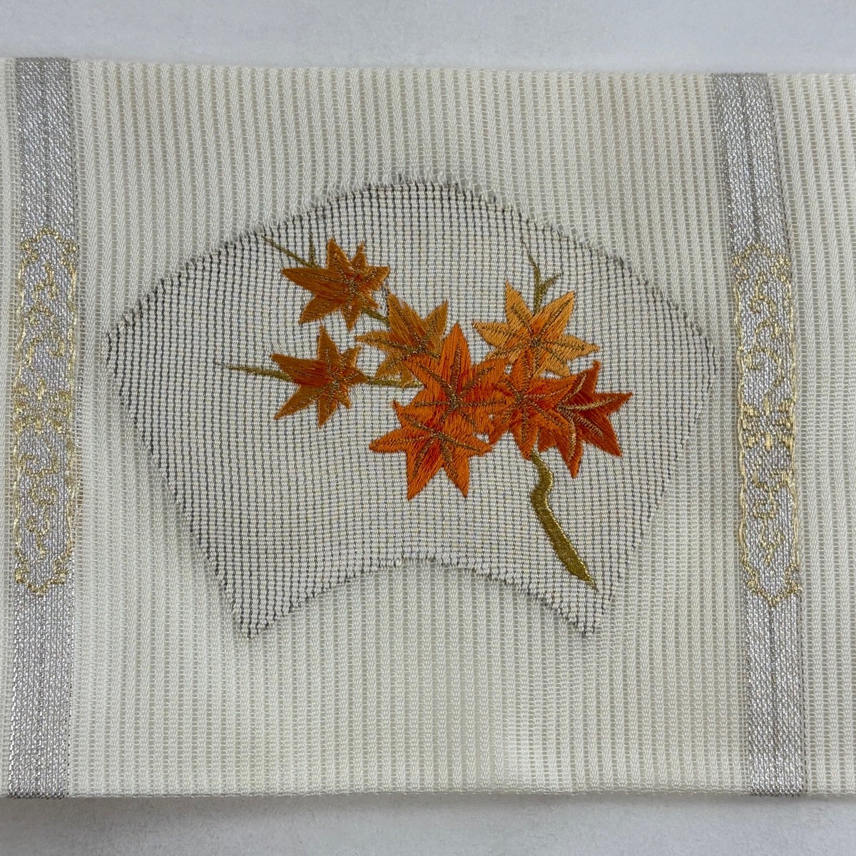 名古屋帯 秀品 夏帯 絽 草花 霞 刺繍 箔 クリーム 正絹