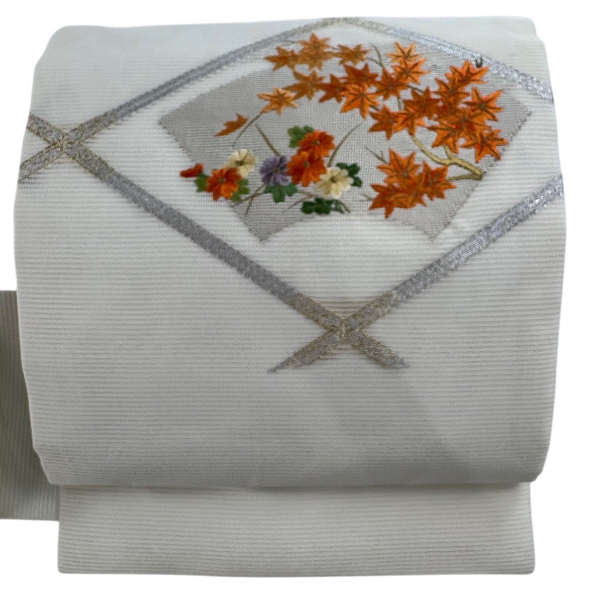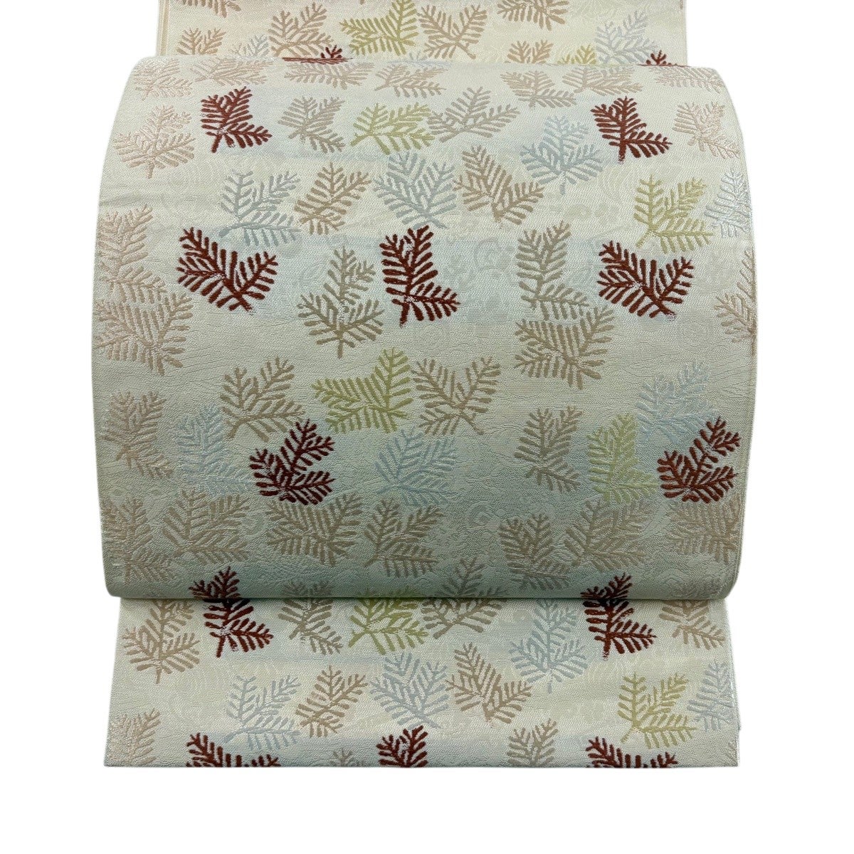 50%OFF 名古屋帯 名品 葉と実 クリーム 正絹 K50
