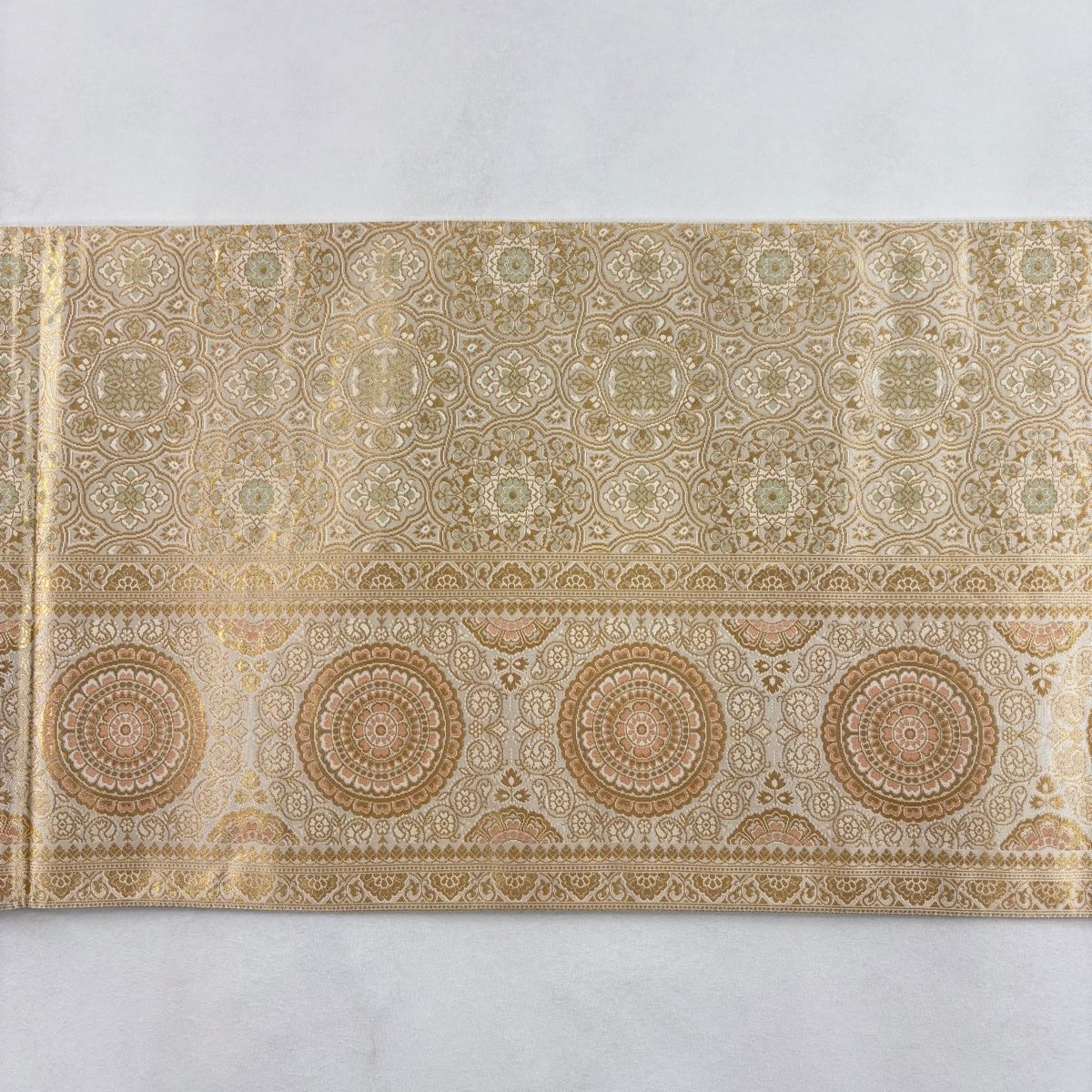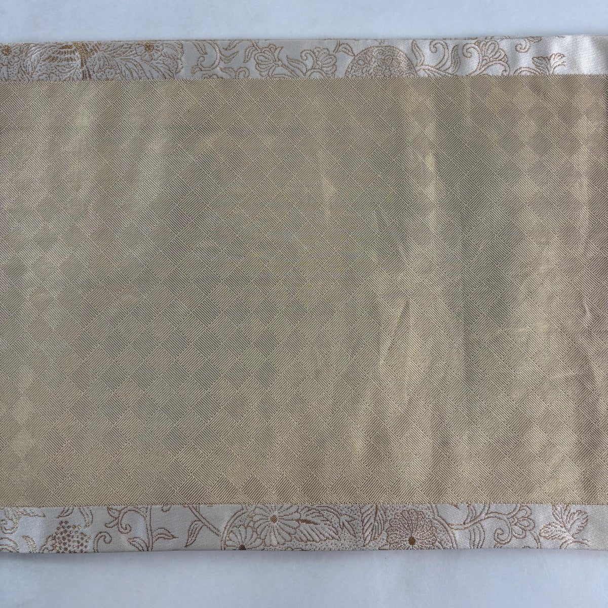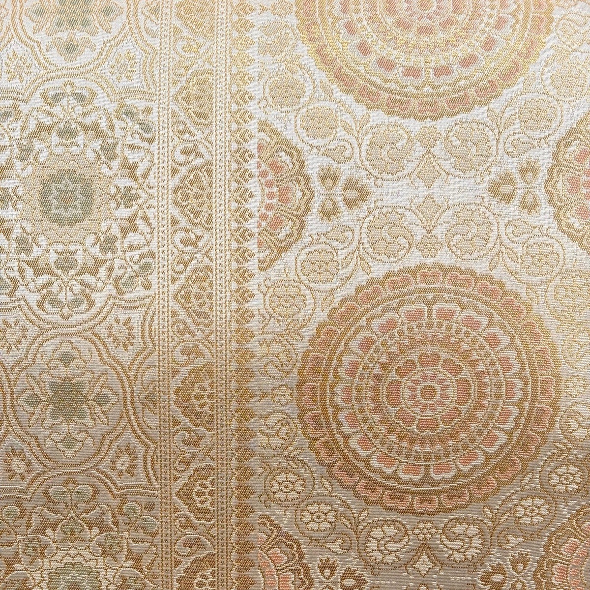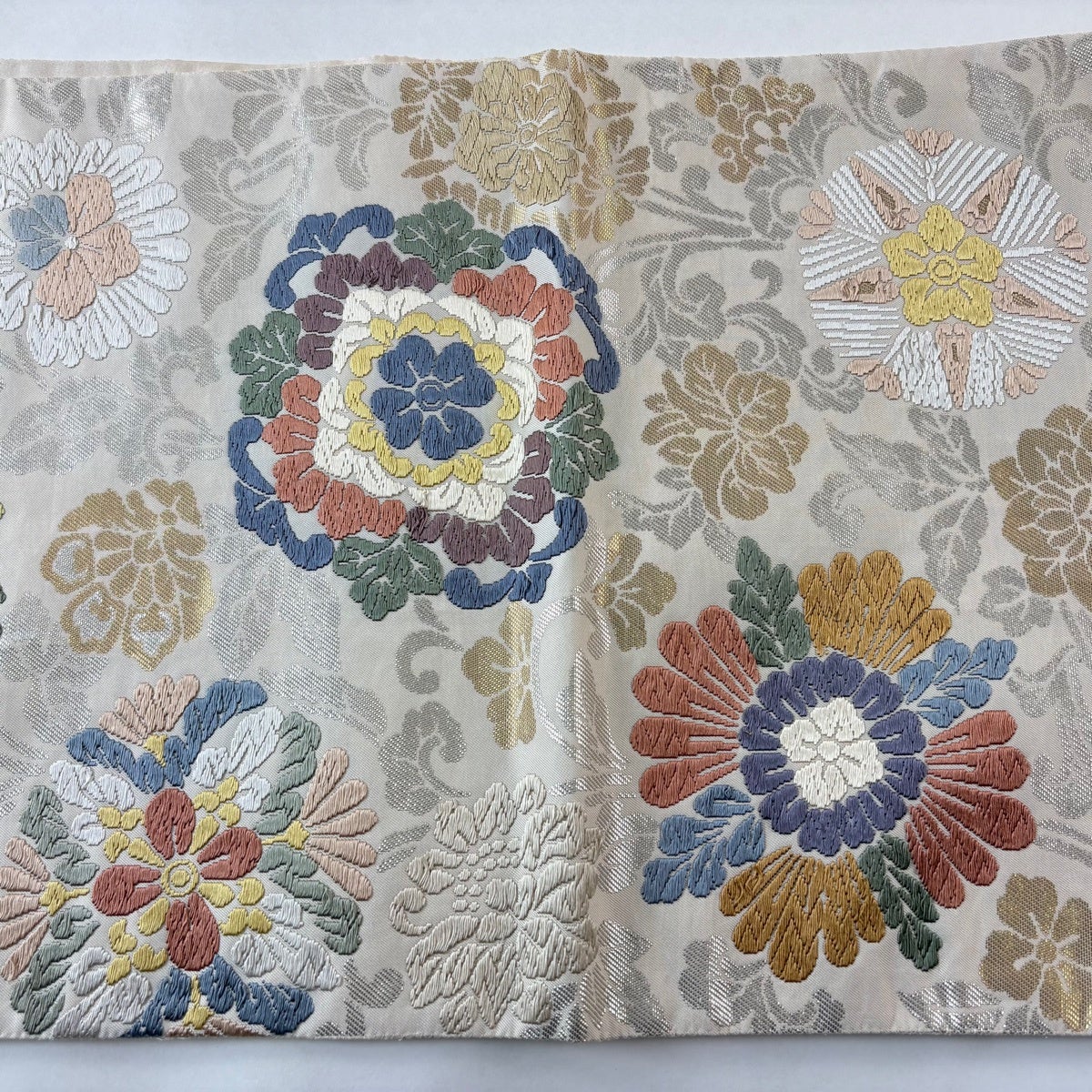 袋帯 名品 花 七宝花菱 金糸 唐織 クリーム 六通 正絹