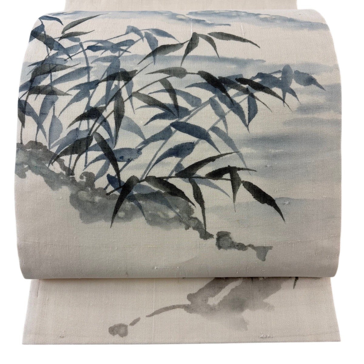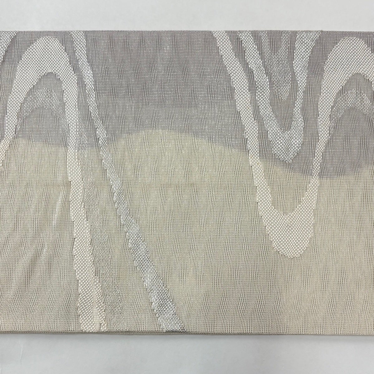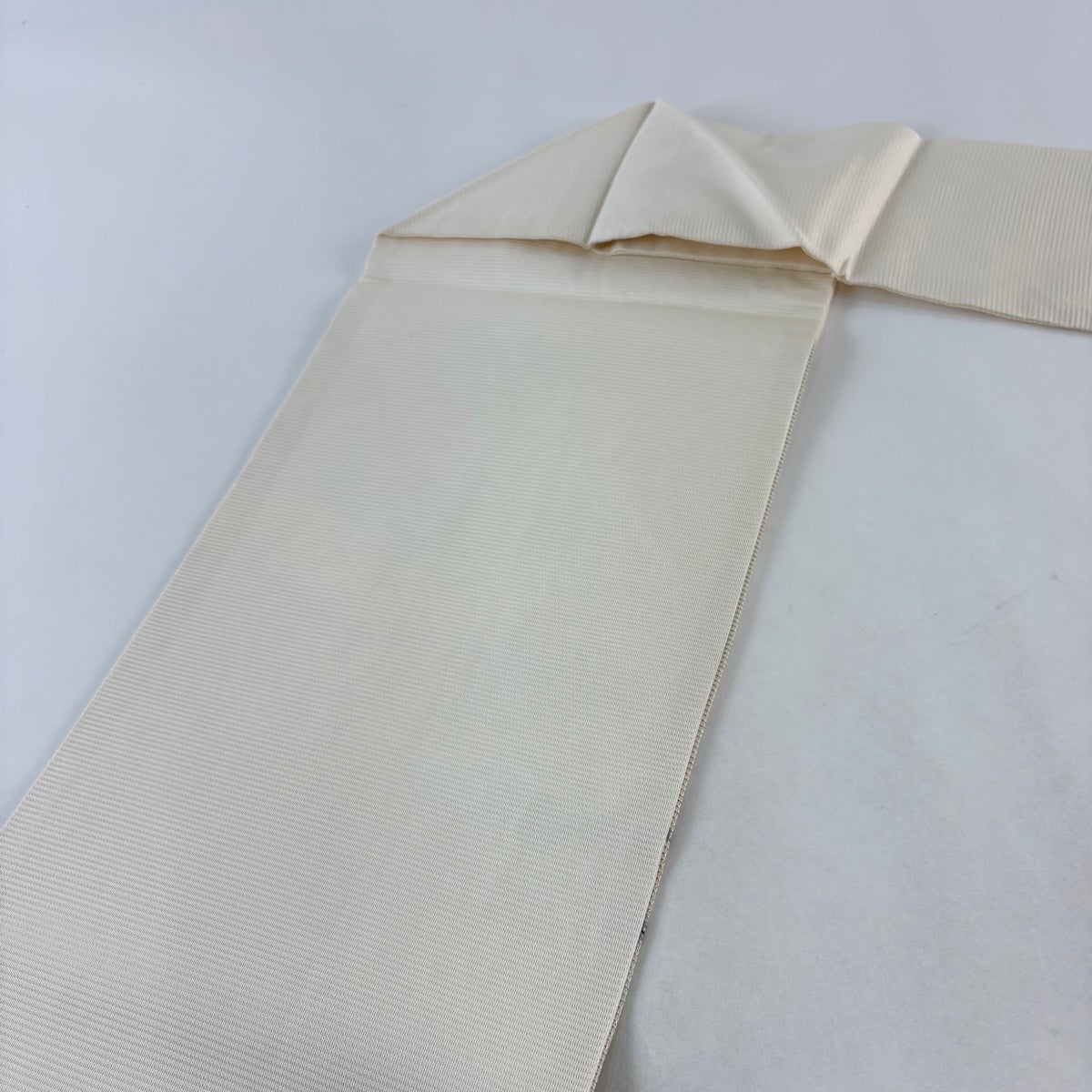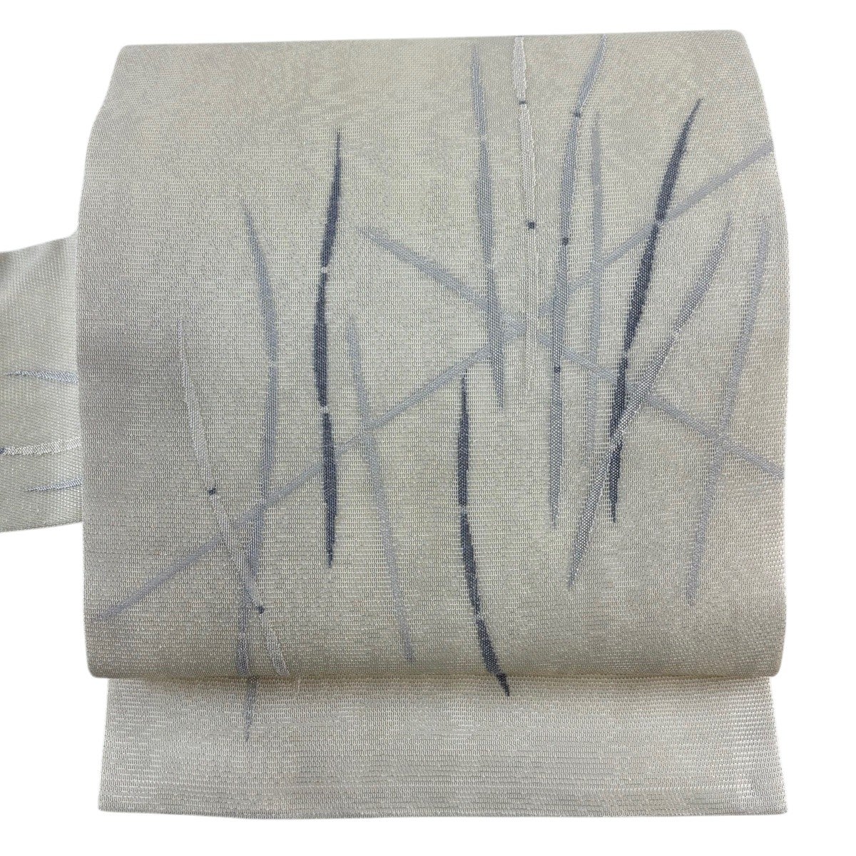 名古屋帯 秀品 夏帯 関西仕立て 木賊 銀彩 クリーム 正絹