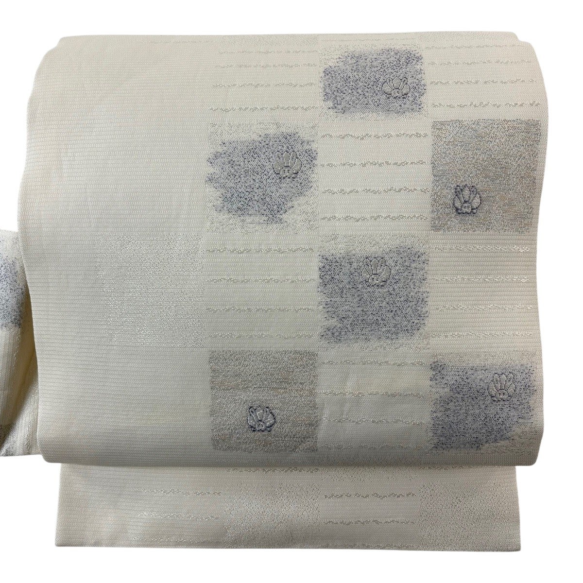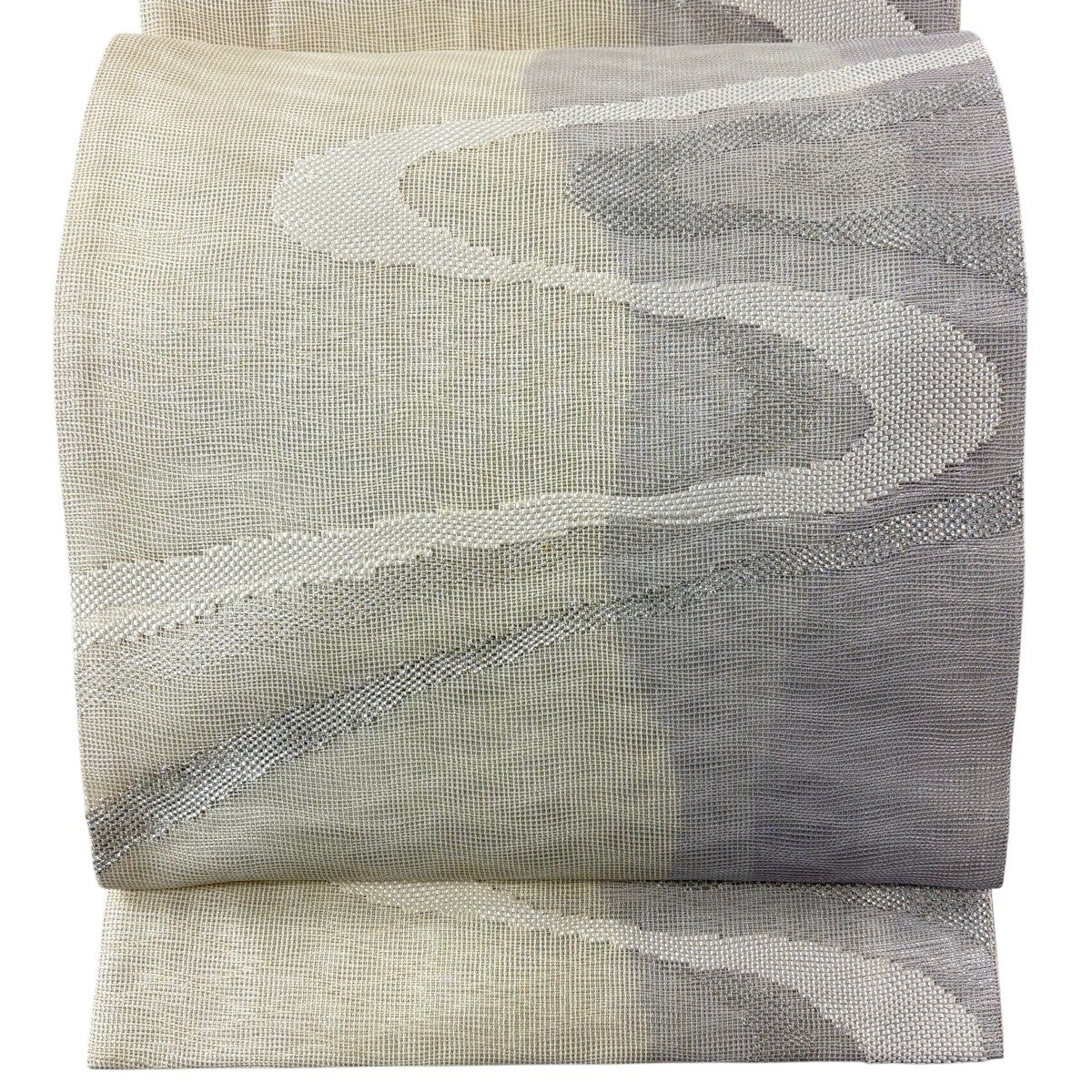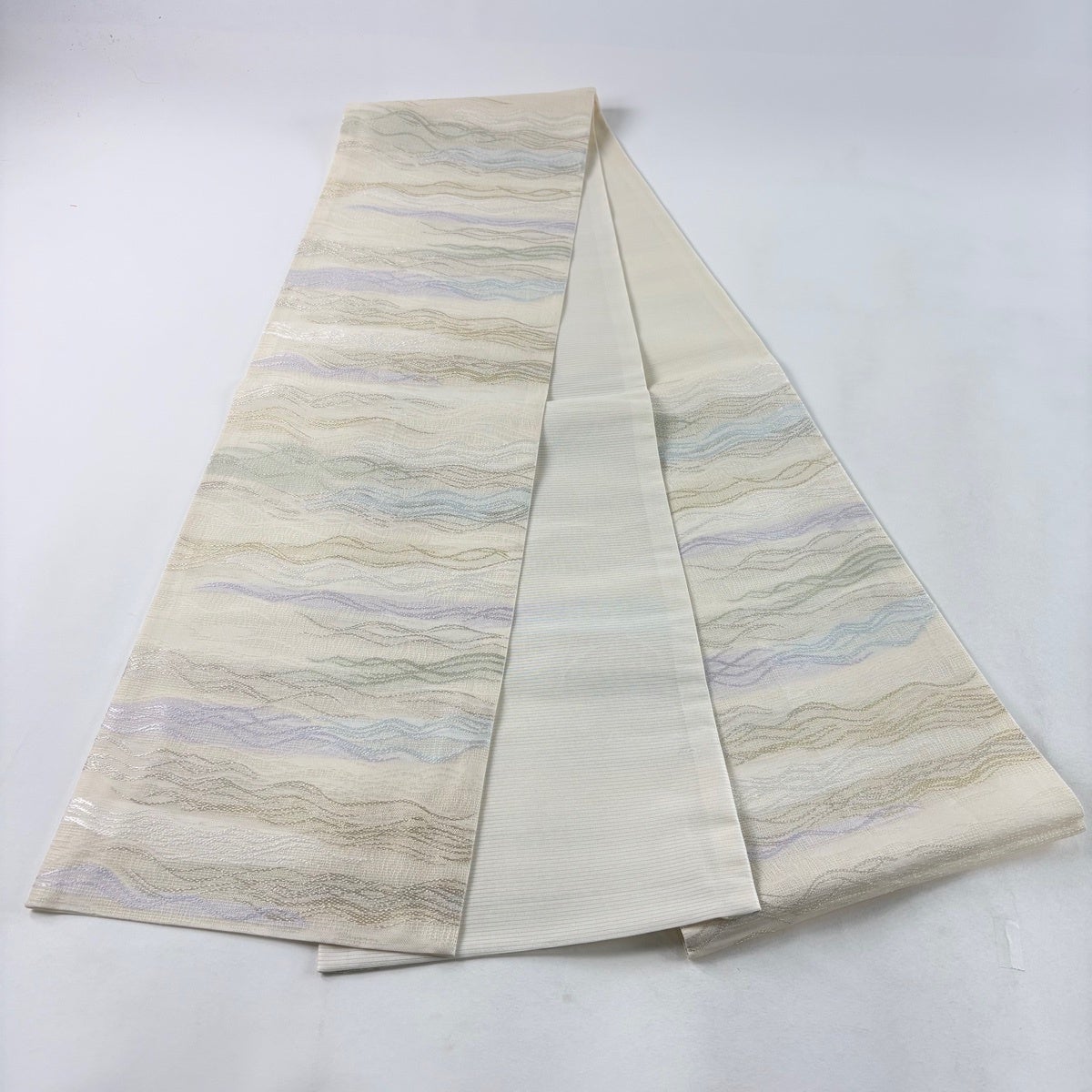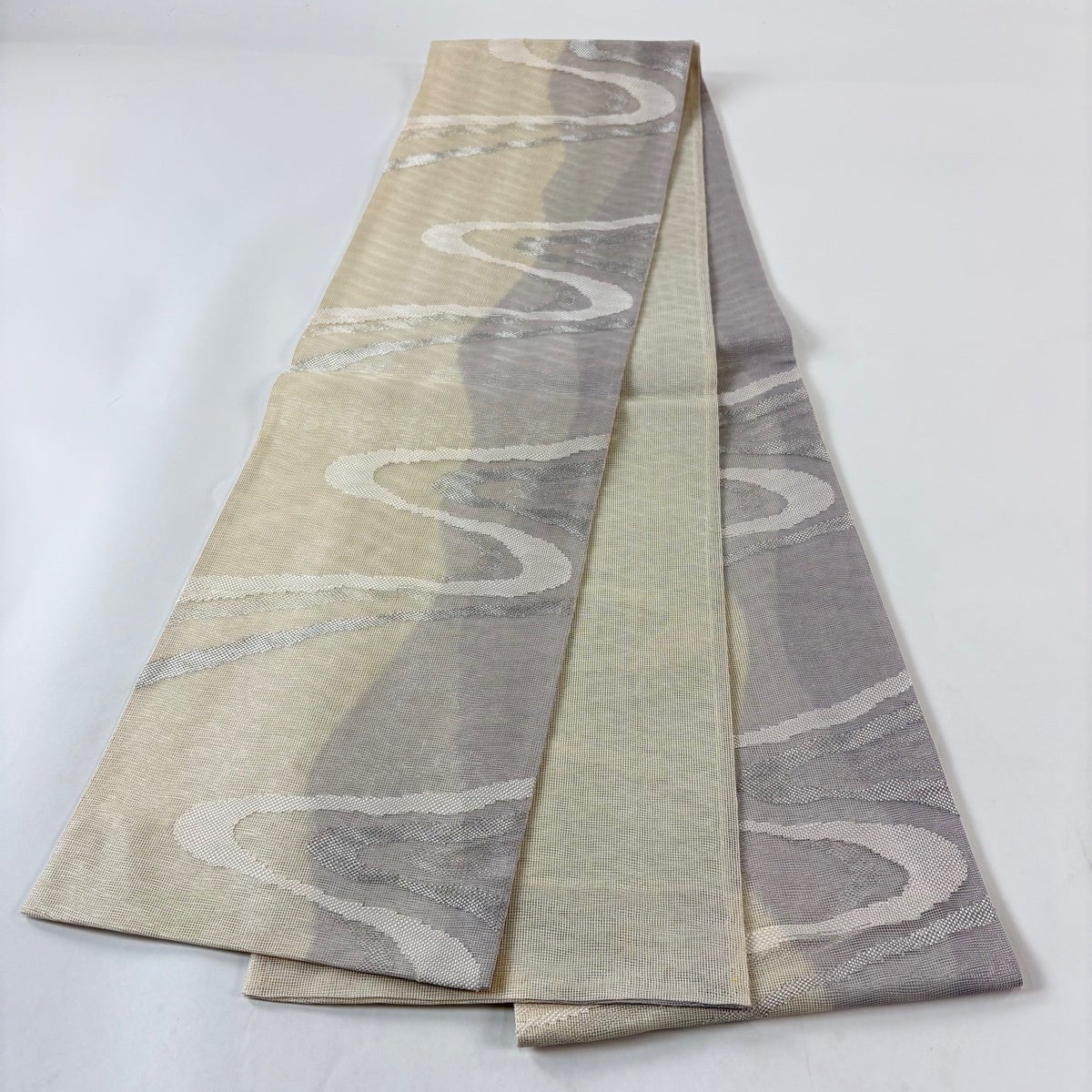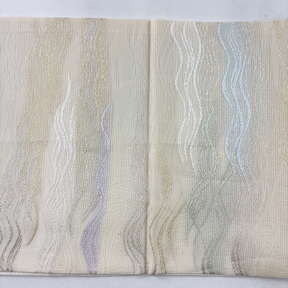 【美品】 袋帯 秀品 夏帯 流水 銀糸 クリーム 六通 正絹