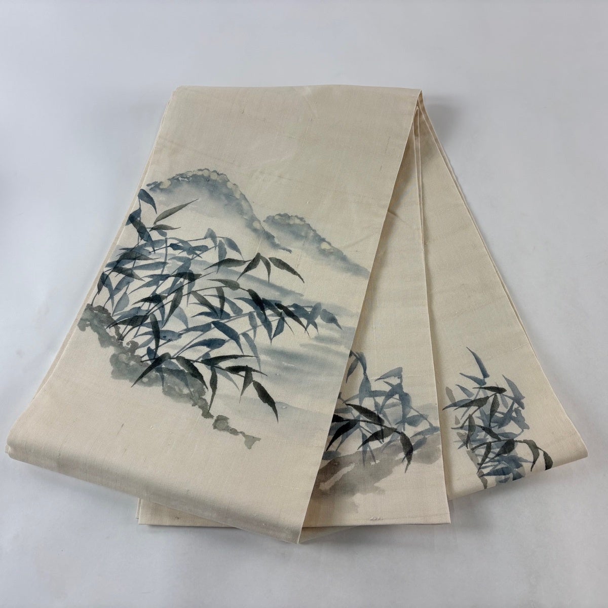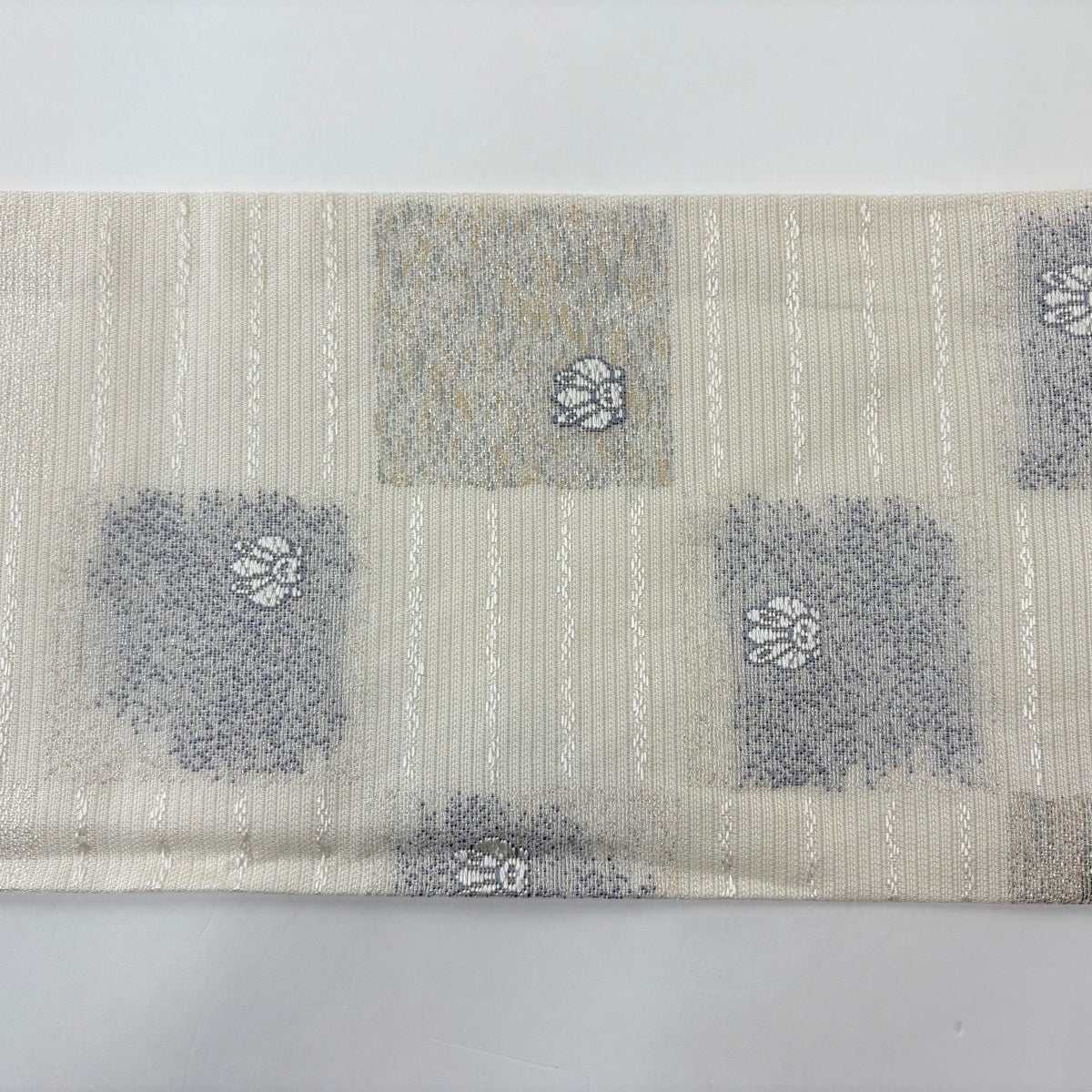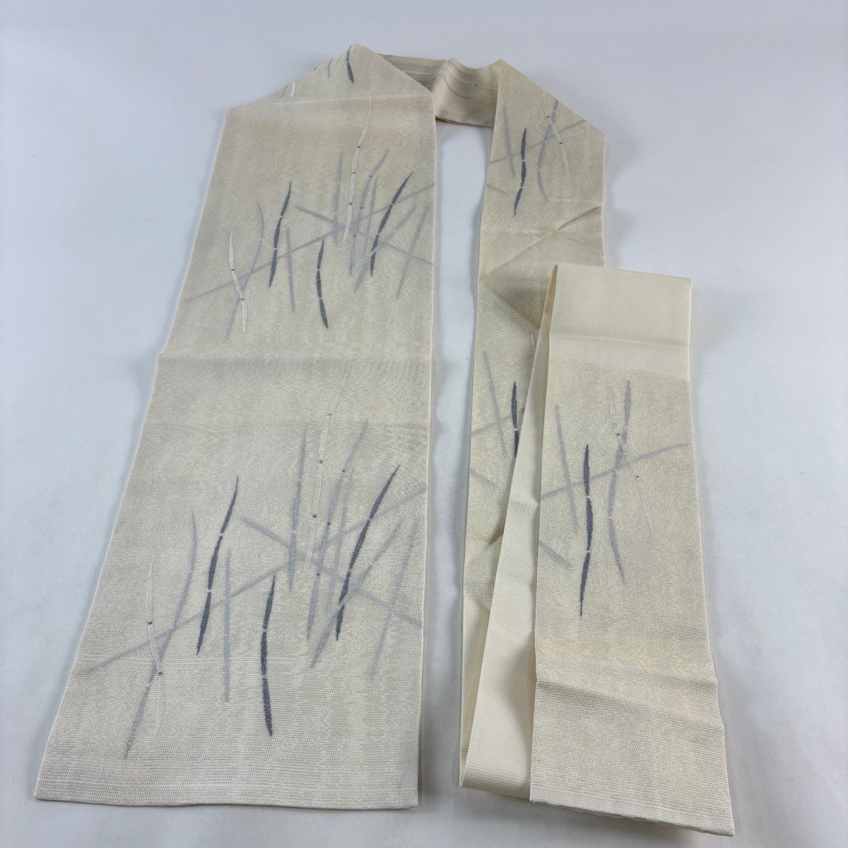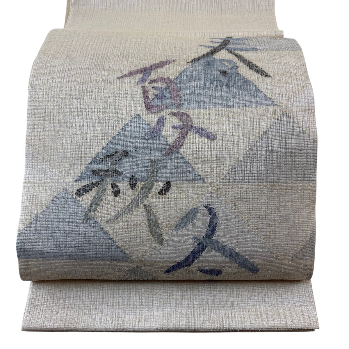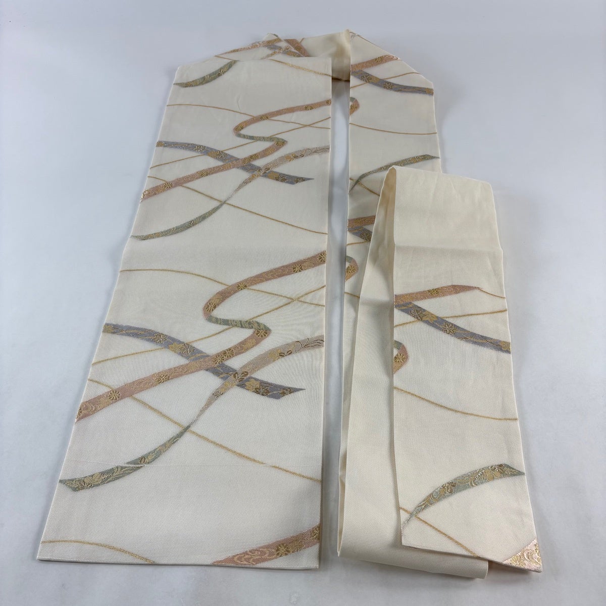 【美品】 袋帯 秀品 夏帯 流水 銀糸 クリーム 六通 正絹