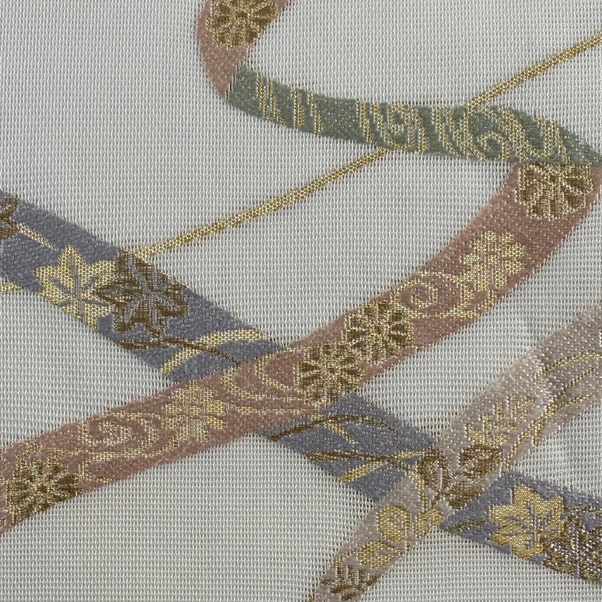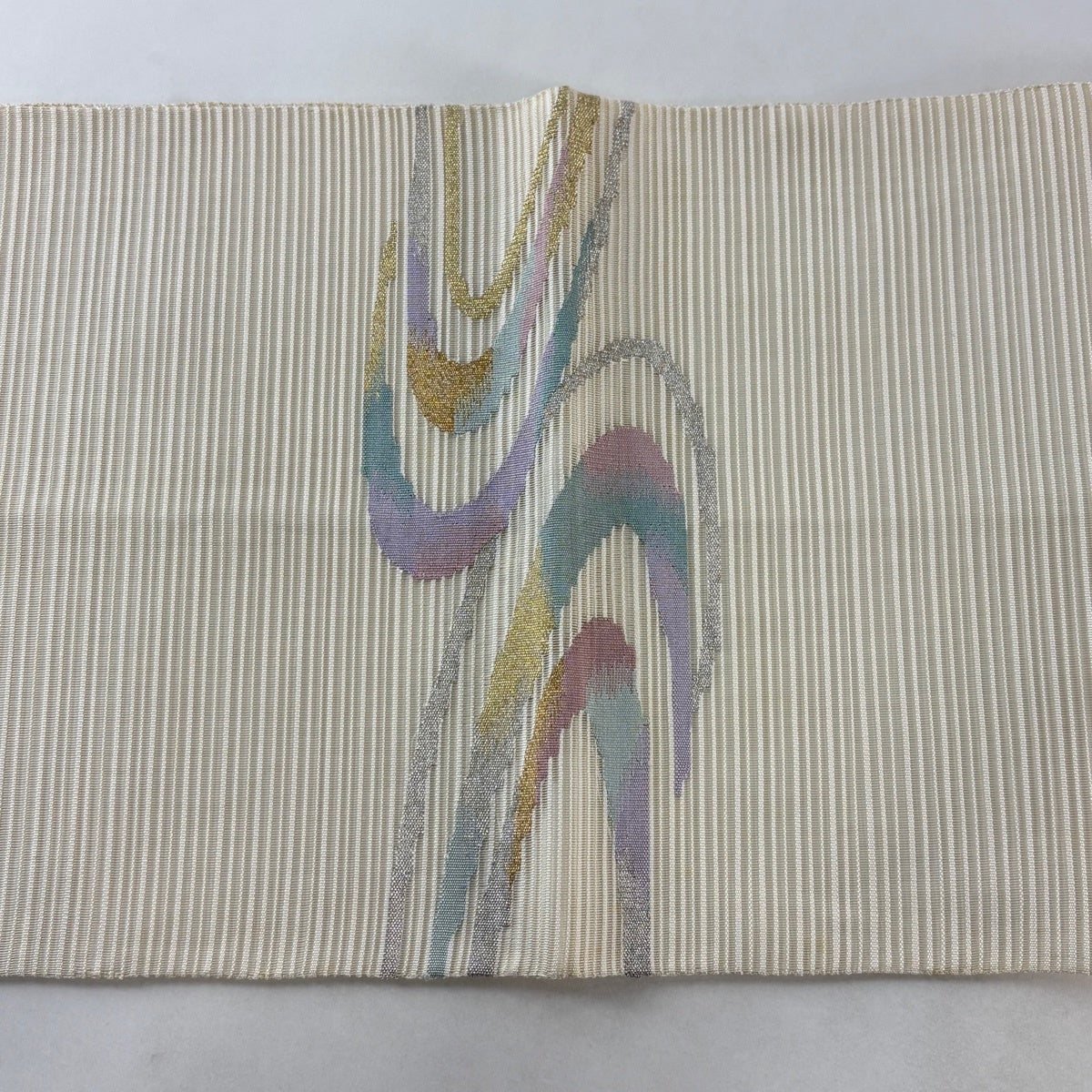袋帯 秀品 夏帯 絽 よろけ縞 金銀糸 クリーム 六通 正絹