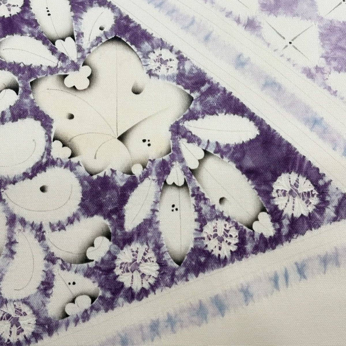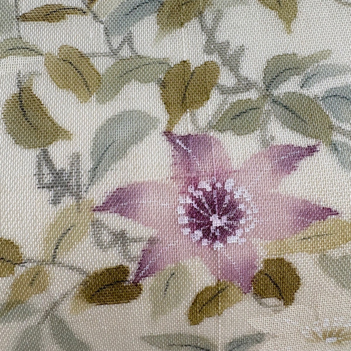 名古屋帯 名品 福村廣利 落款あり 草花 絞り クリーム 正絹