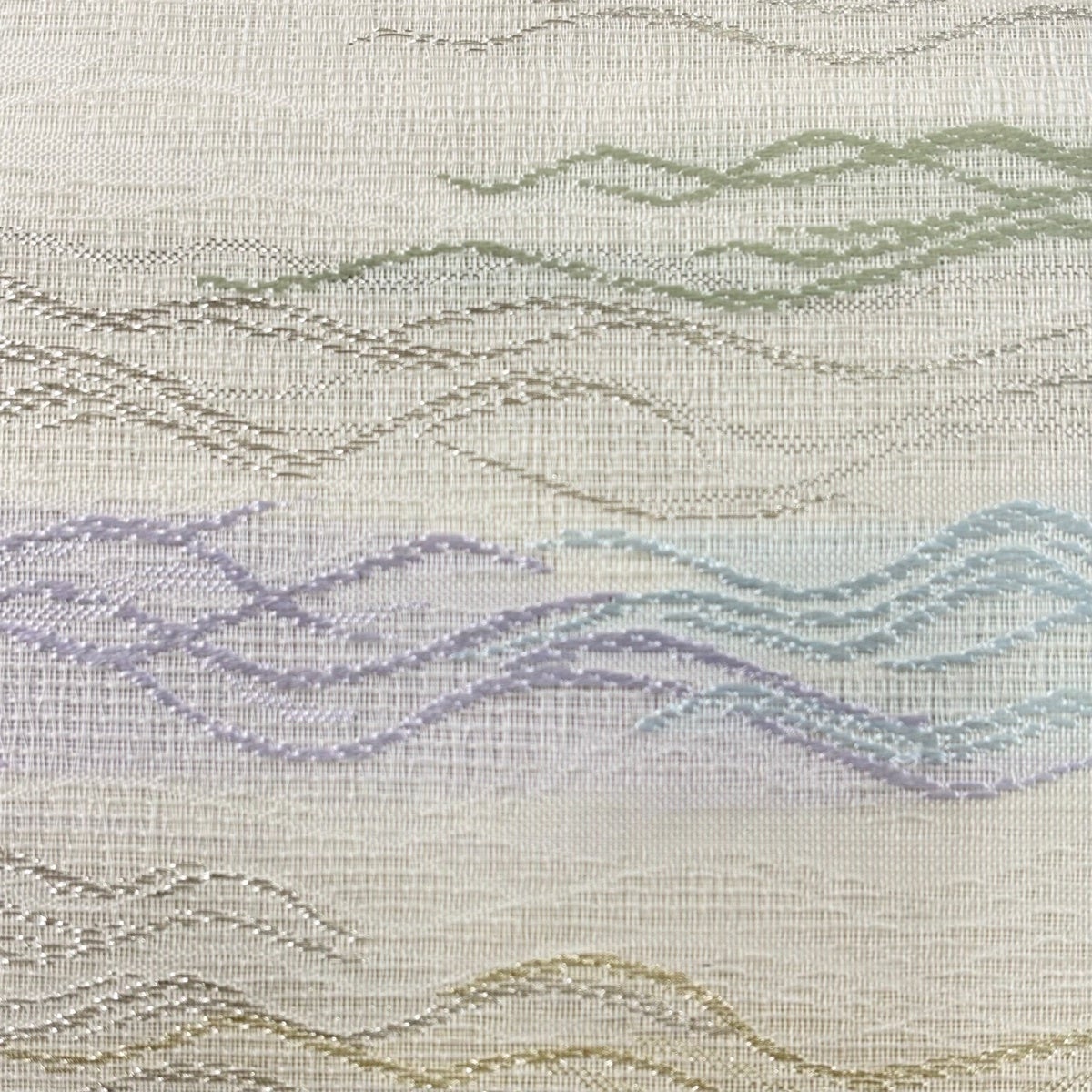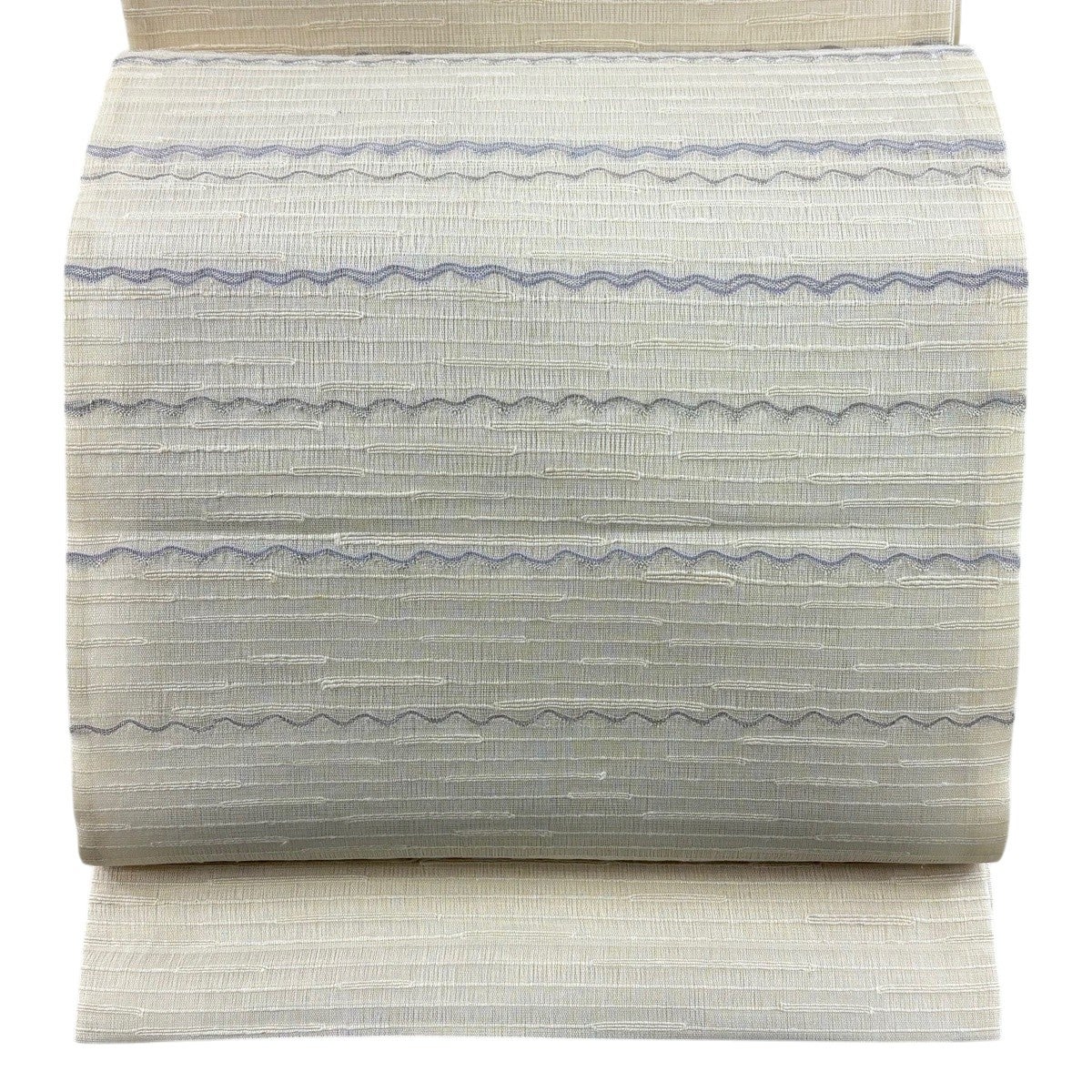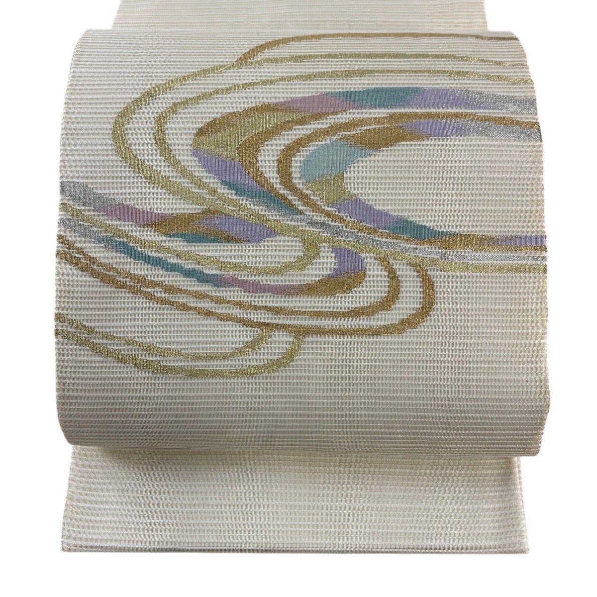 【美品】 名古屋帯 秀品 夏帯 波 金銀糸 クリーム 正絹
