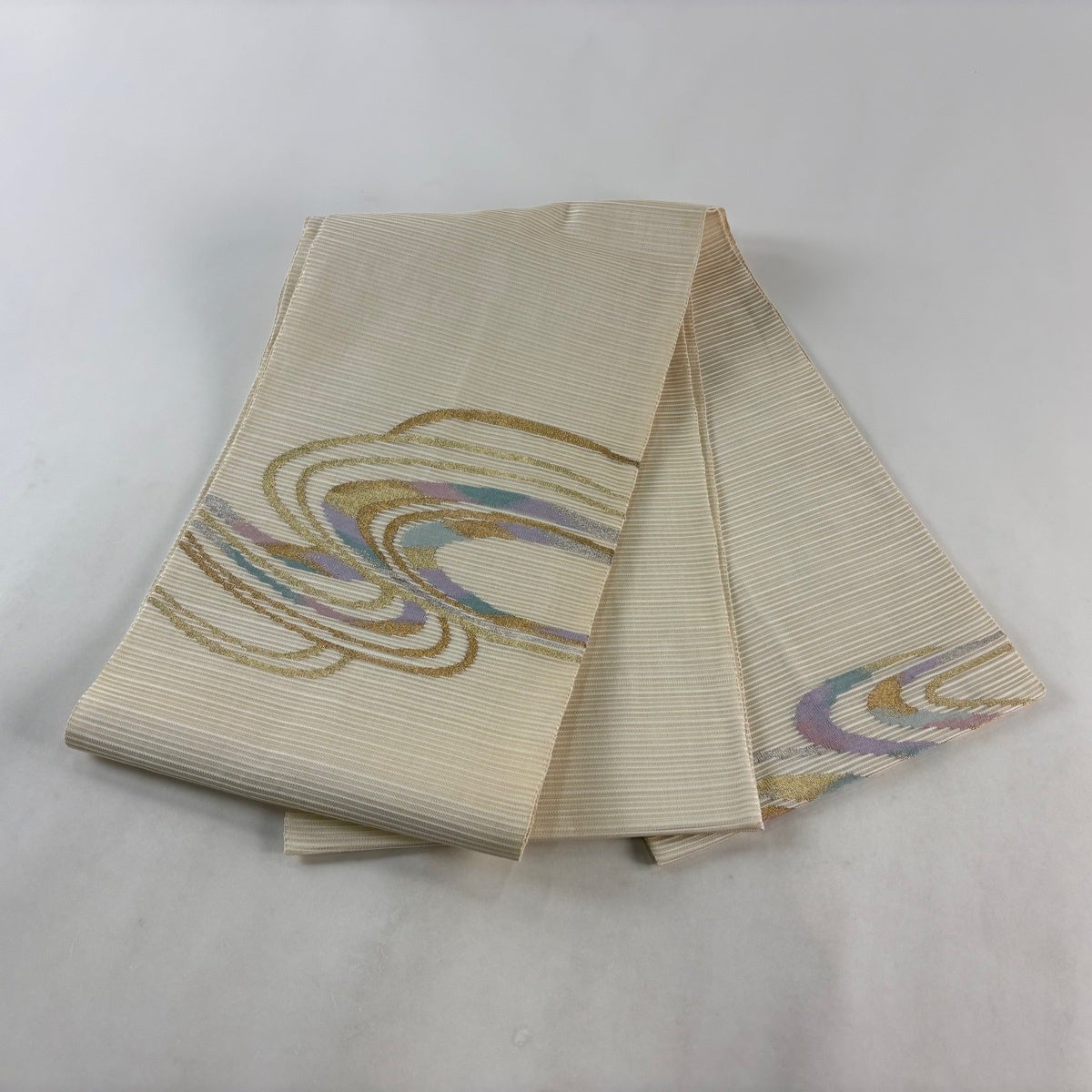 袋帯 秀品 夏帯 絽 流水 金銀糸 クリーム お太鼓柄 正絹