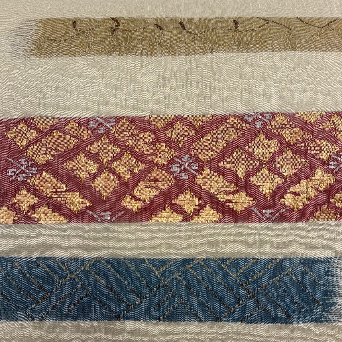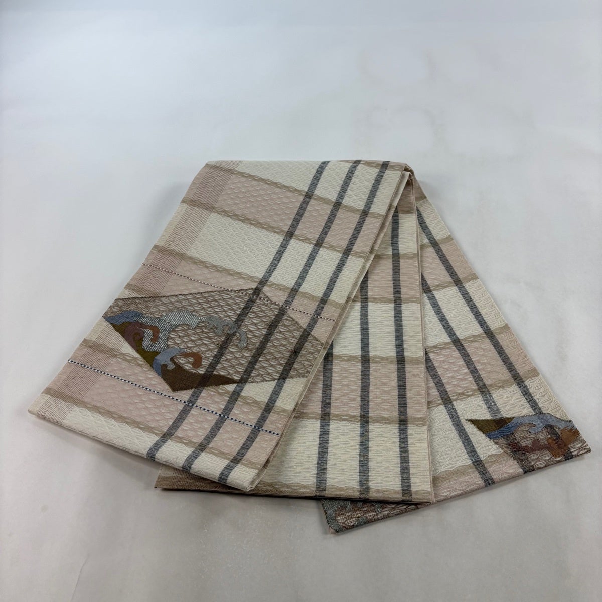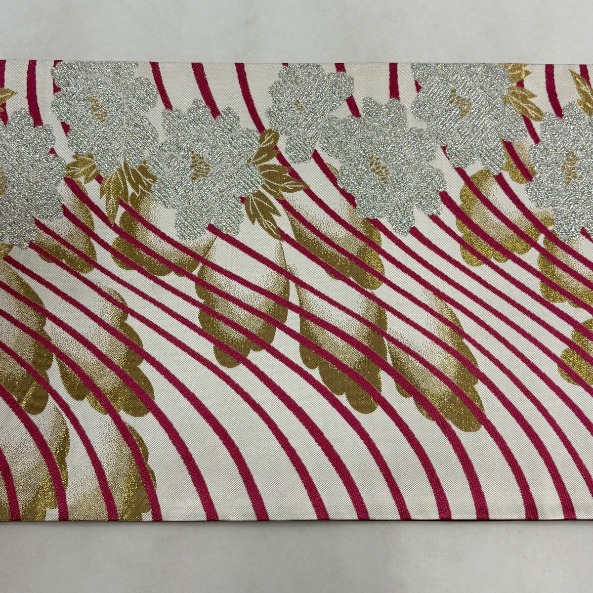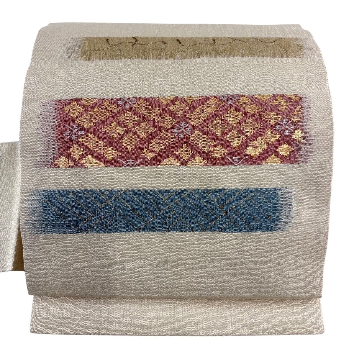 袋帯 秀品 夏帯 菱 波頭 金銀糸 クリーム お太鼓柄 正絹