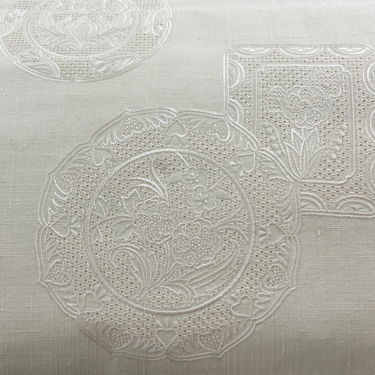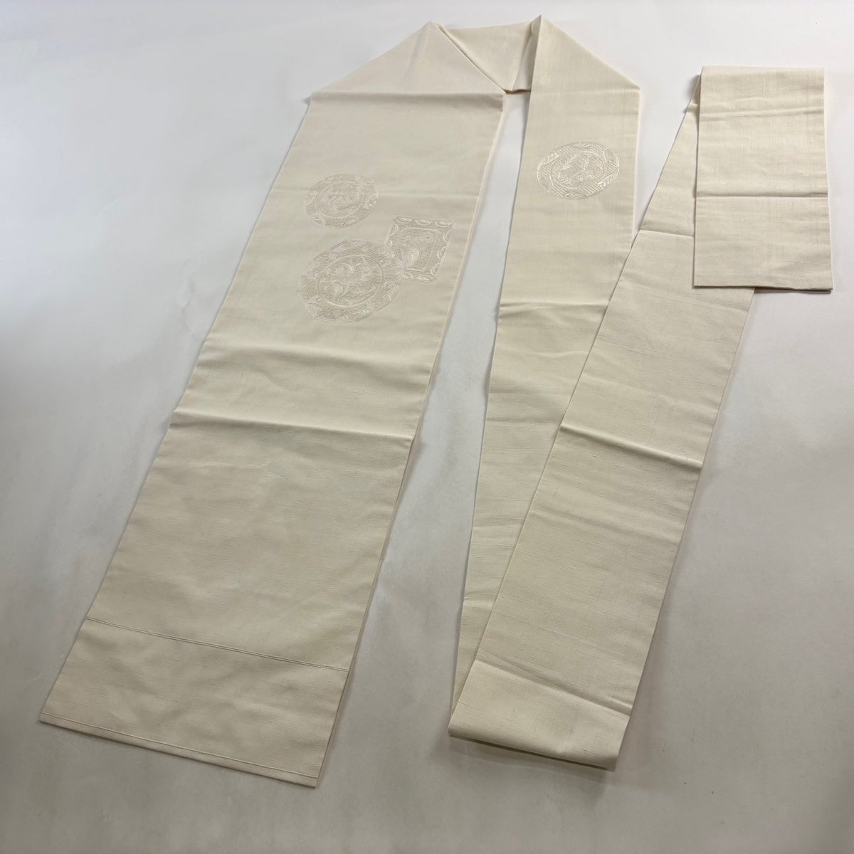 【美品】 名古屋帯 秀品 紬地 鏡裏文 刺繍 クリーム 正絹