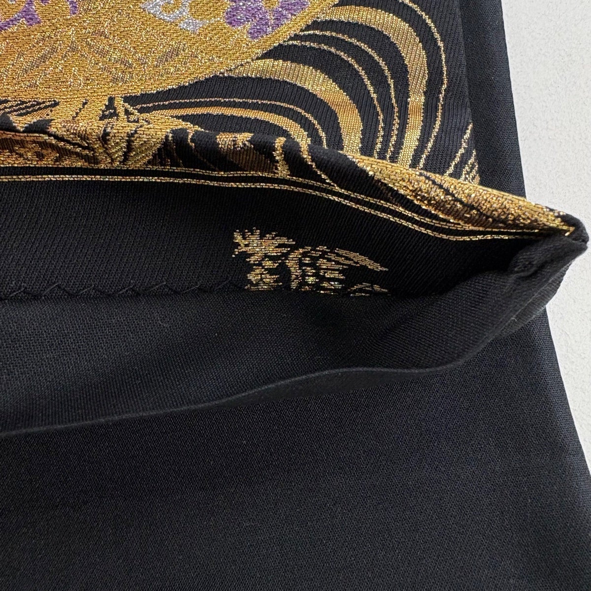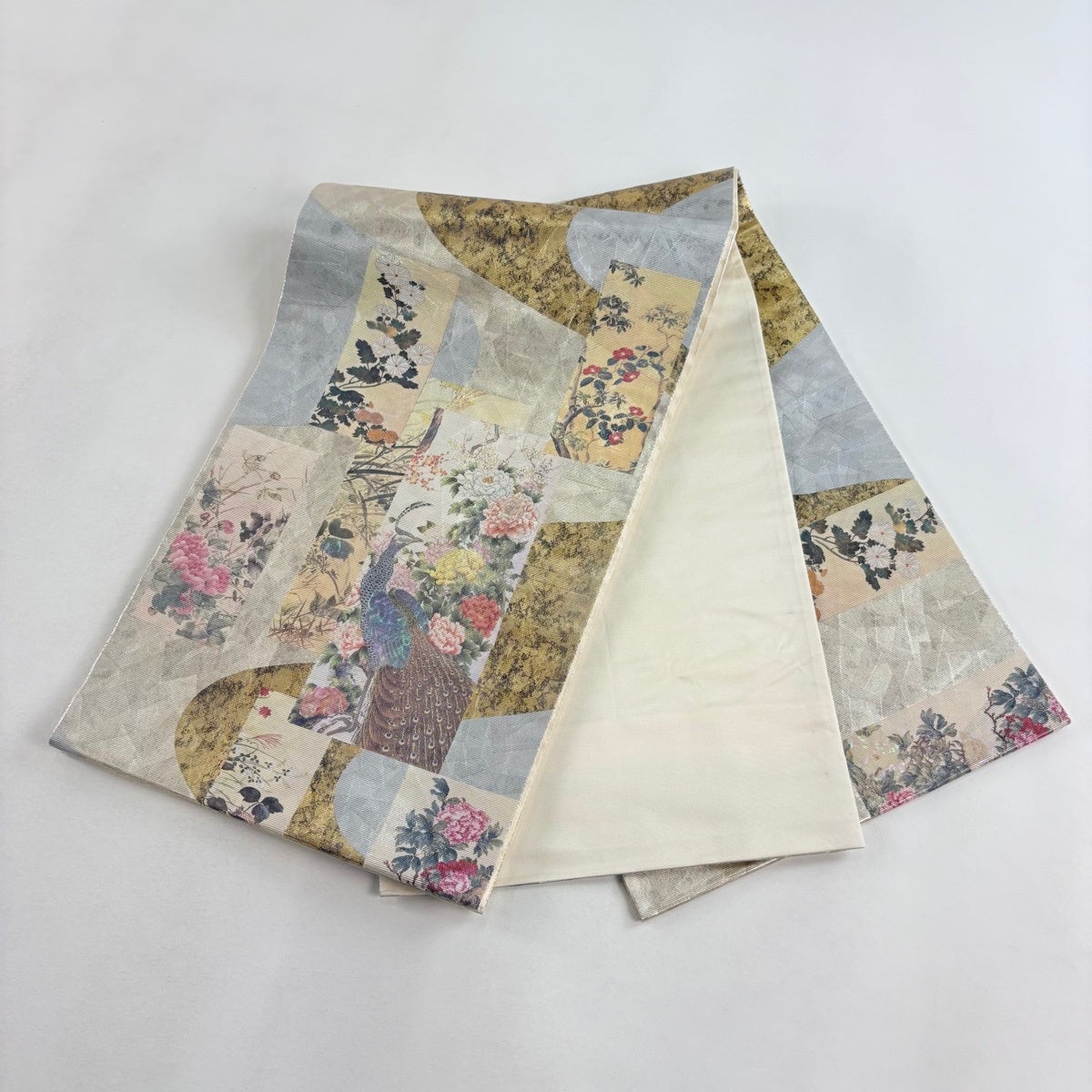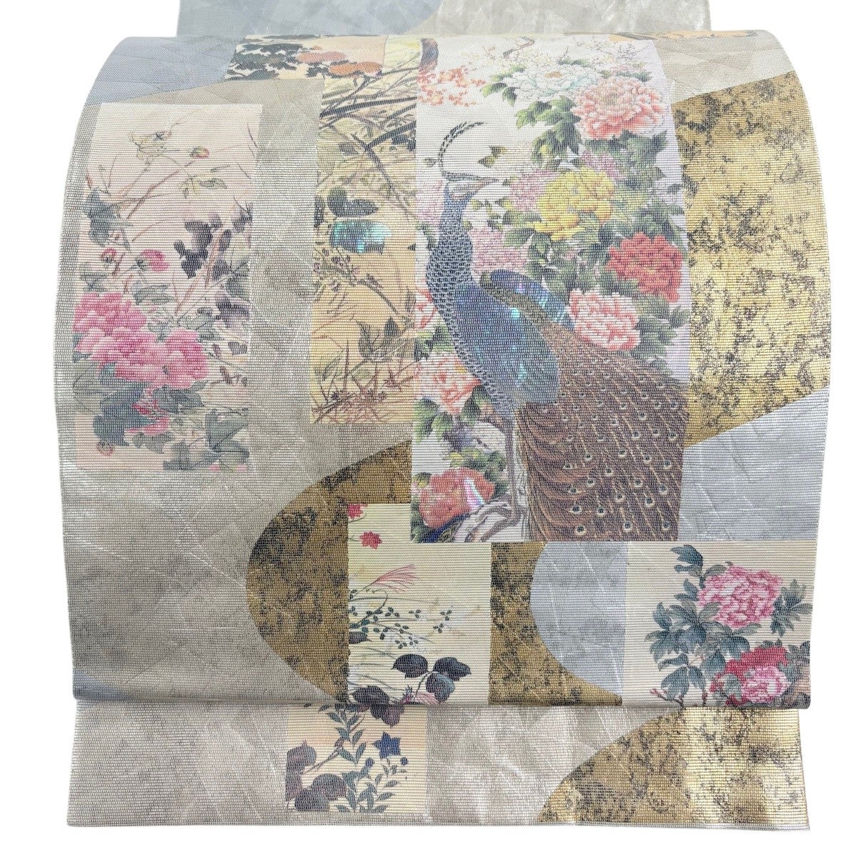 【美品】 袋帯 秀品 鳥 蝶 金糸 箔 クリーム 六通 正絹