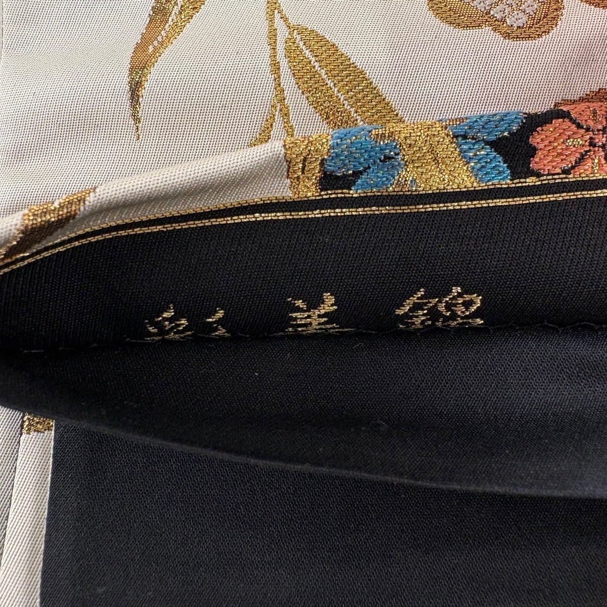 【美品】 袋帯 秀品 華文 草花 箔 クリーム 全通 正絹
