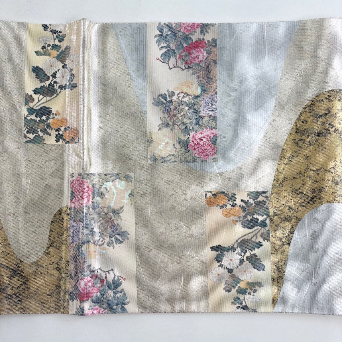 名古屋帯 秀品 夏帯 草花 蔓帯 金糸 箔 クリーム 正絹